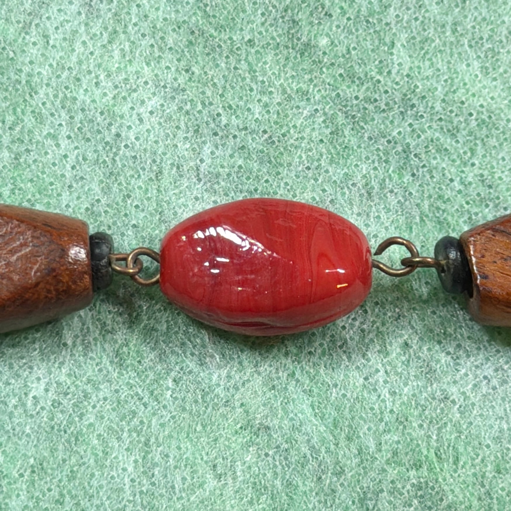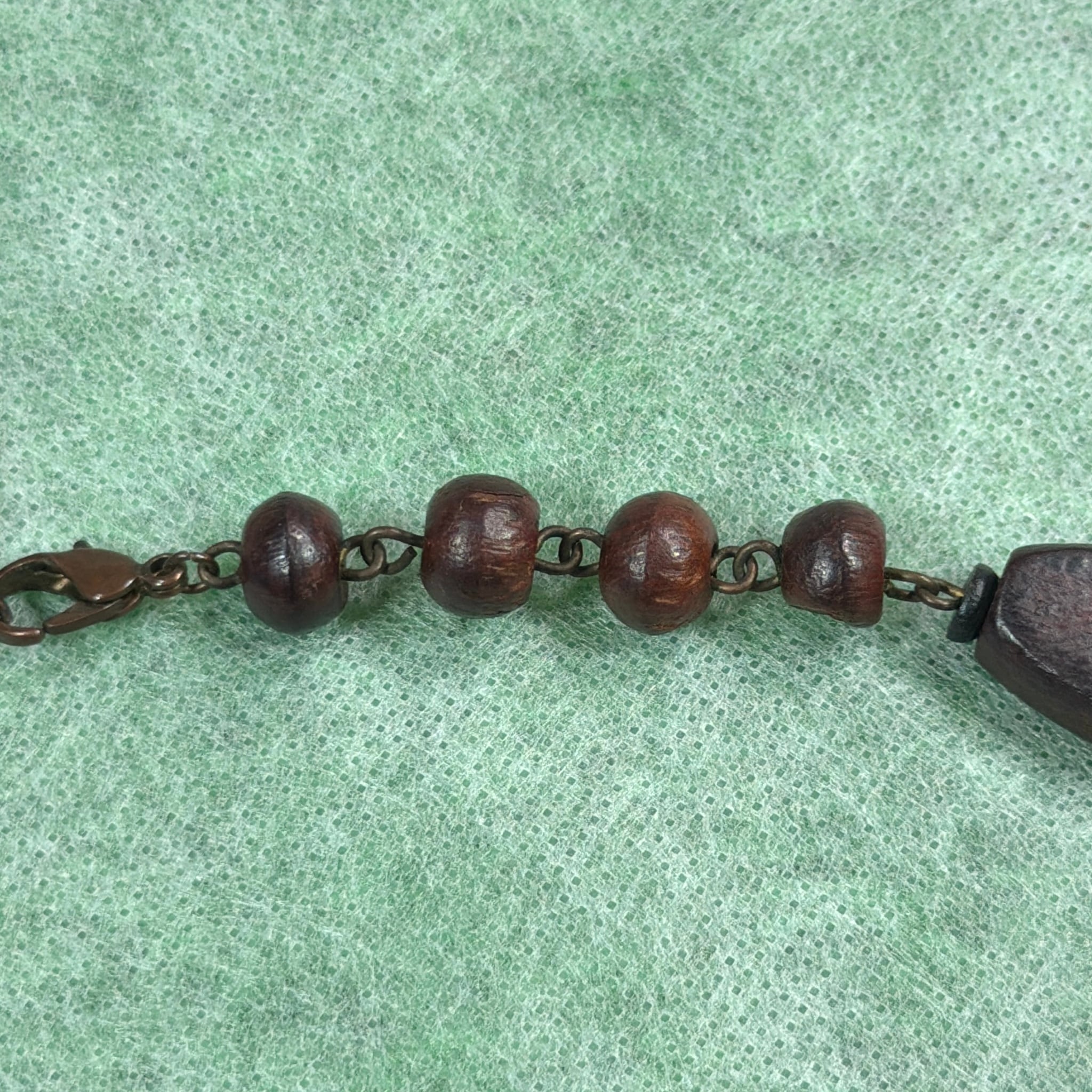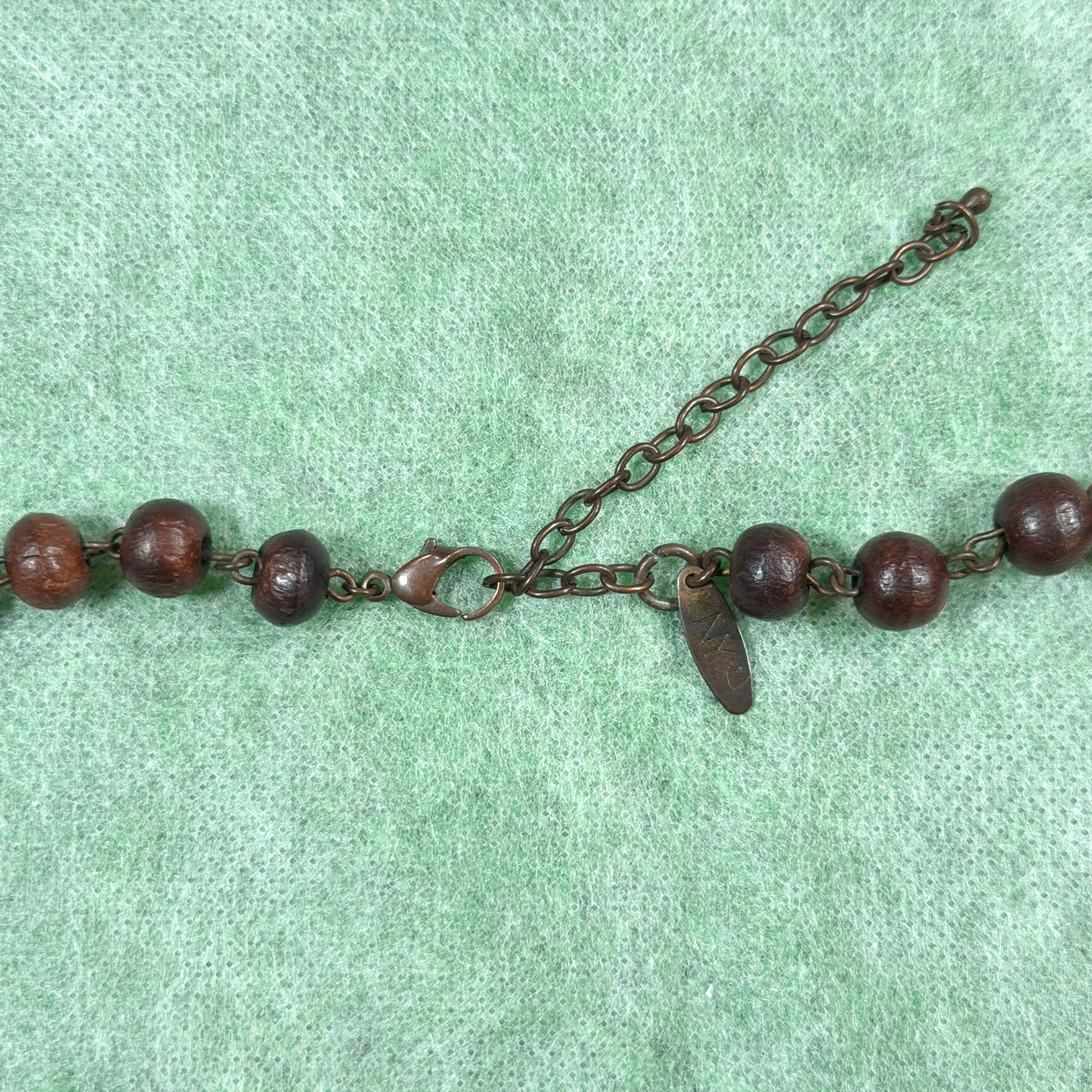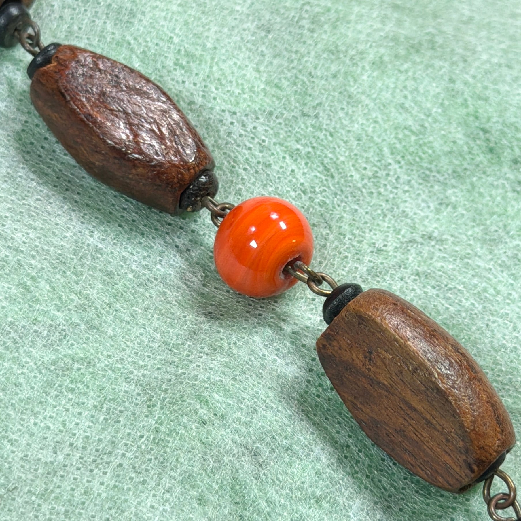 ウッドパーツとカラービーズを組み合わせた、存在感のあるロングネックレスです。