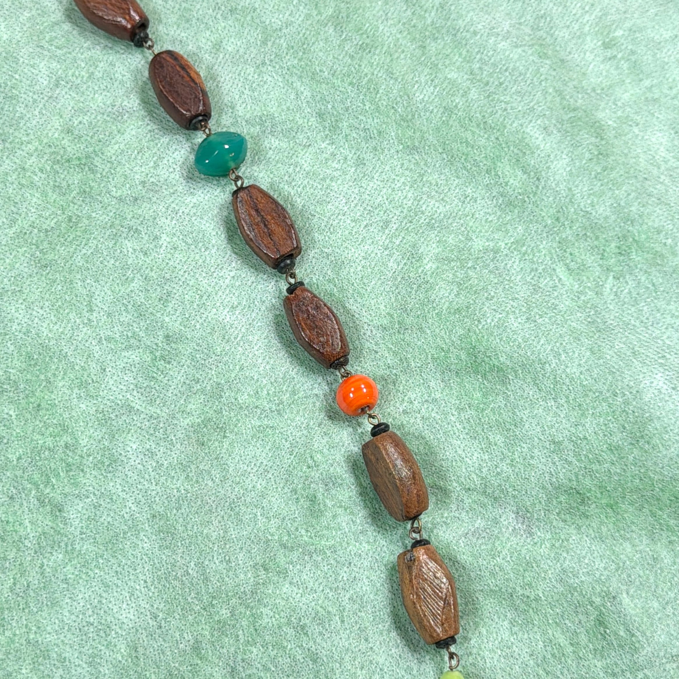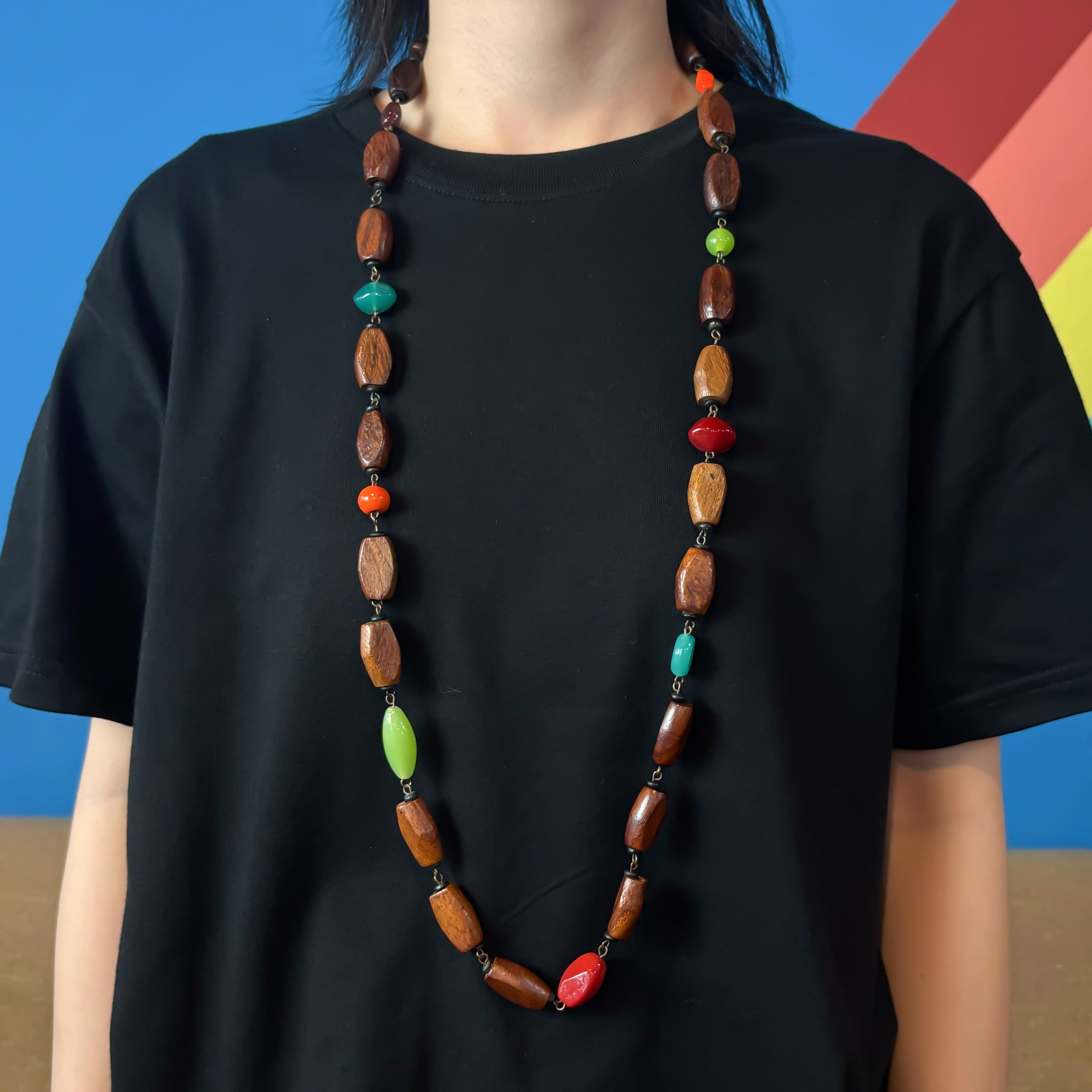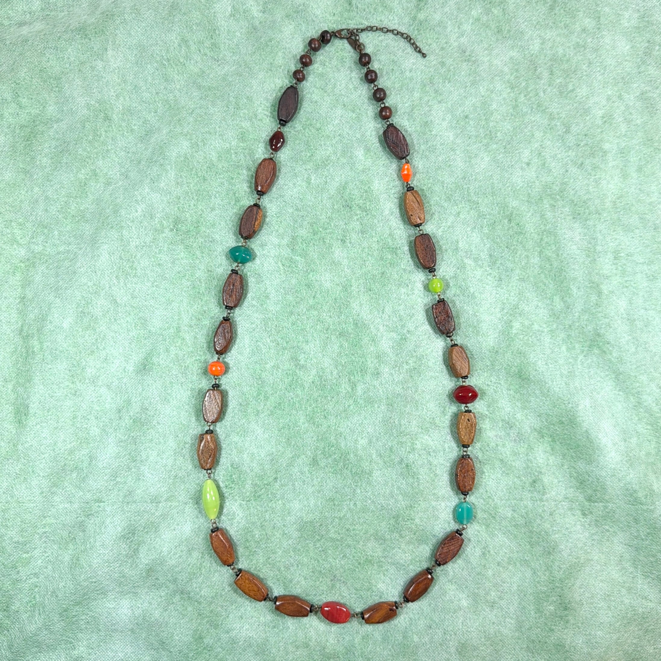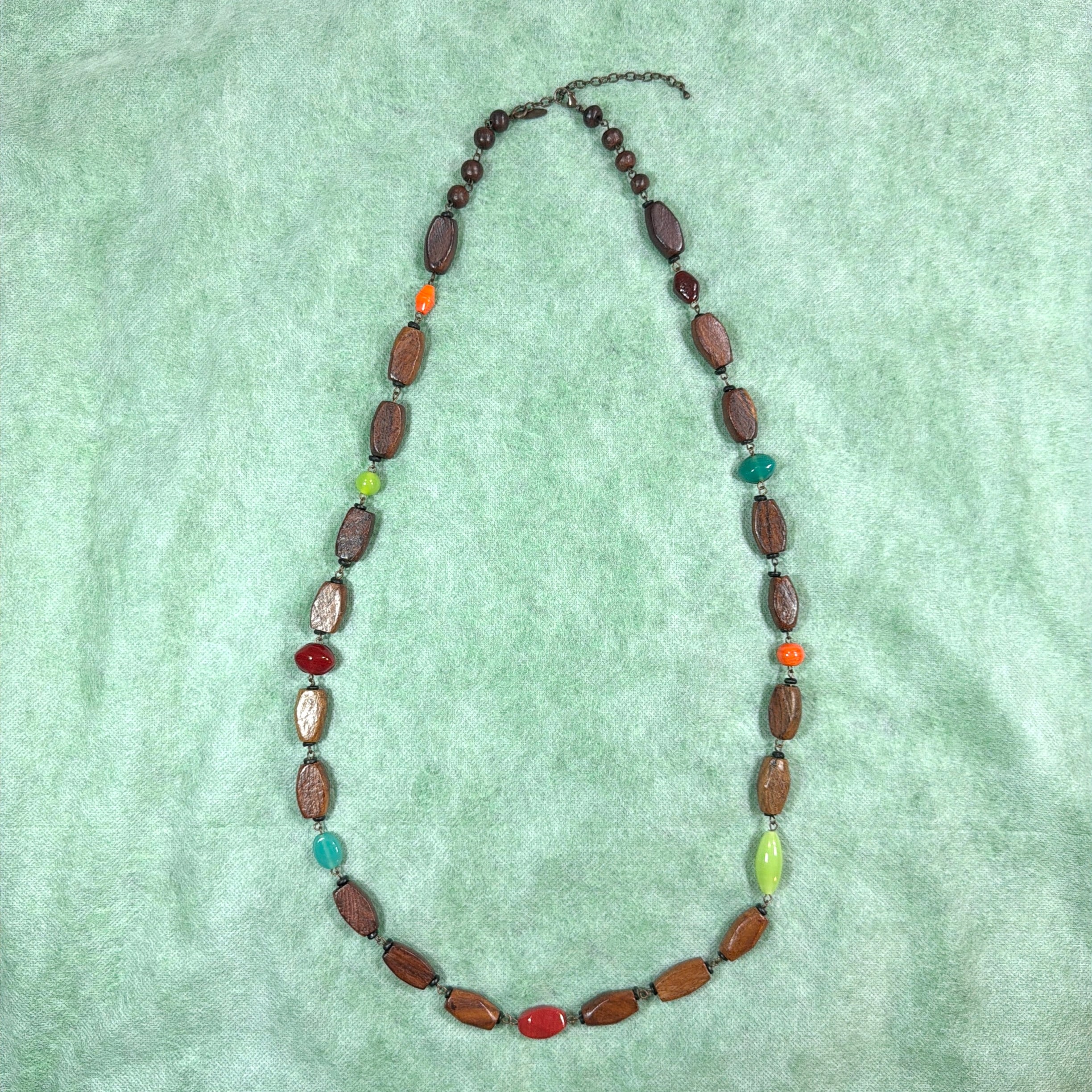 【Unisex】 ウッド × カラービーズ ロングネックレス / ボヘミアン 古着 アクセサリーネックレス