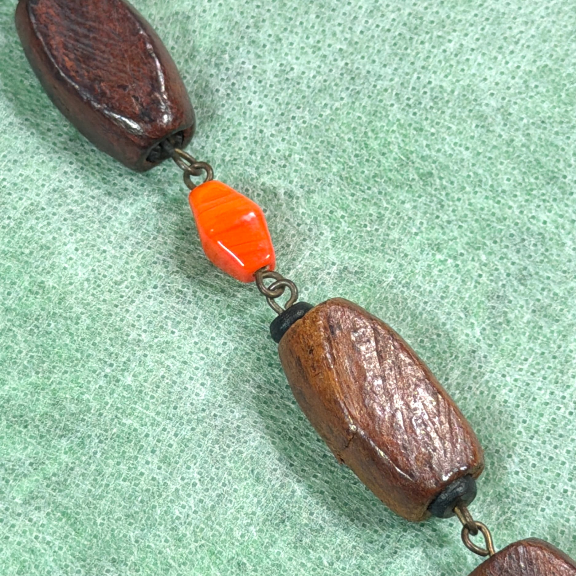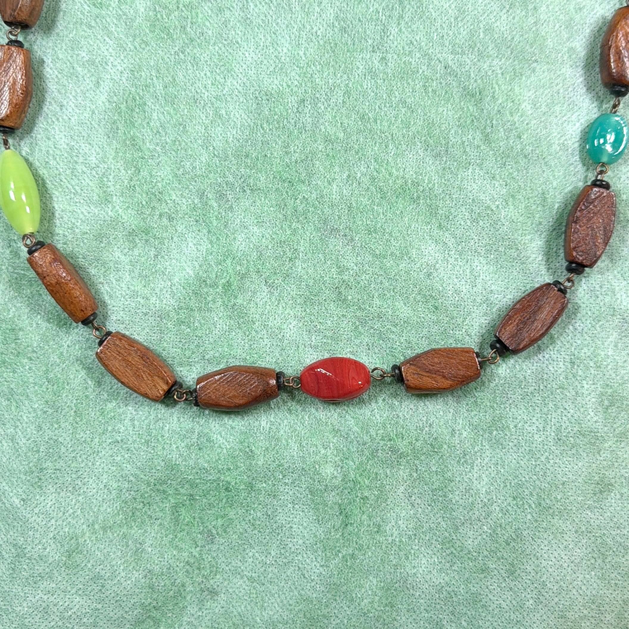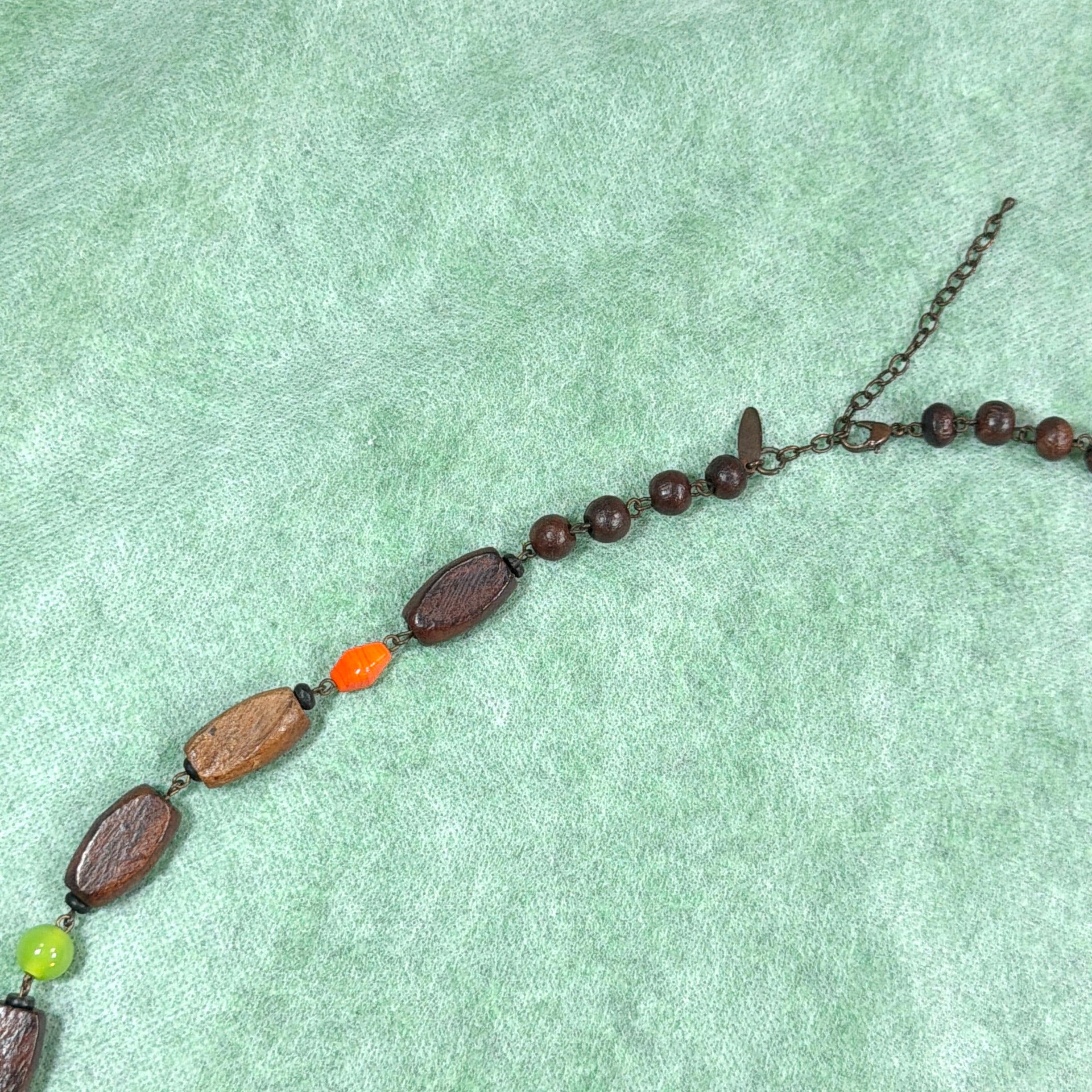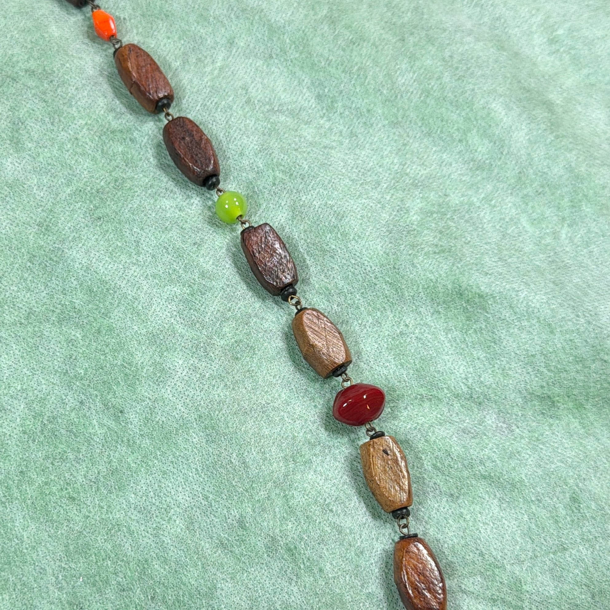 【Unisex】 ウッド × カラービーズ ロングネックレス / ボヘミアン 古着 アクセサリーネックレス