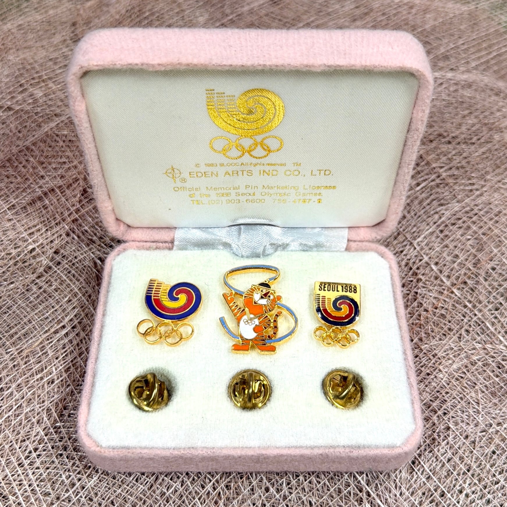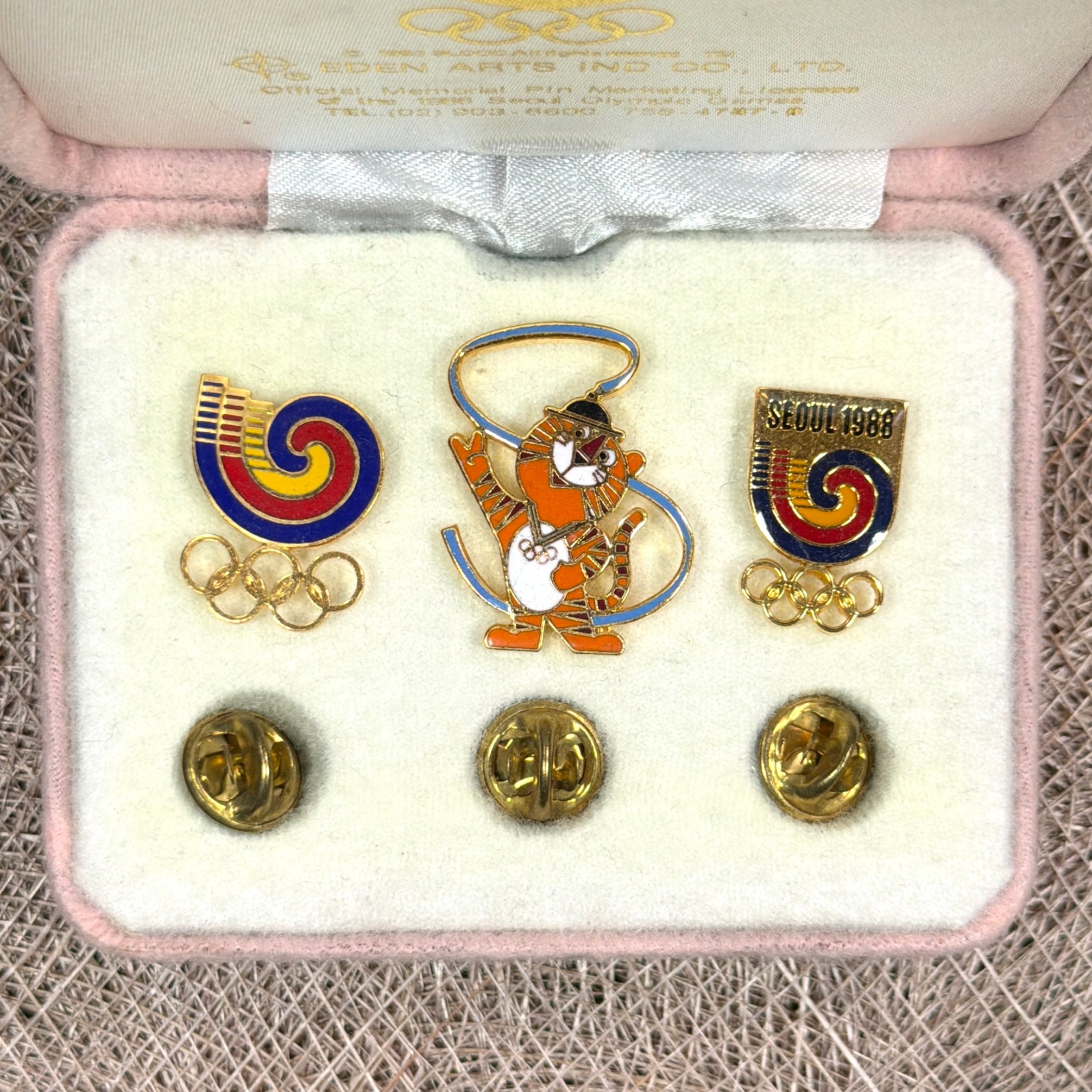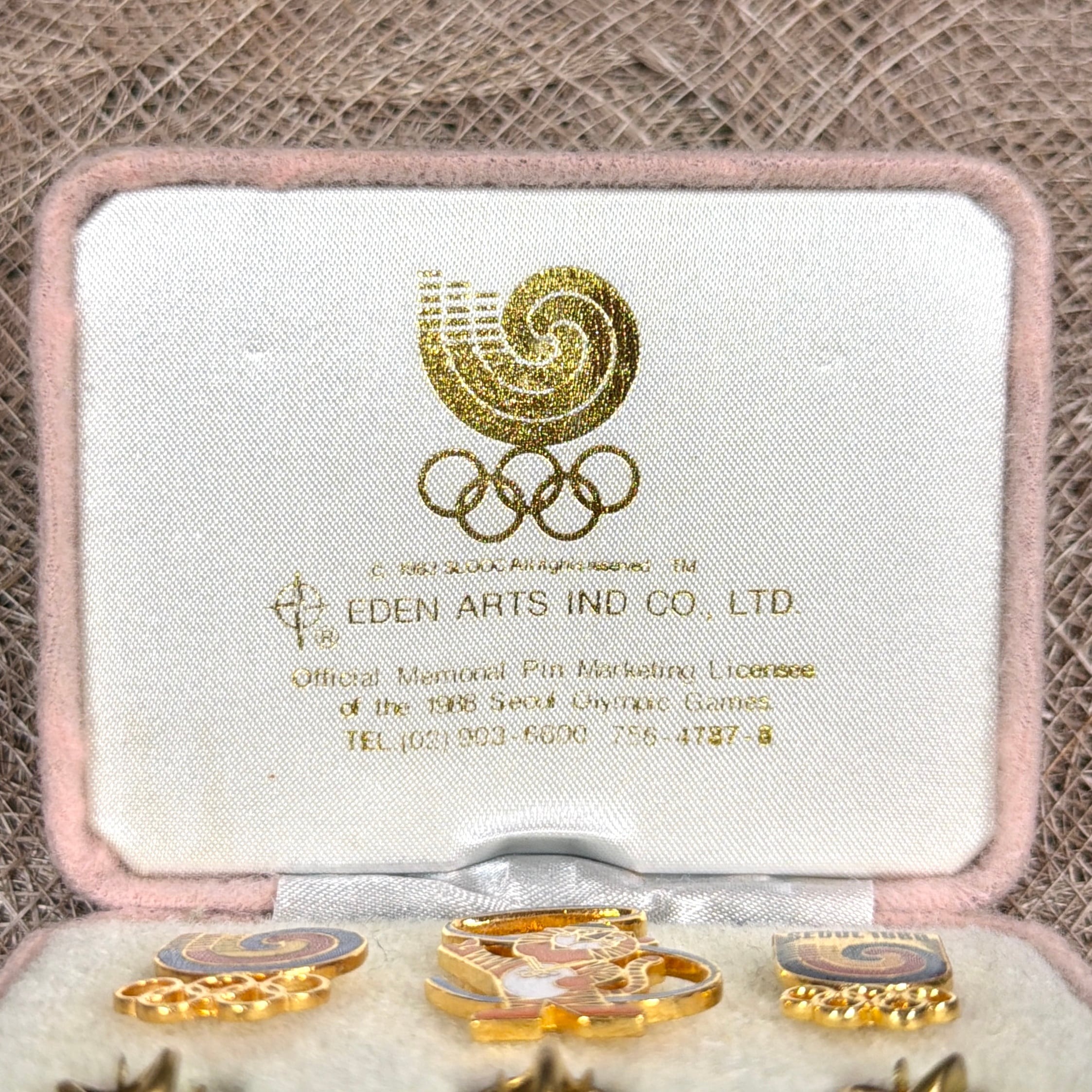 1988年に開催されたソウルオリンピックの公式ピンバッジをまとめた、ボックス入りセットです。