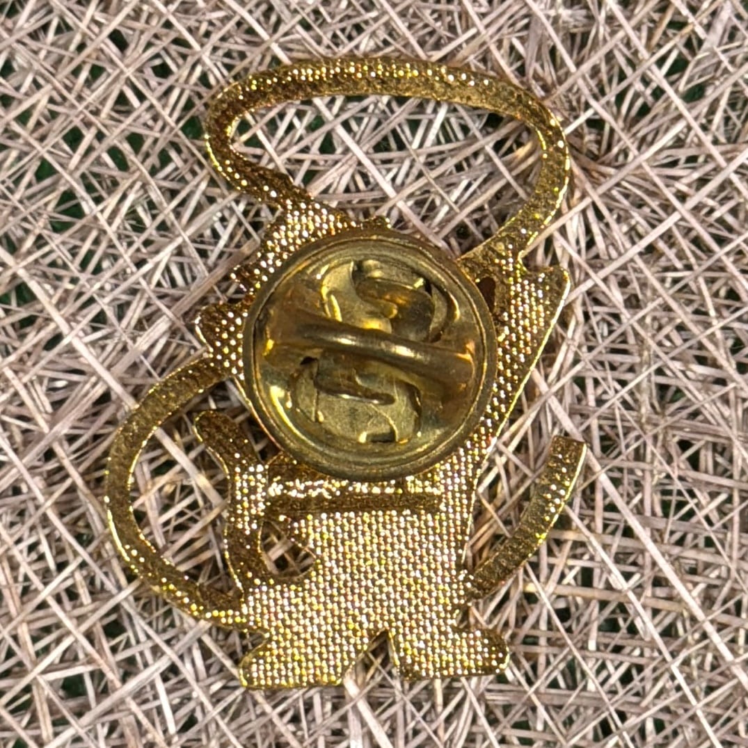 中央のピンバッジ 縦約3cm / 横約2.2cm