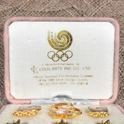 大会エンブレムやオリンピックリング、公式マスコット「ホドリ」など、当時の象徴的なモチーフが揃った内容で、オリンピックコレクタブルとしても評価の高いアイテム。