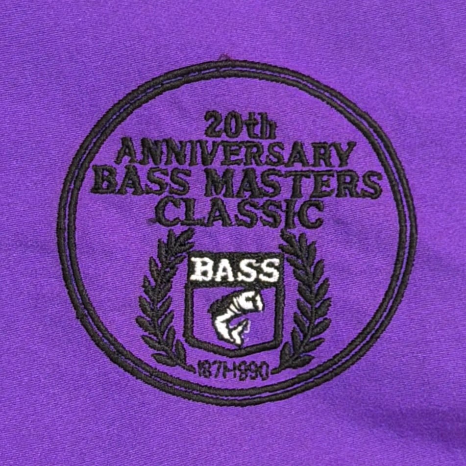 アメリカのバスフィッシング団体が主催する大会「BASS MASTERS CLASSIC」の20周年記念モデルで、胸元や背面には大会ロゴや記念刺繍が施されています。