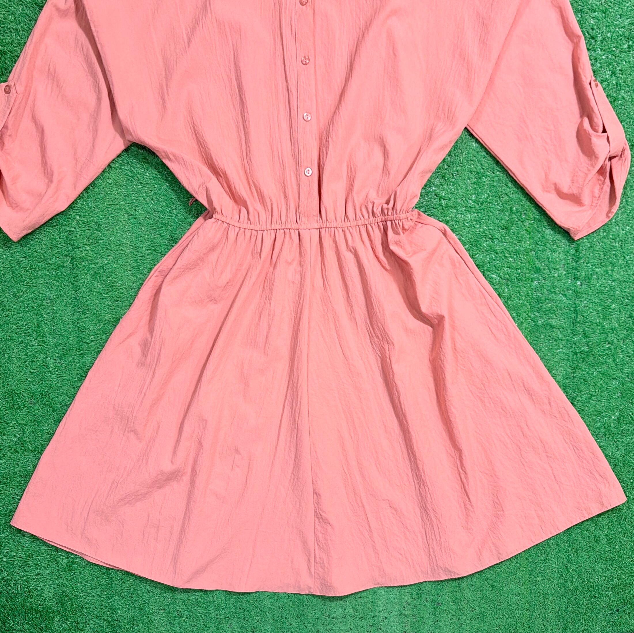 【Lady's】 80s ポリエステル シャカシャカ ワンピース / アメリカ製 USA製 80年代 古着 ワンピ レディース ピンク 1456