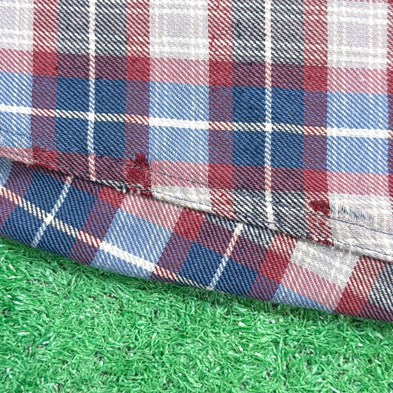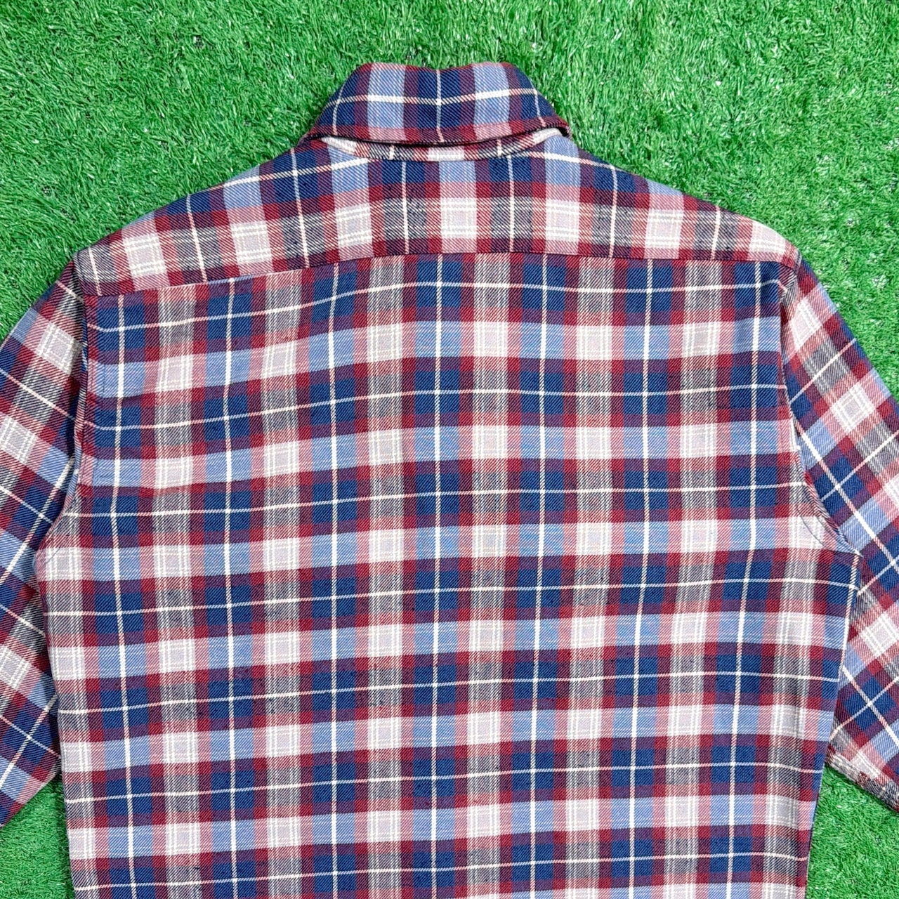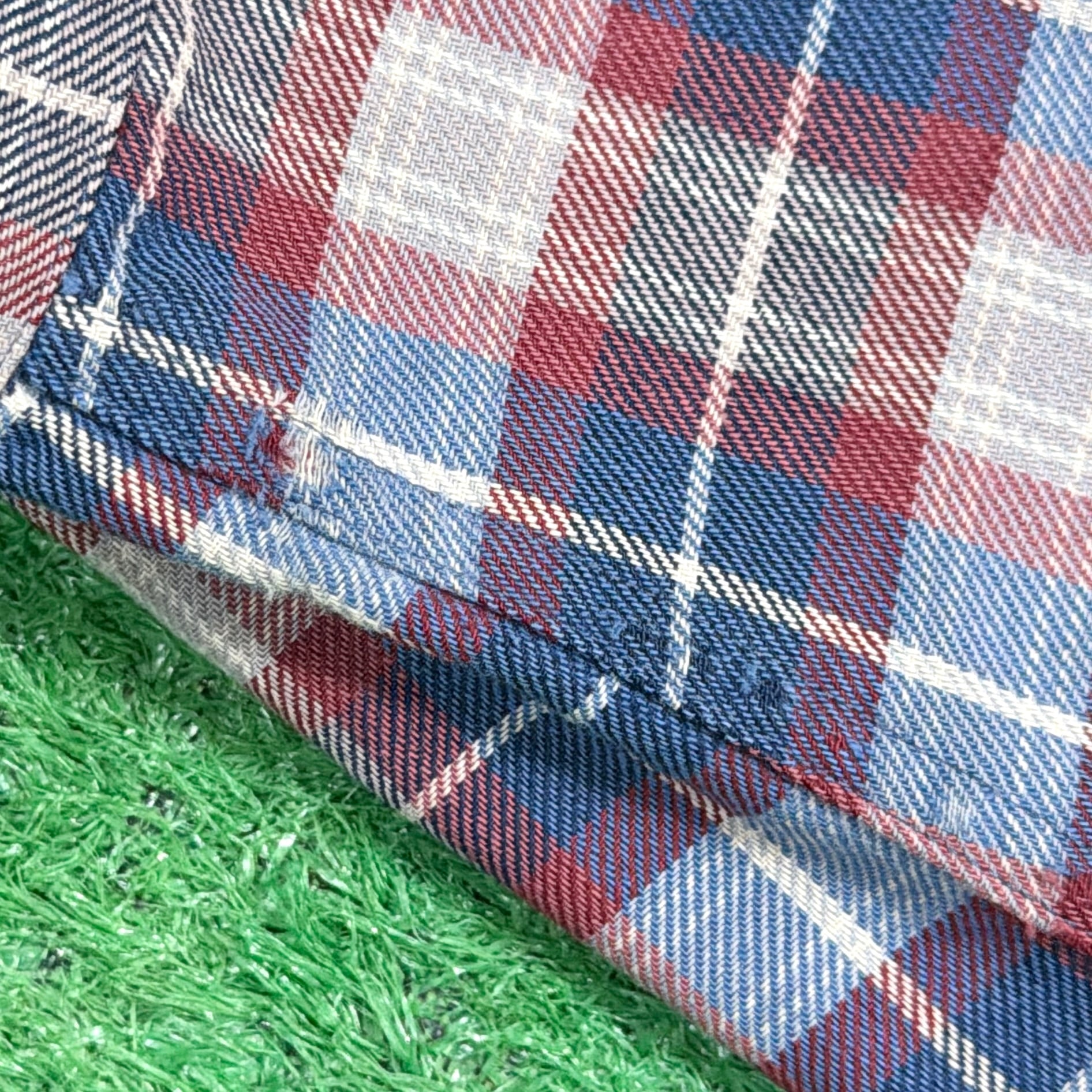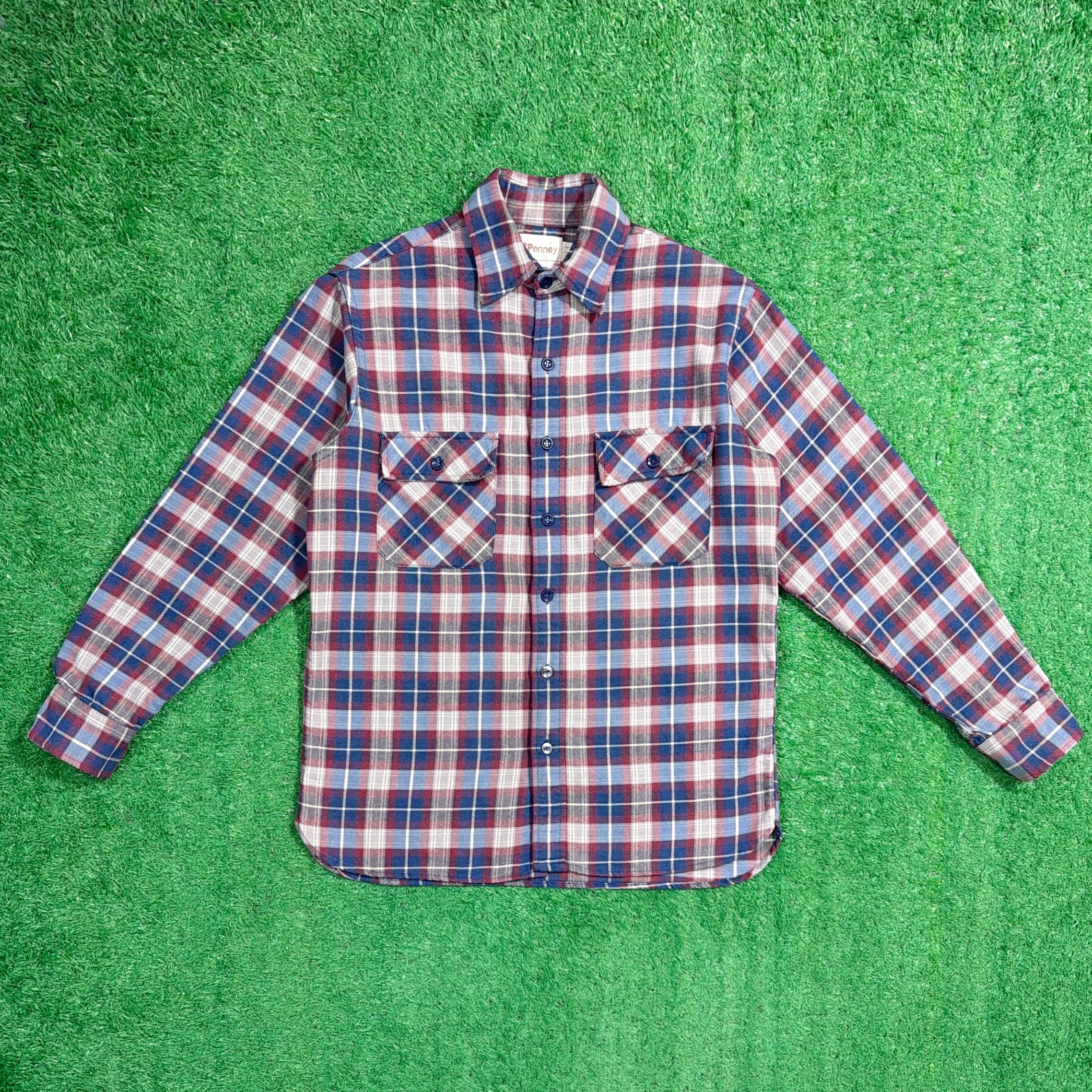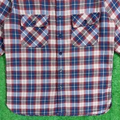 王道のチェック柄で、程よく落ち着いた配色が特徴的。フロントのフラップ付きポケットなど、ワークらしいディテールも雰囲気のある一着です。