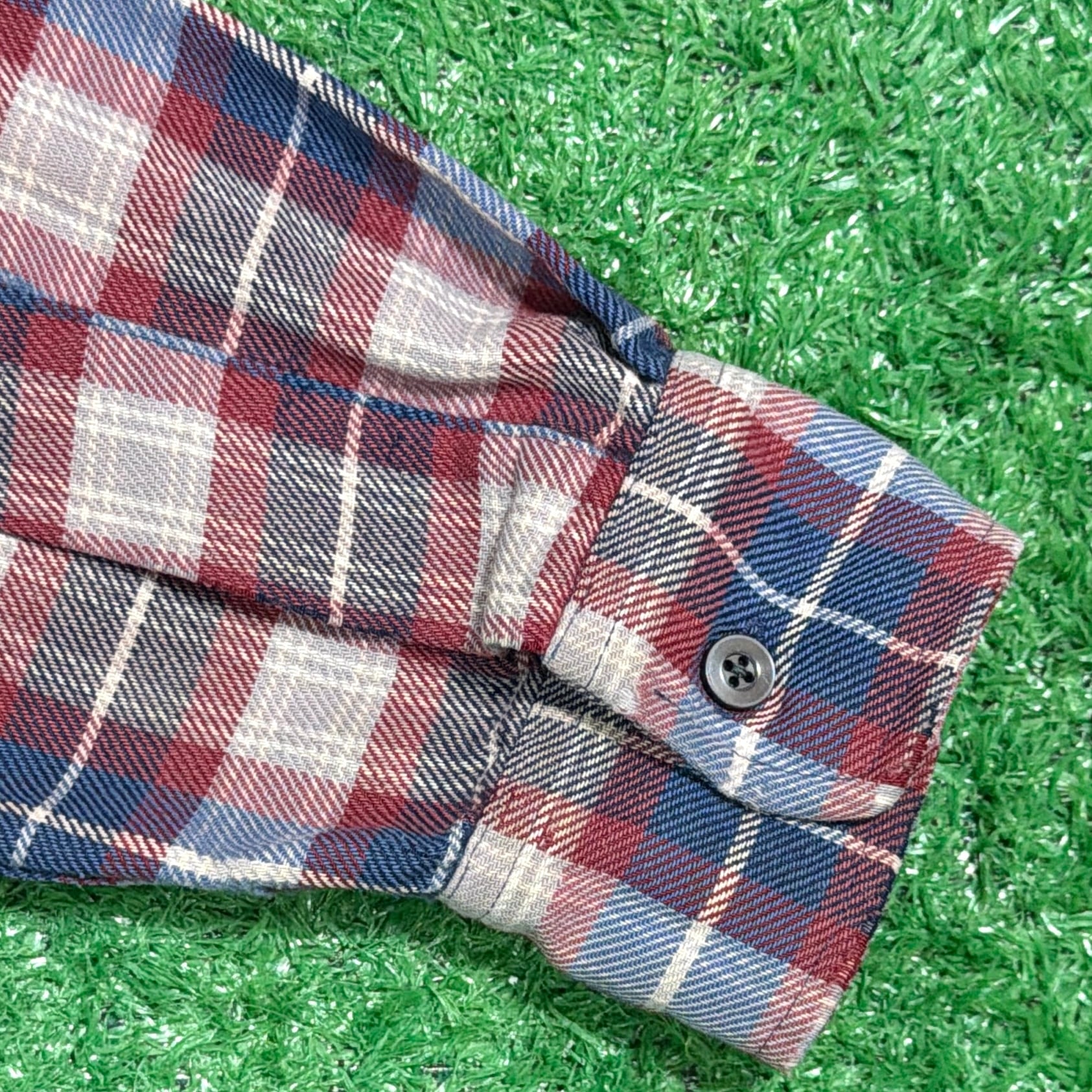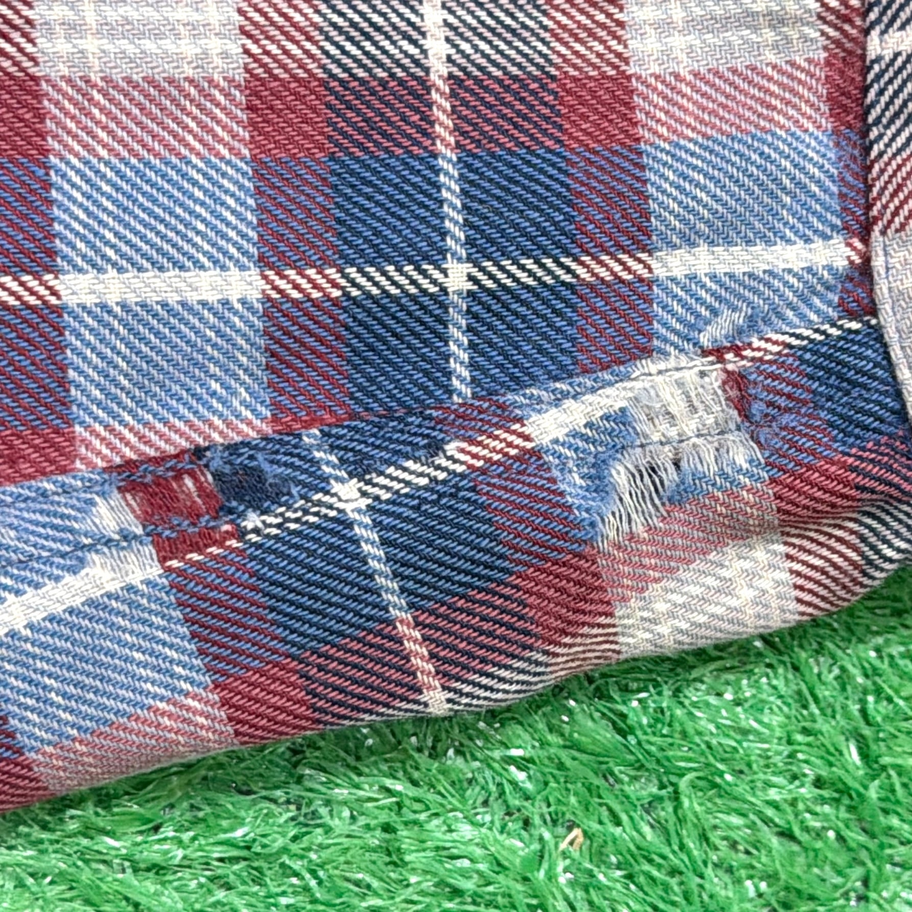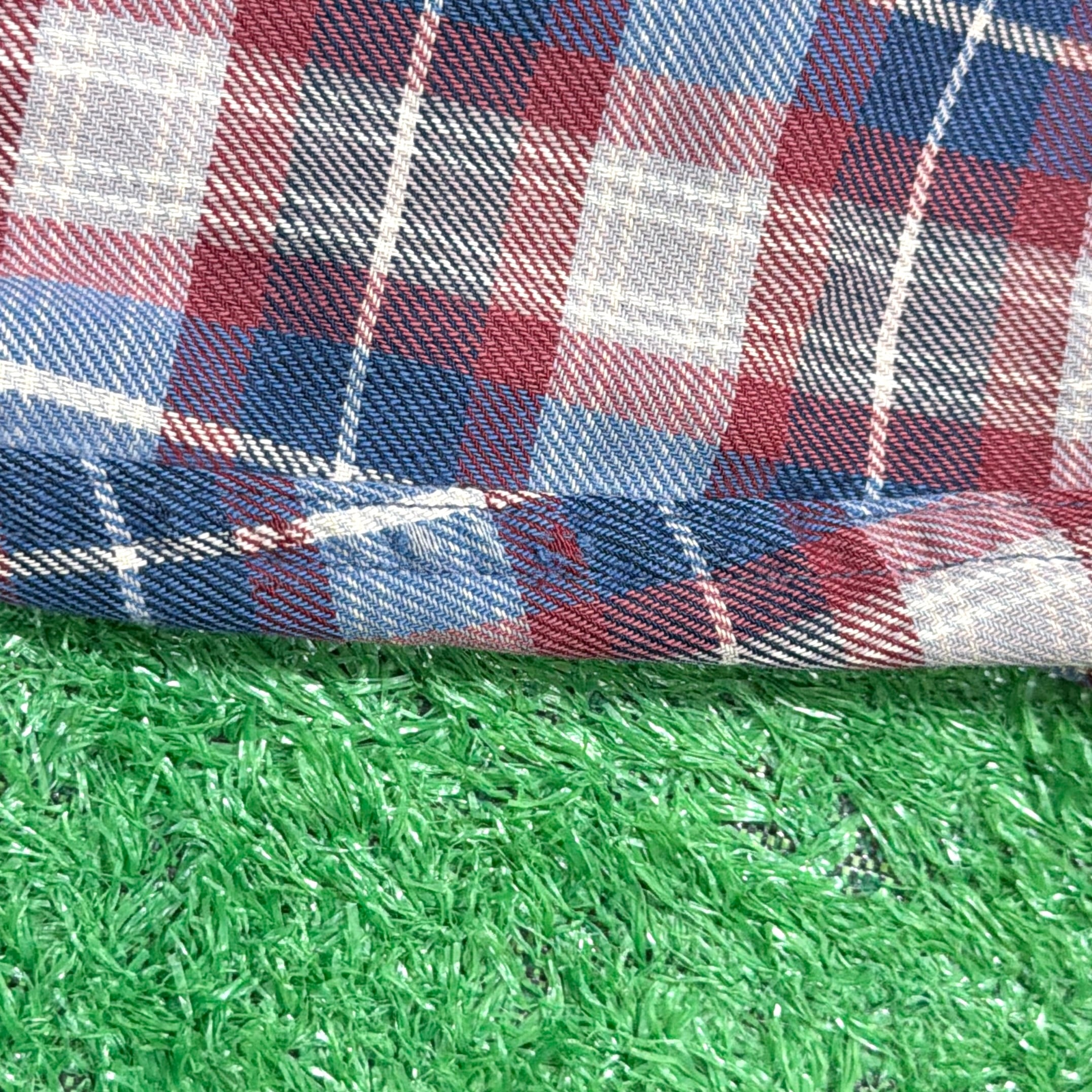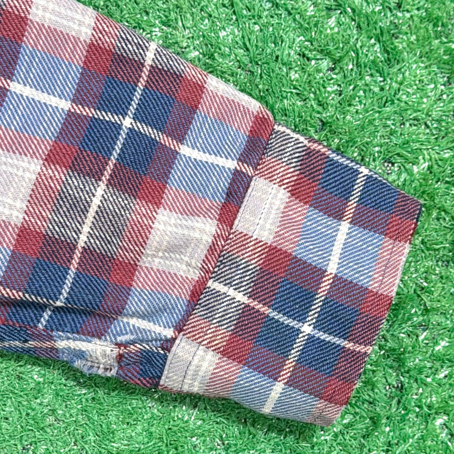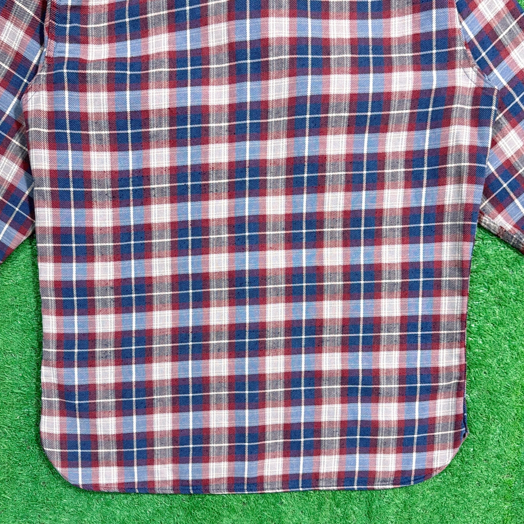 王道のチェック柄で、程よく落ち着いた配色が特徴的。フロントのフラップ付きポケットなど、ワークらしいディテールも雰囲気のある一着です。