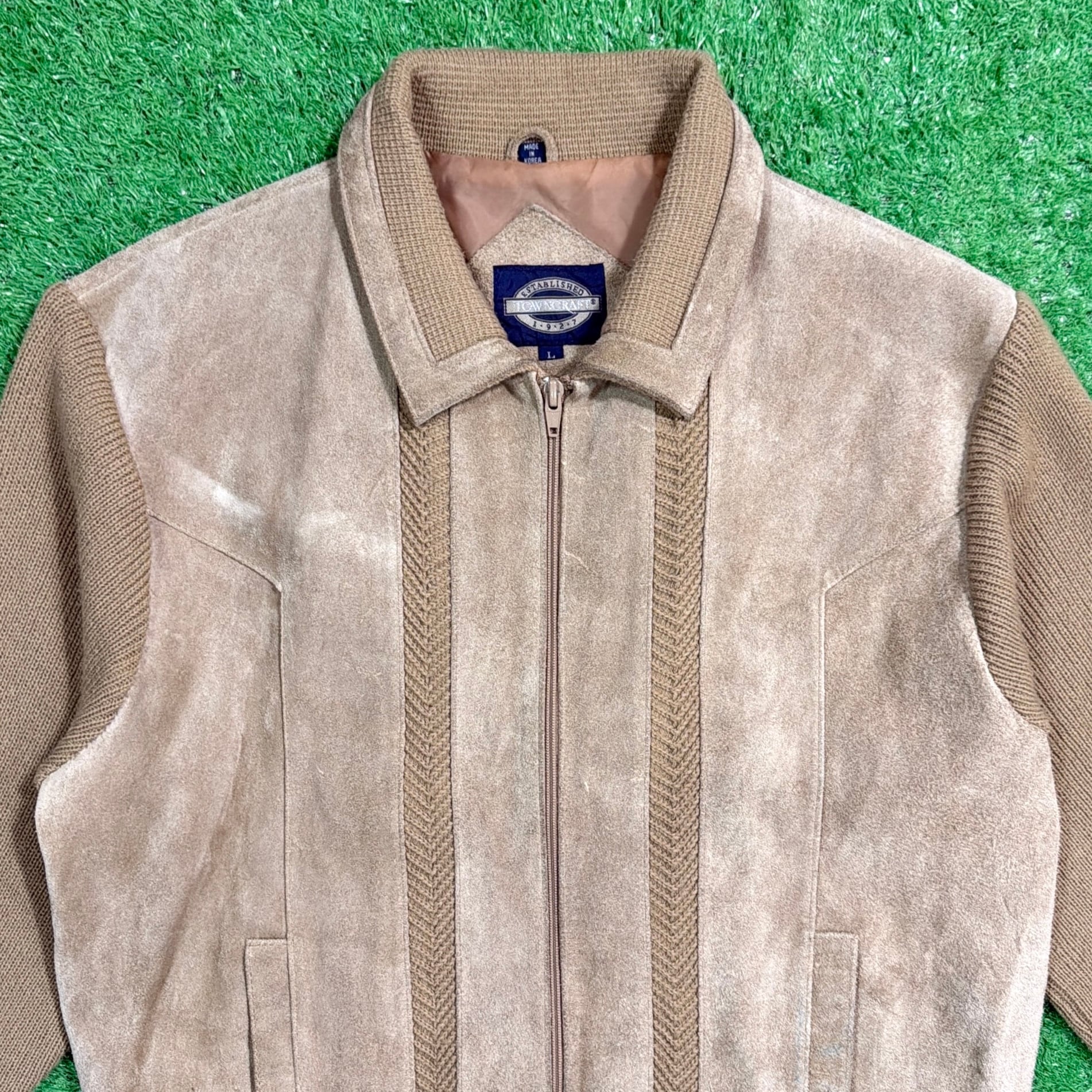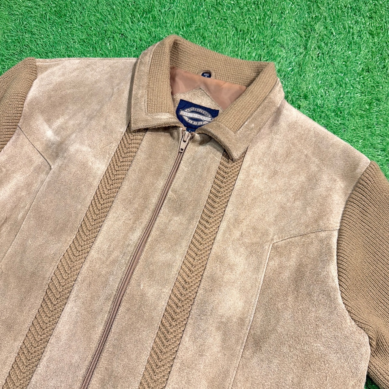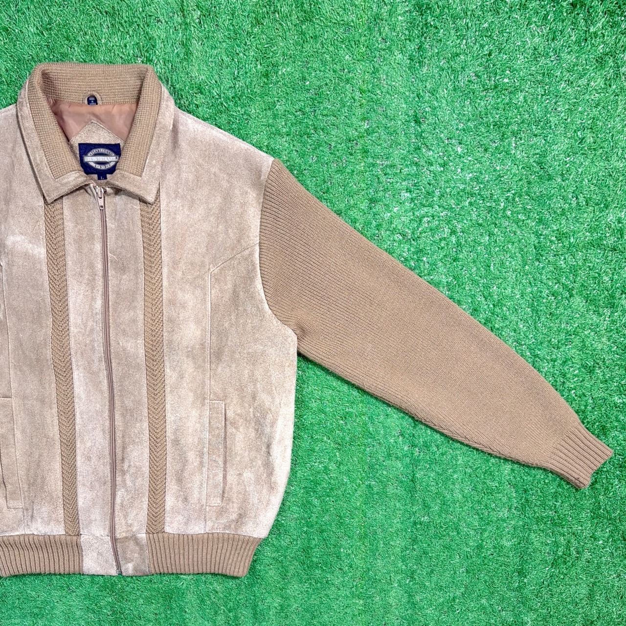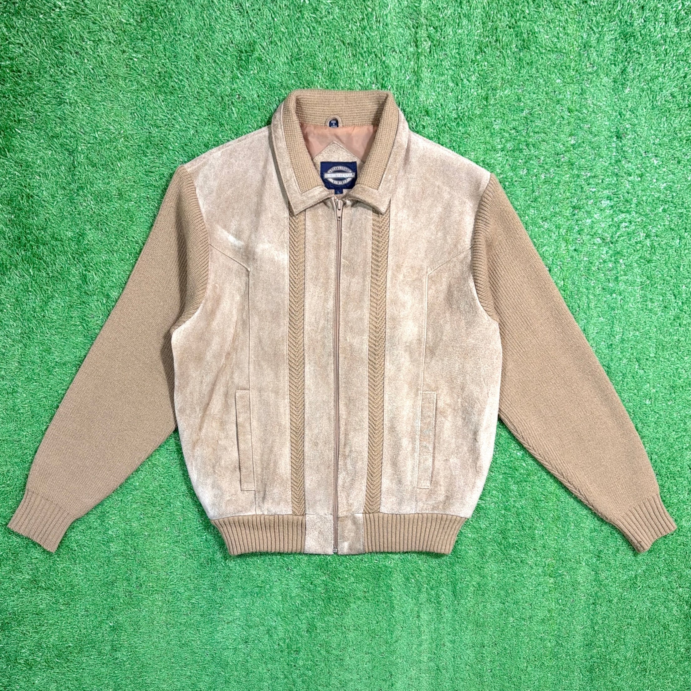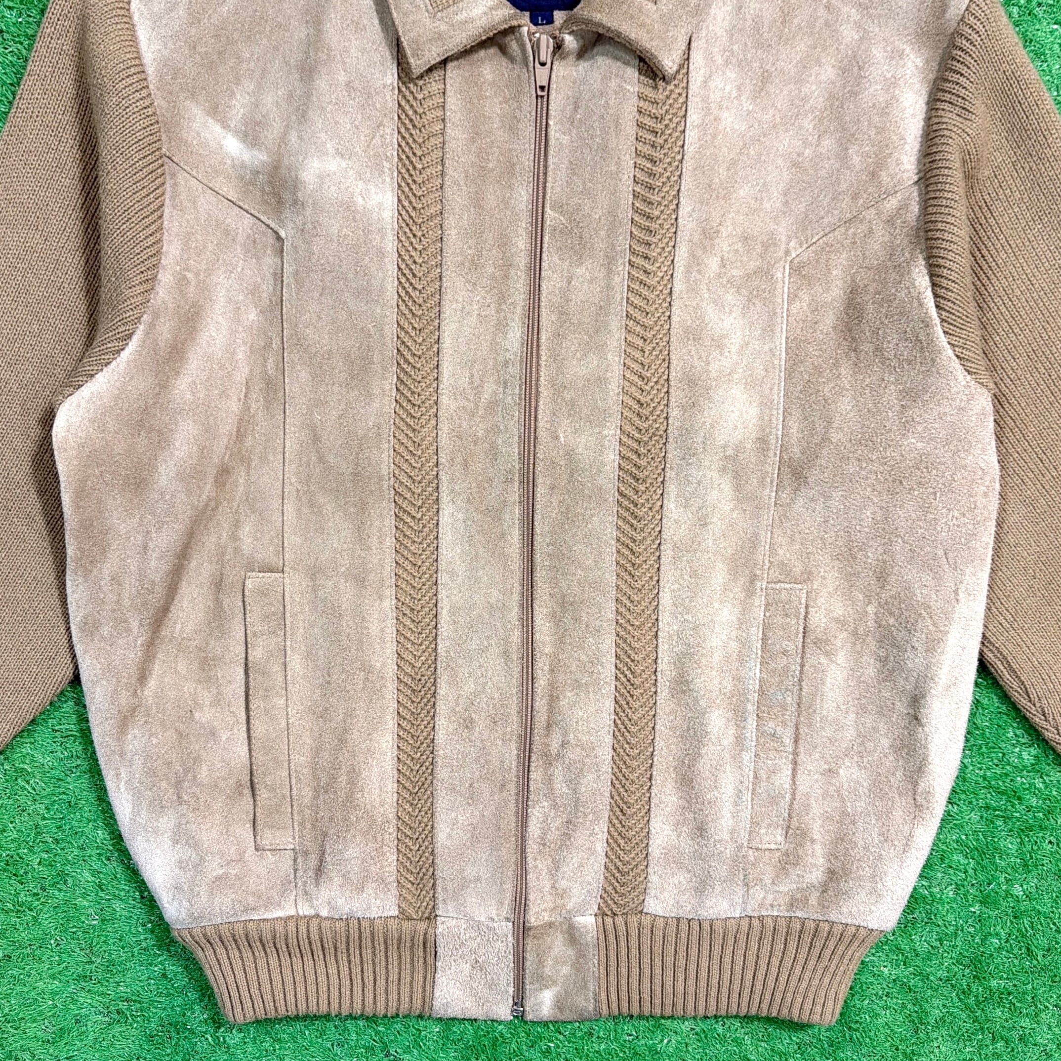 【Men's】 90s TOWN CRAFT スウェード ニット 切り返しデザイン ジャケット / 90年代 古着 ジップジャケット 1460