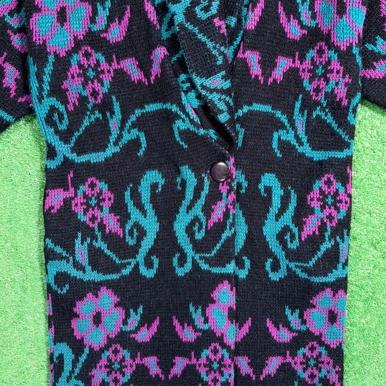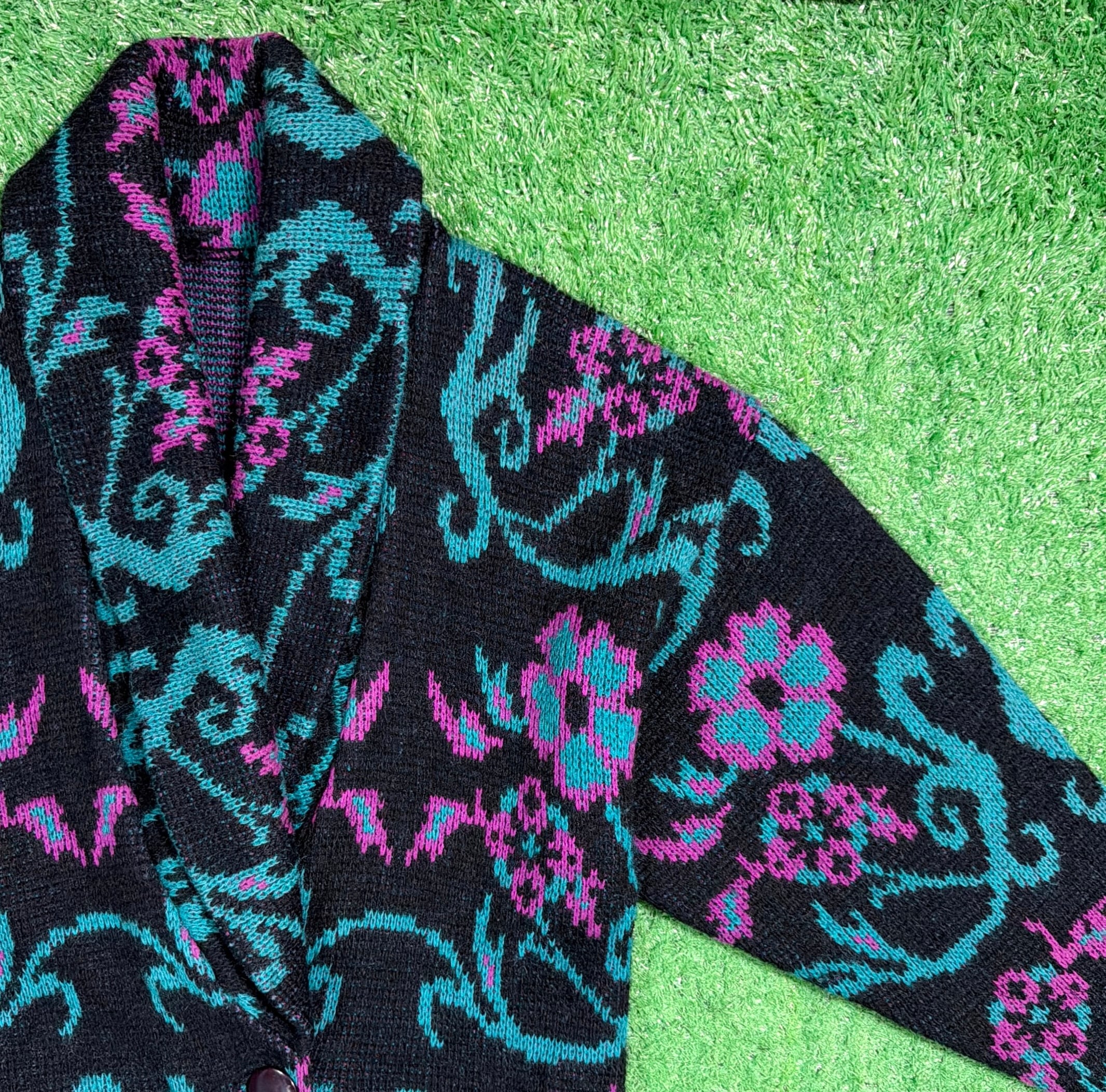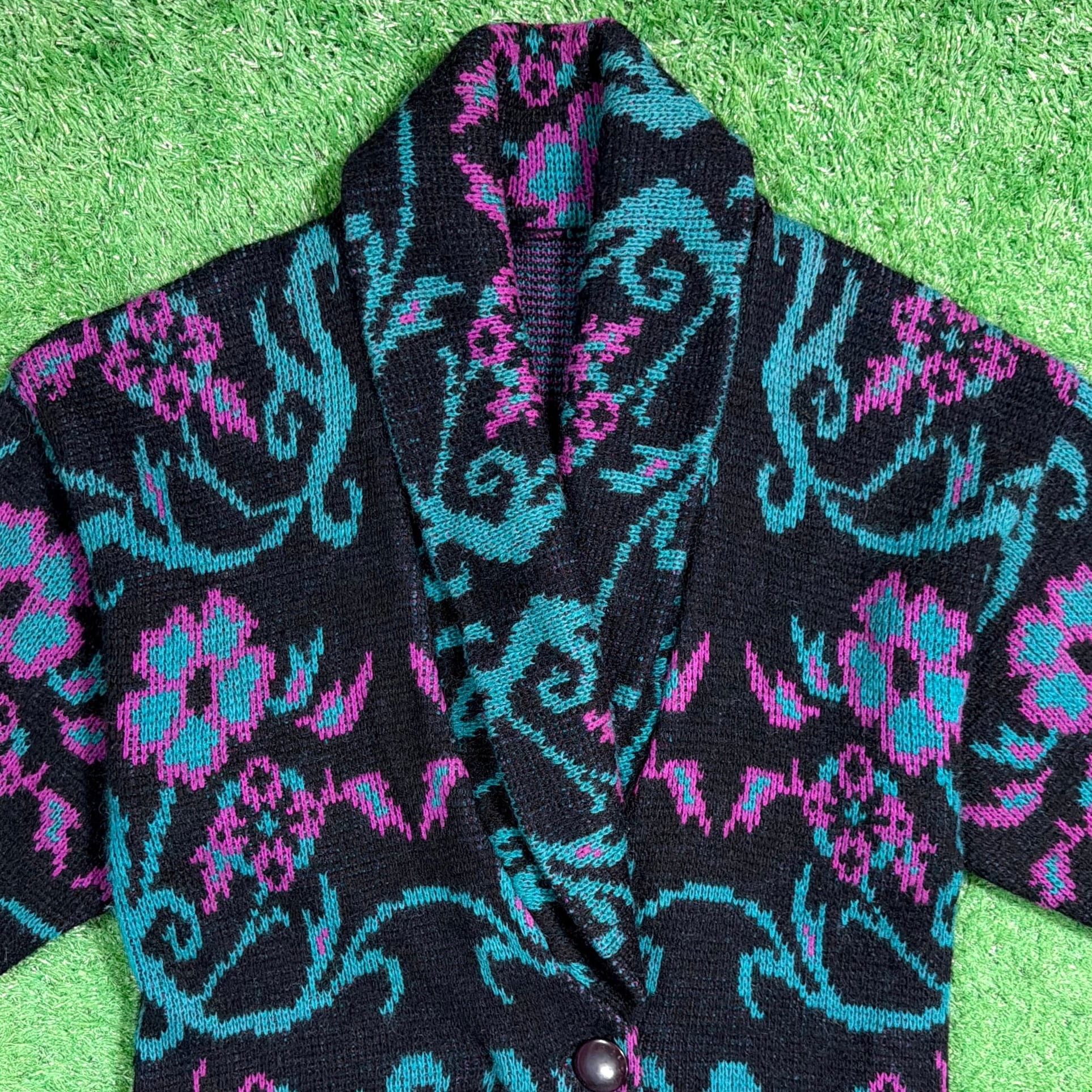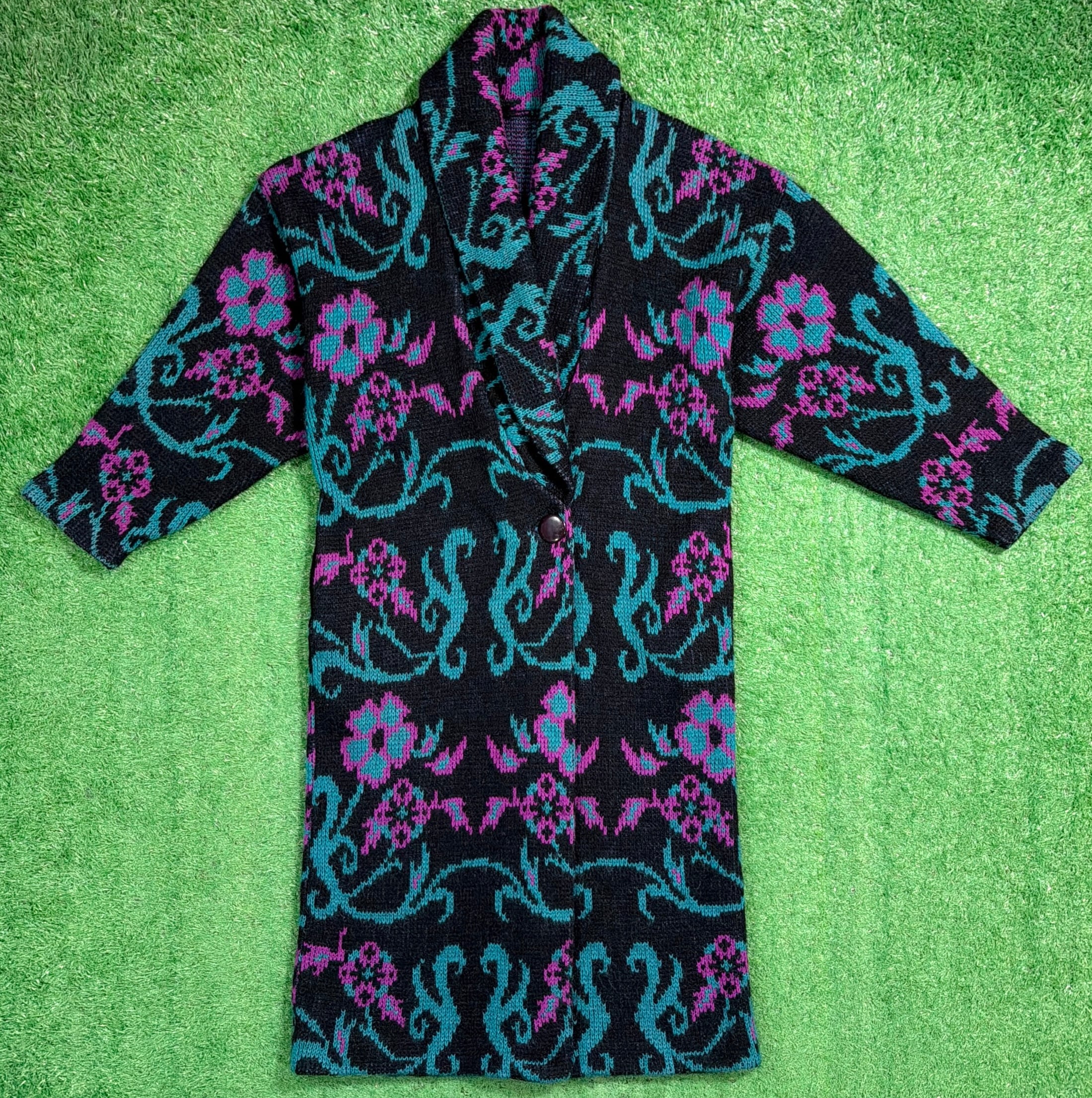【Lady's】 花柄 ロング丈 肉厚 カーディガン / 古着 レディース カーデガン 1461