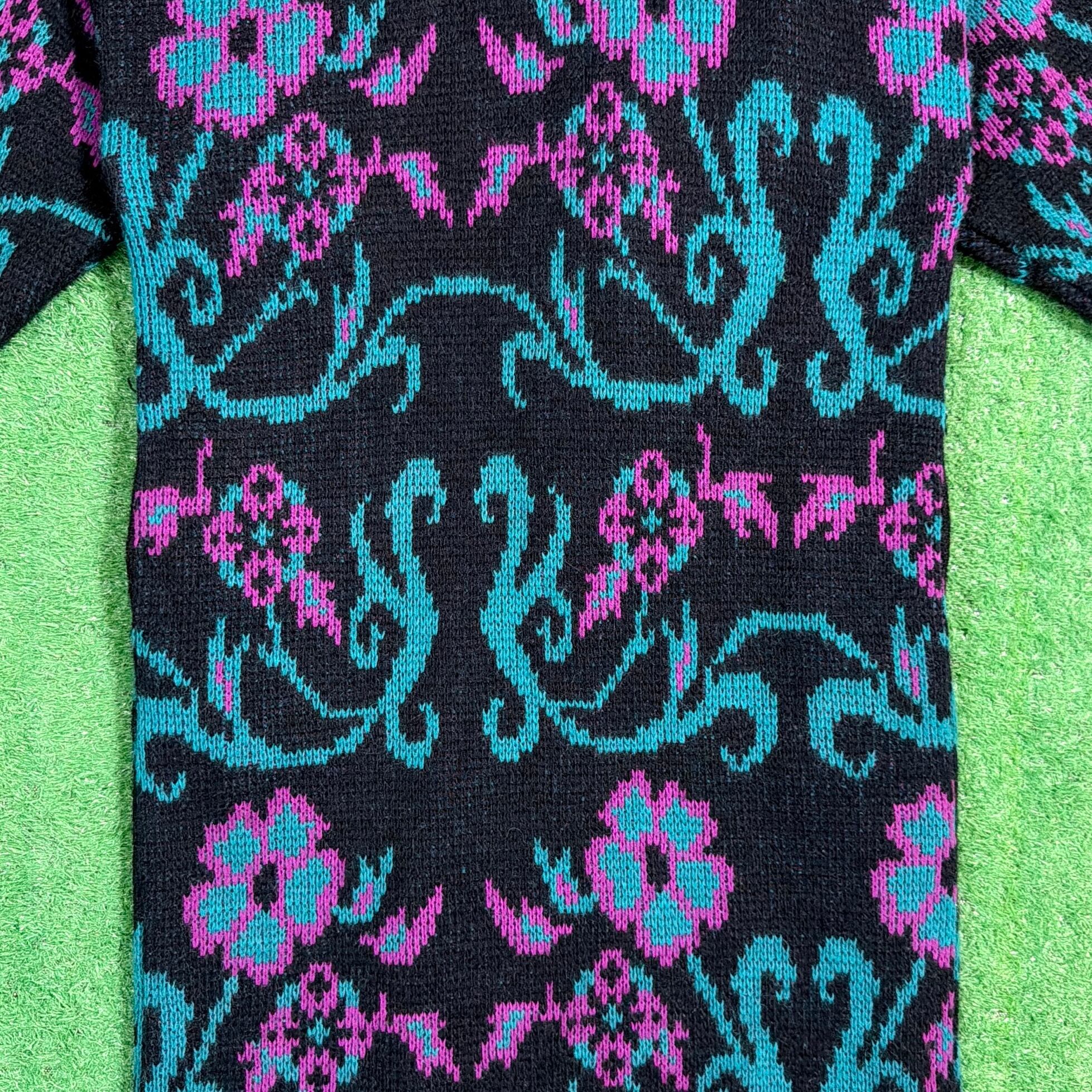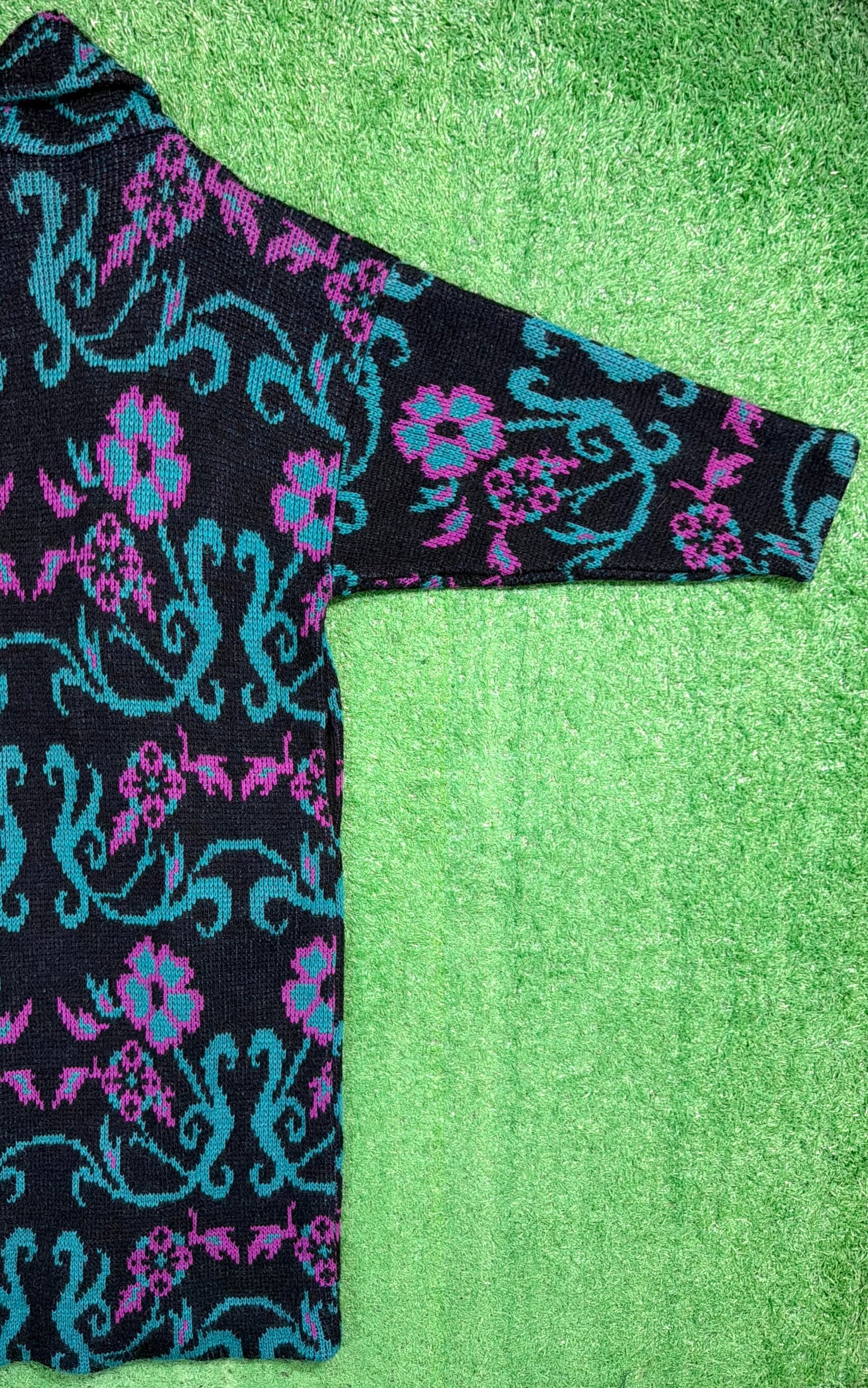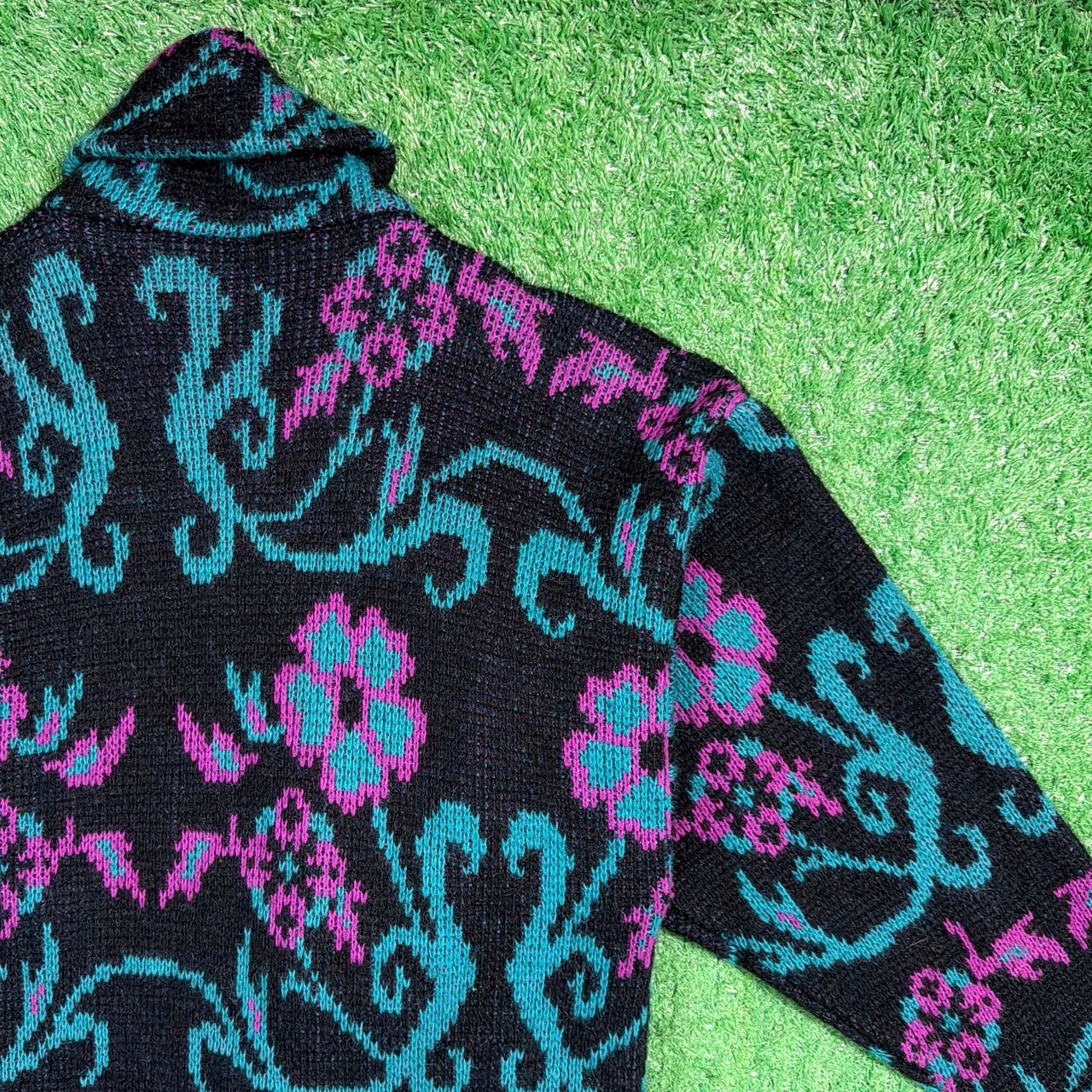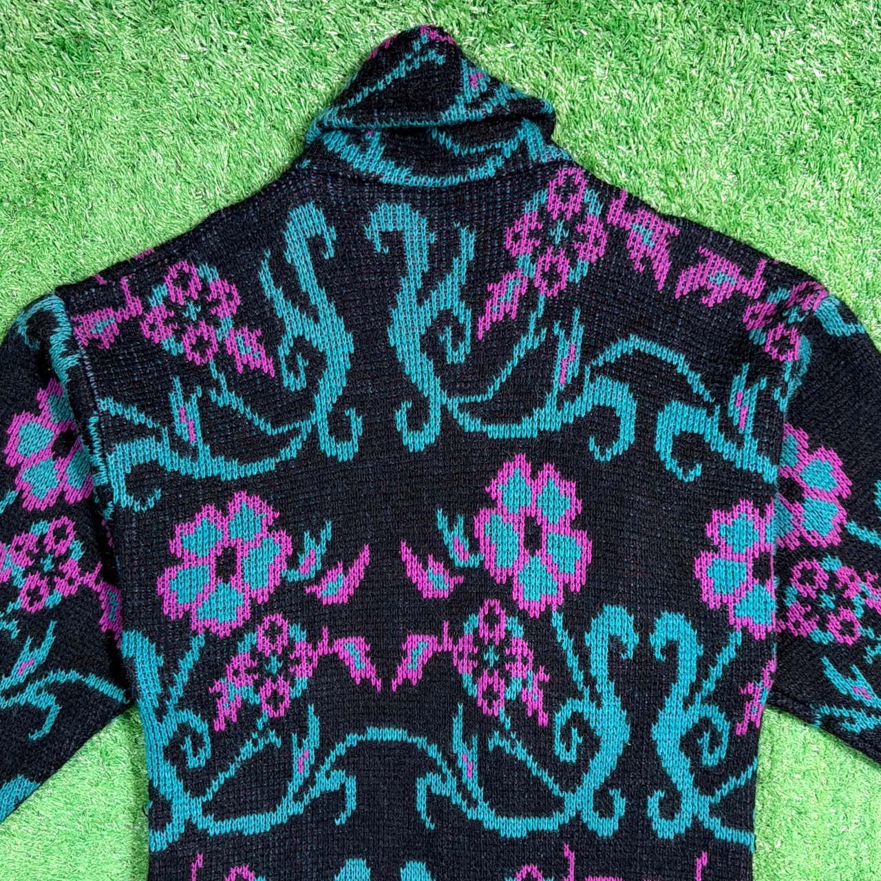 【Lady's】 花柄 ロング丈 肉厚 カーディガン / 古着 レディース カーデガン 1461