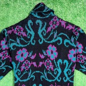 ブラックベースに、花柄が映える存在感のある一着。肉厚でしっかりとした素材感のため、ライトアウター感覚で着用できます。