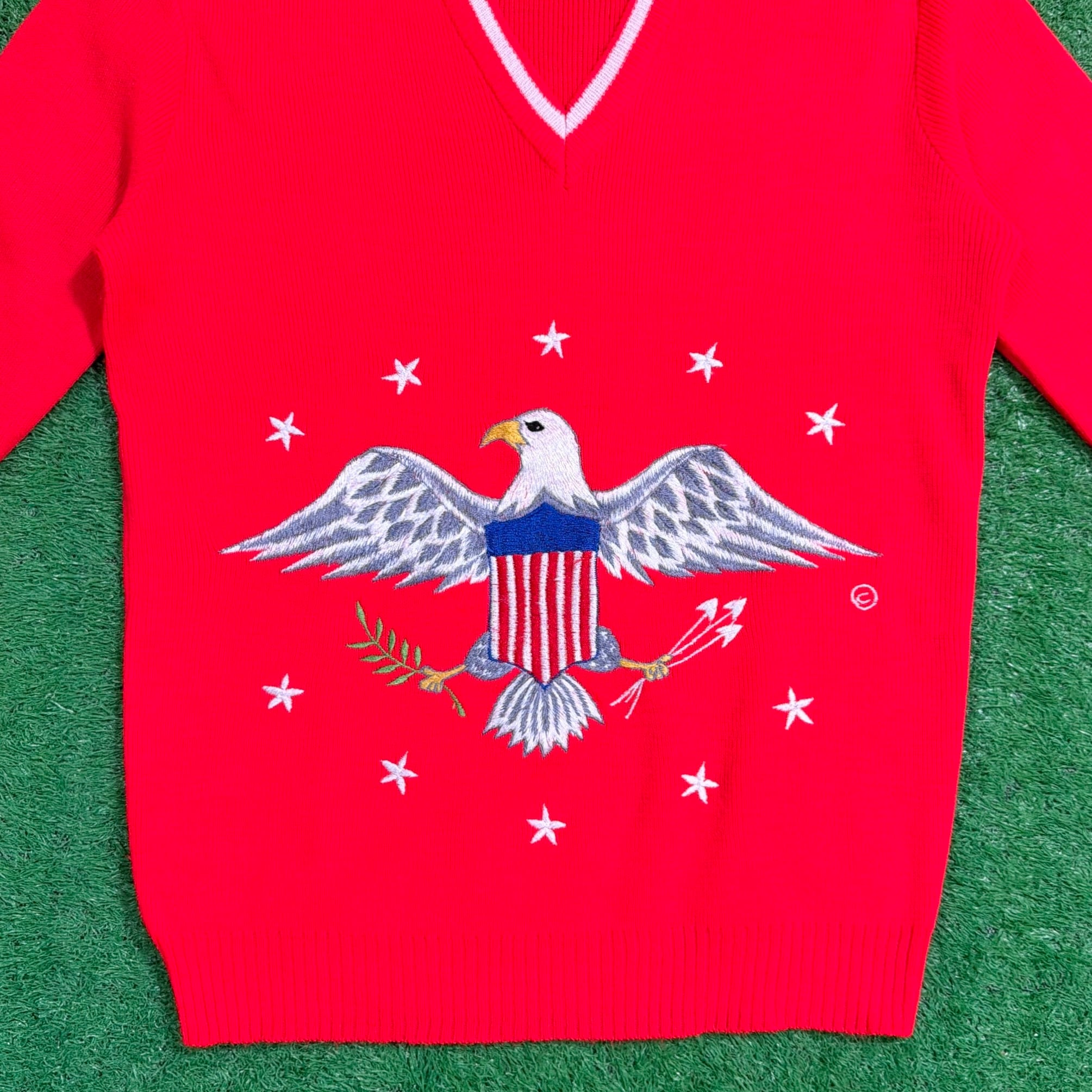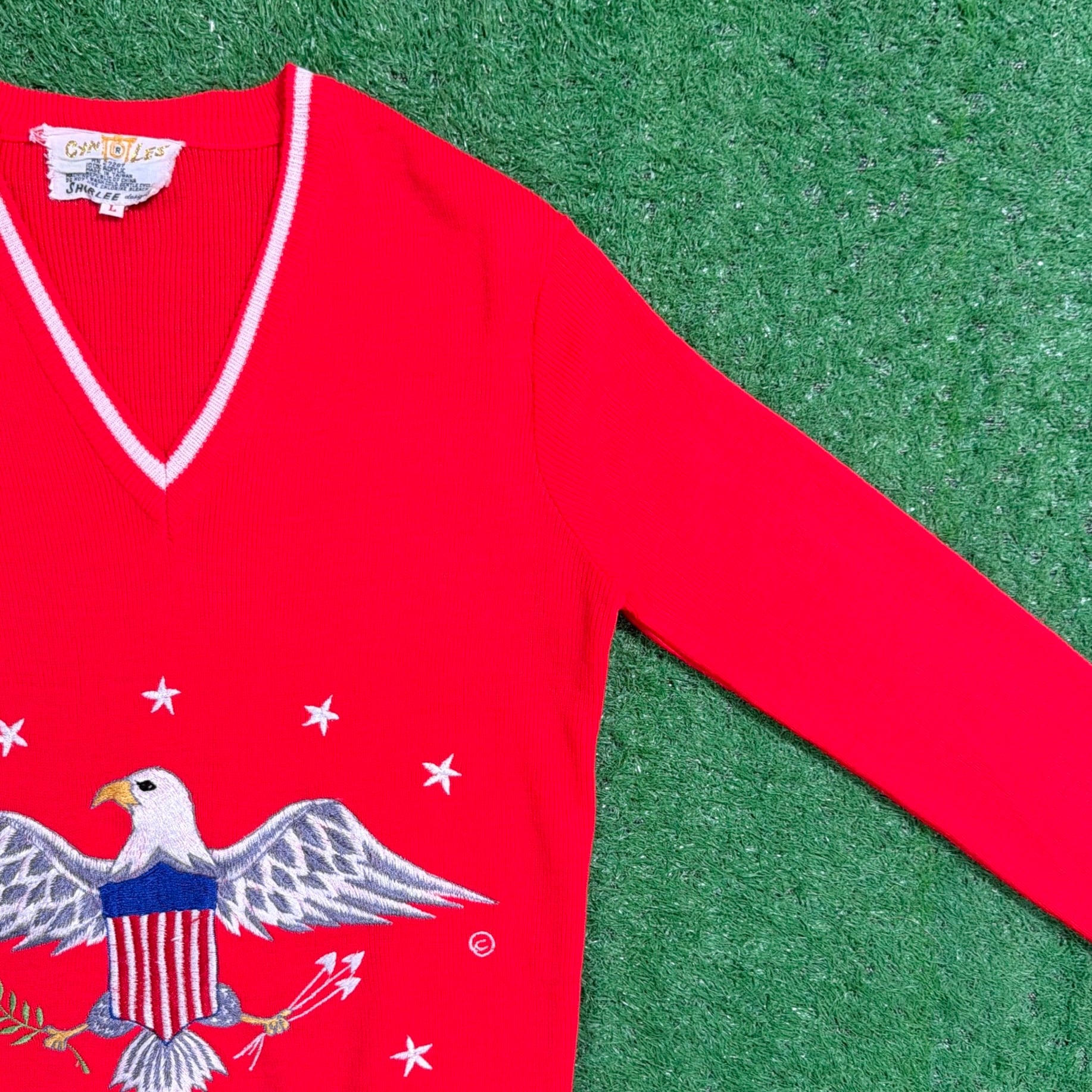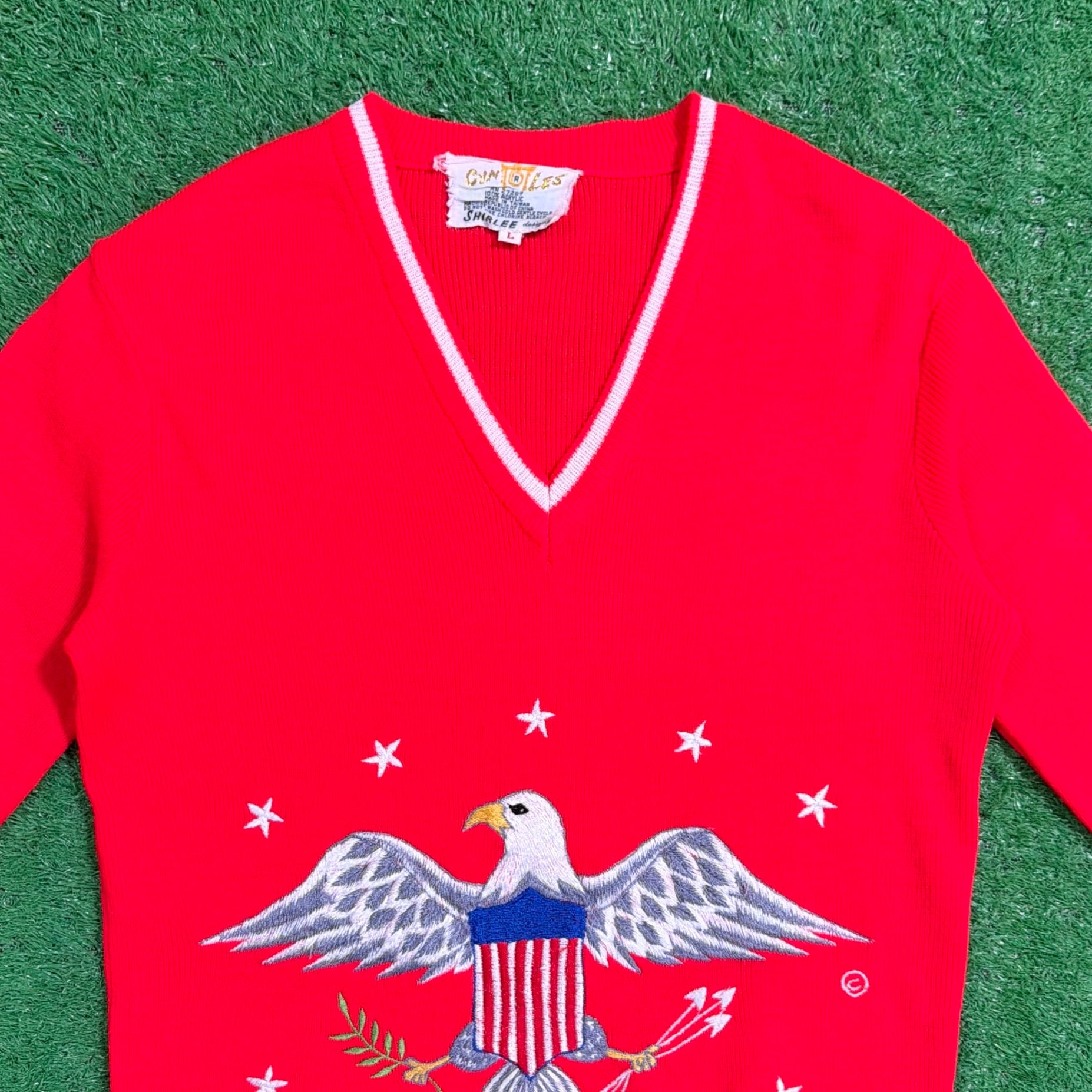1970年代のアメリカンイーグル刺繍入り、Vネックニットセーターです。