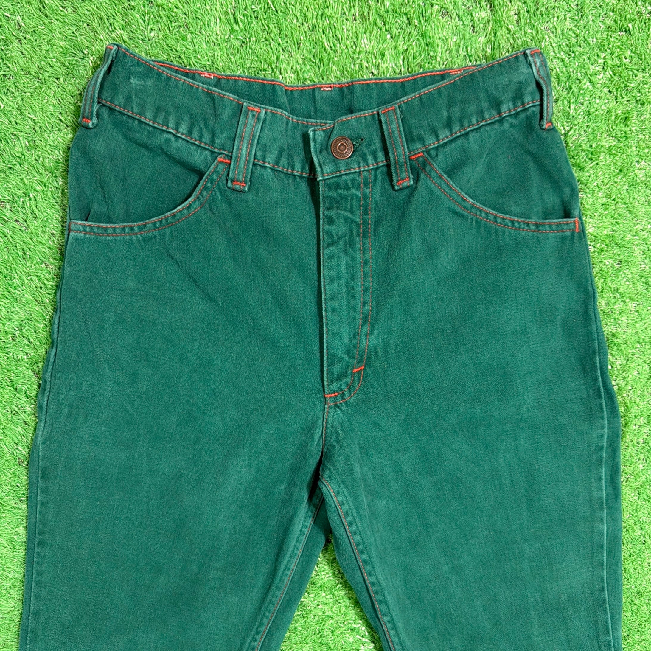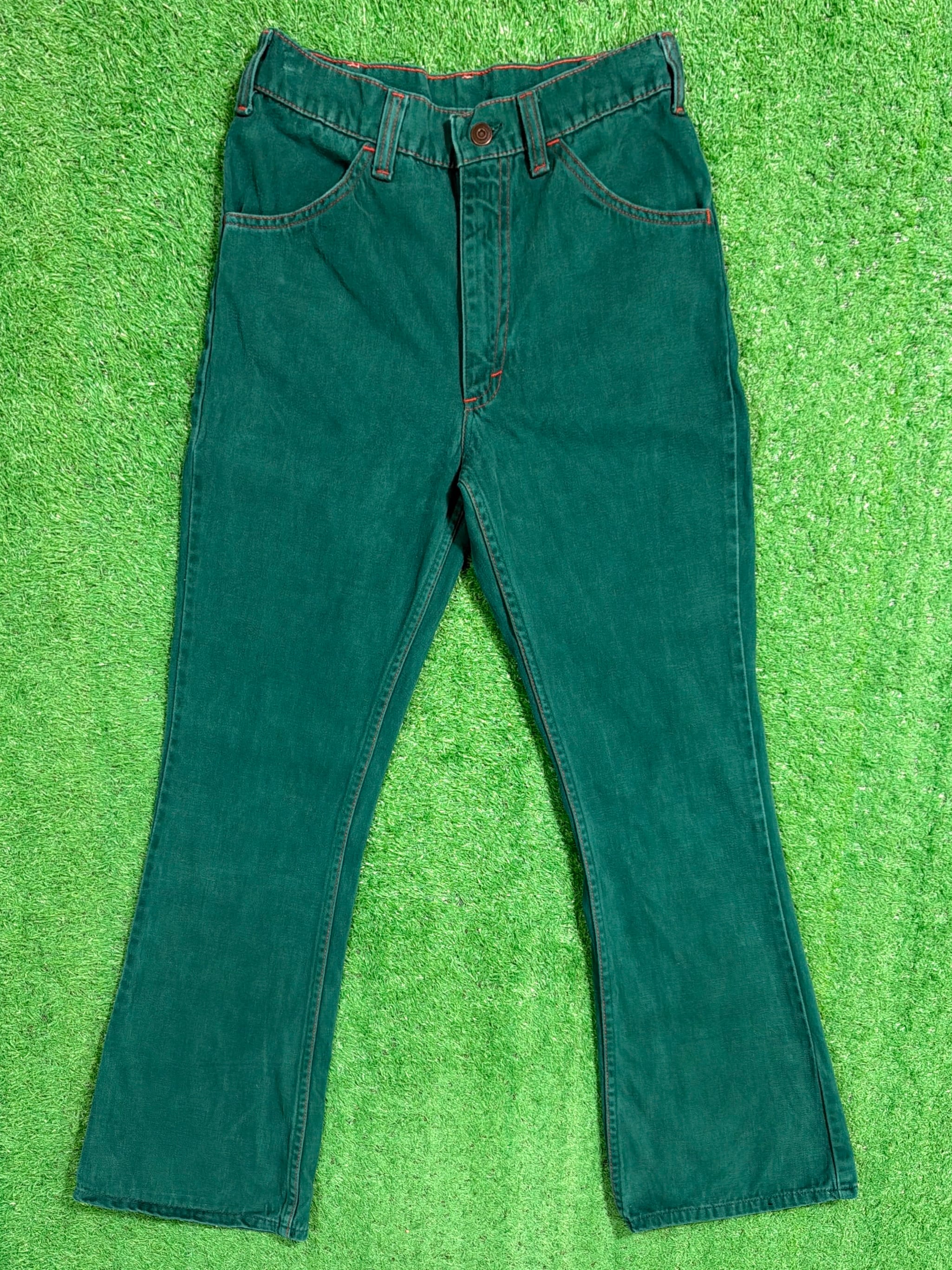 70年代〜80年代頃の、グリーンカラーが印象的なフレアパンツです。