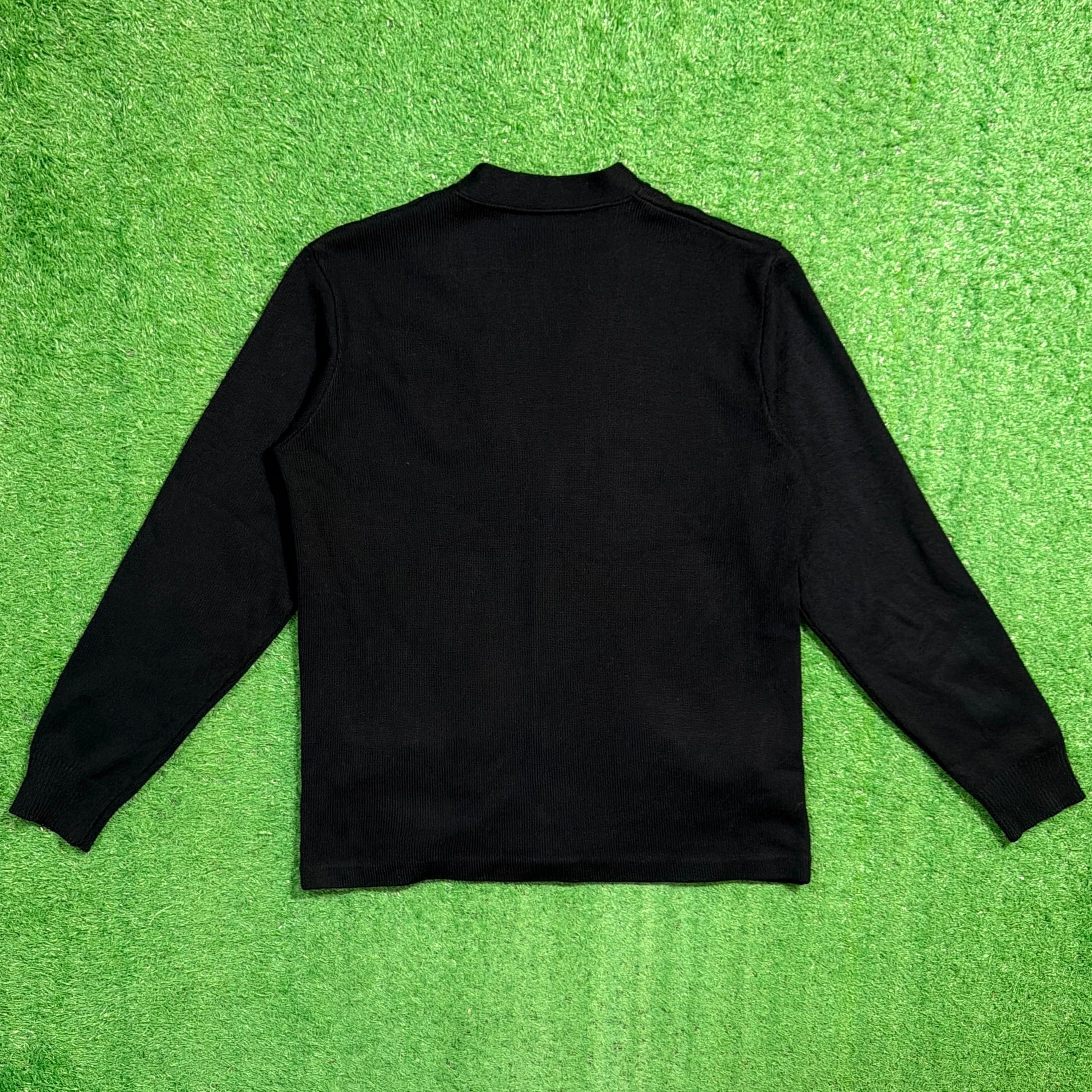 シンプルなブラックボディにワッペンが映えるデザインで、スクールカーディガンらしいクラシックさと、90sらしいゆるさがバランスよく感じられる一枚。アクリル素材のため、軽くて扱いやすく、デイリーに取り入れやすいのもポイントです。