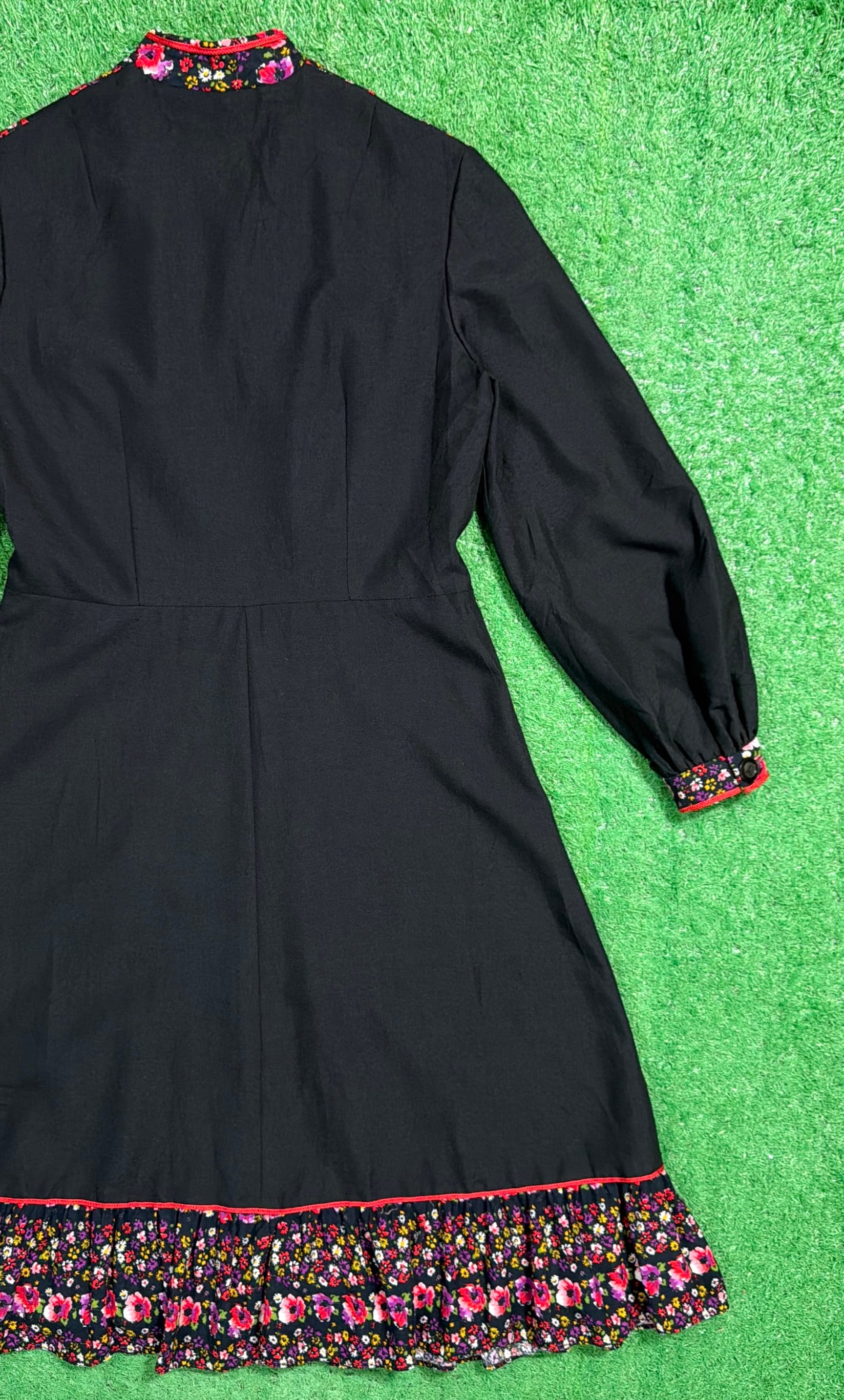 【Lady's】 70s - 80s フォークロア ワンピース / 70年代 80年代 ワンピ 古着 黒 レディース 1491