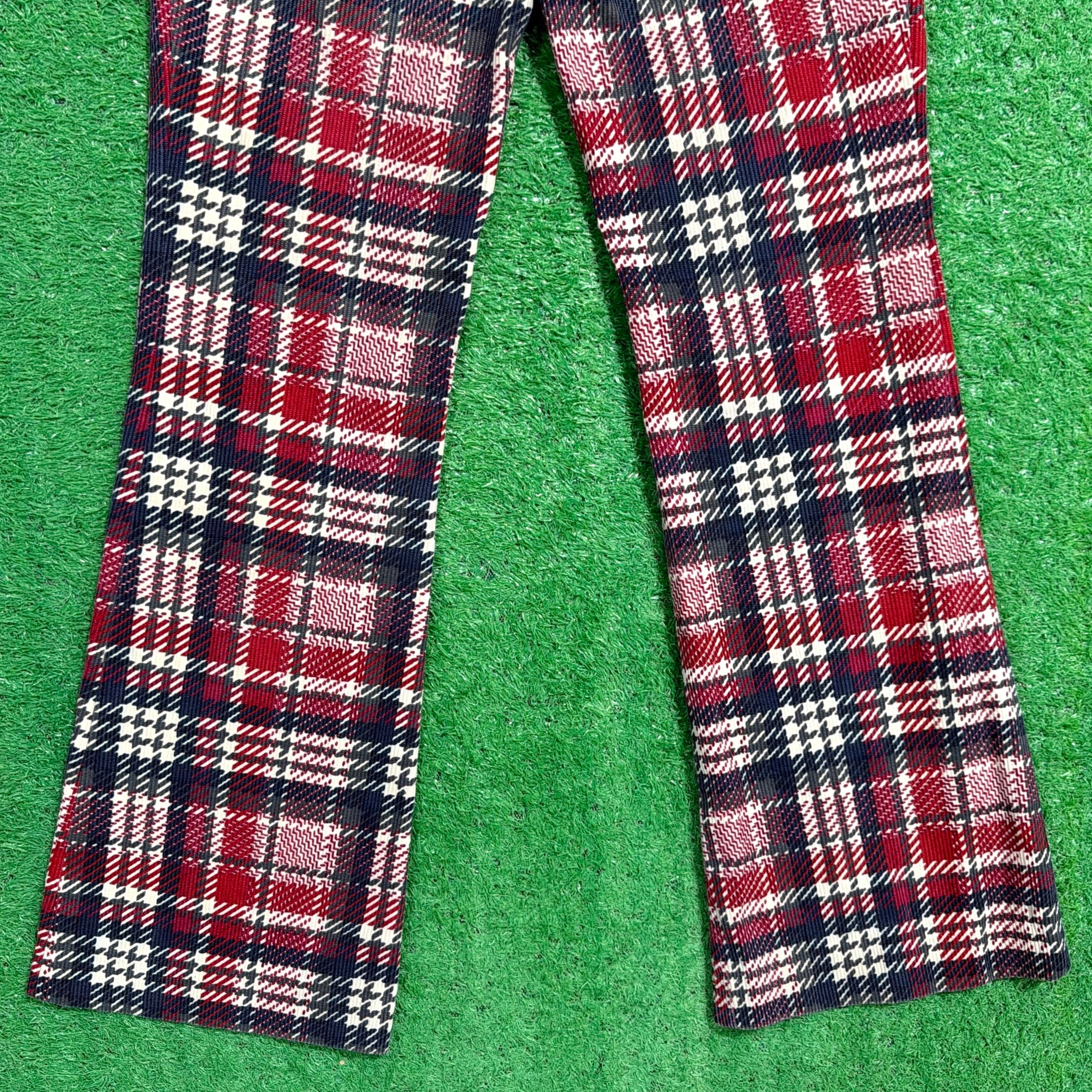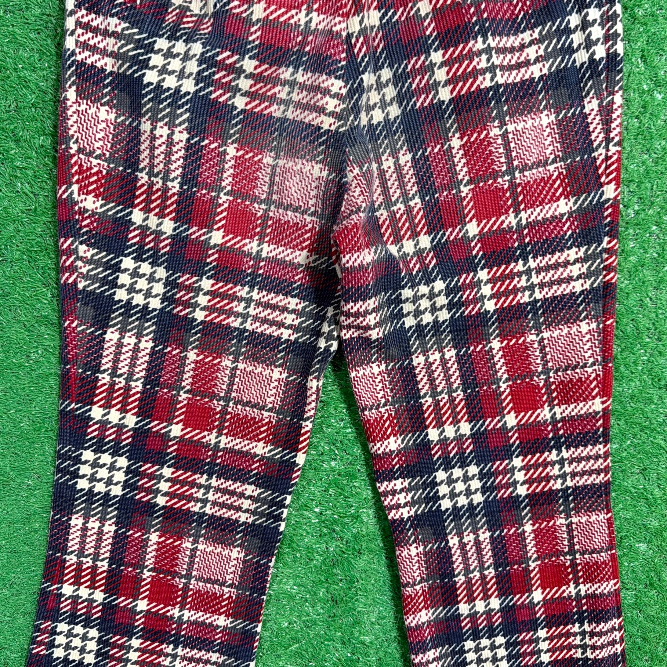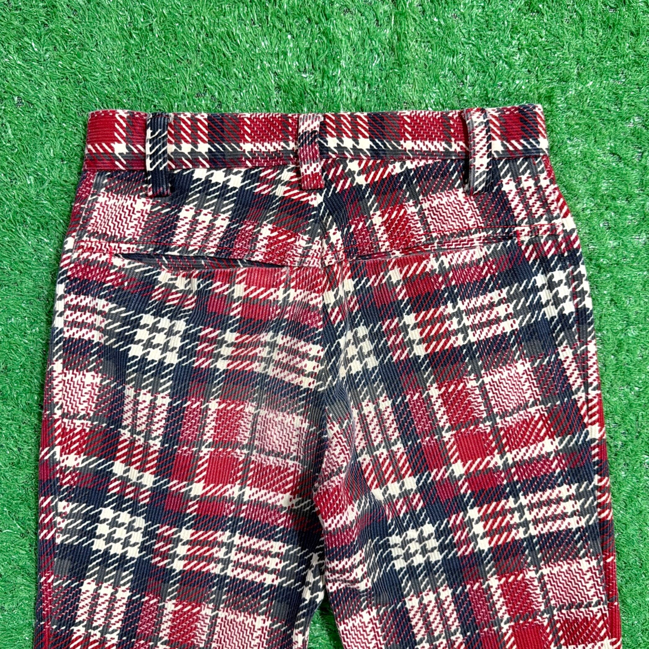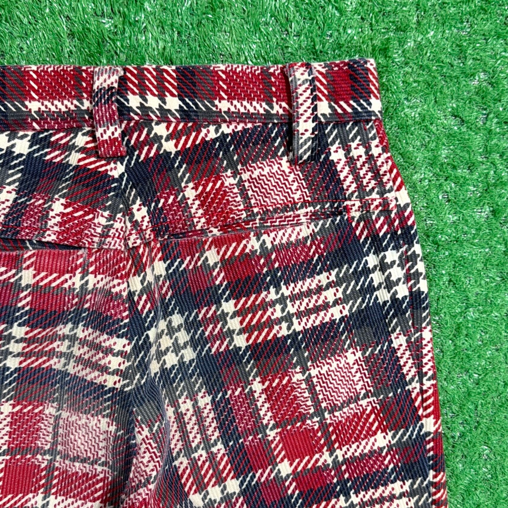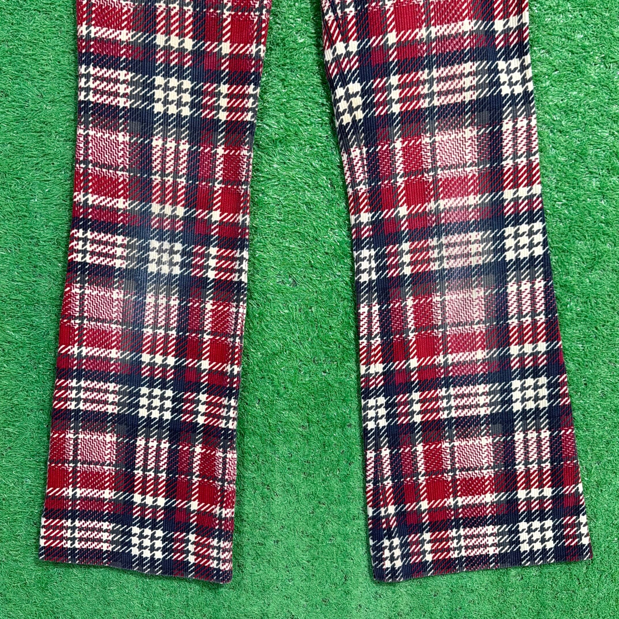 【Lady's】70s チェック 柄 スリム パンツ / 古着 70年代 赤 レッド ヴィンテージ 1503