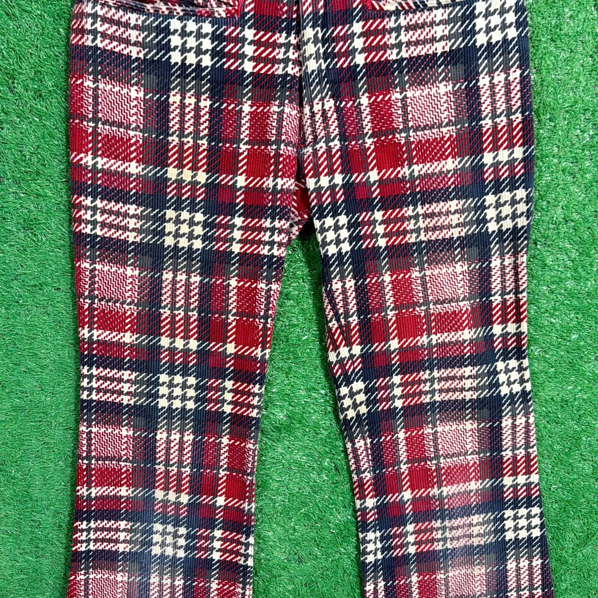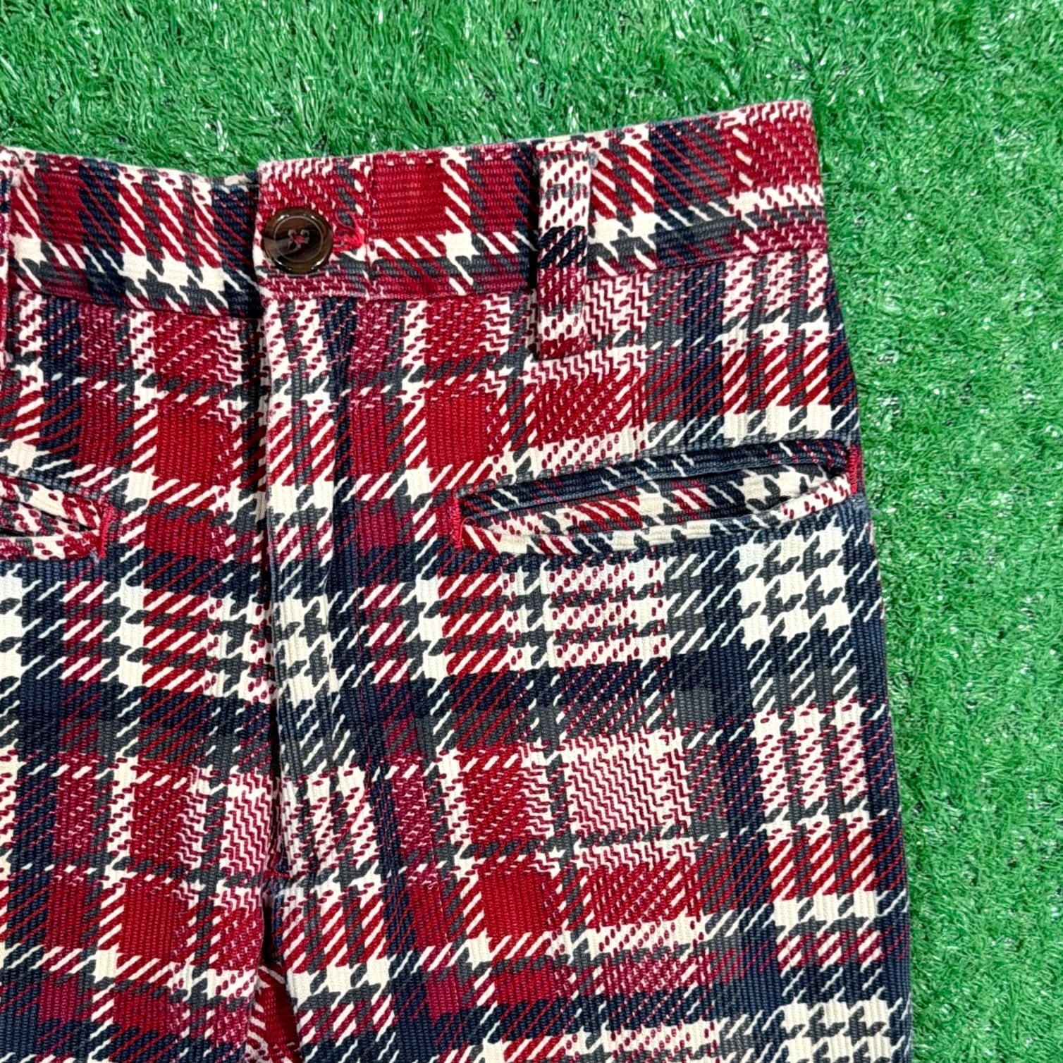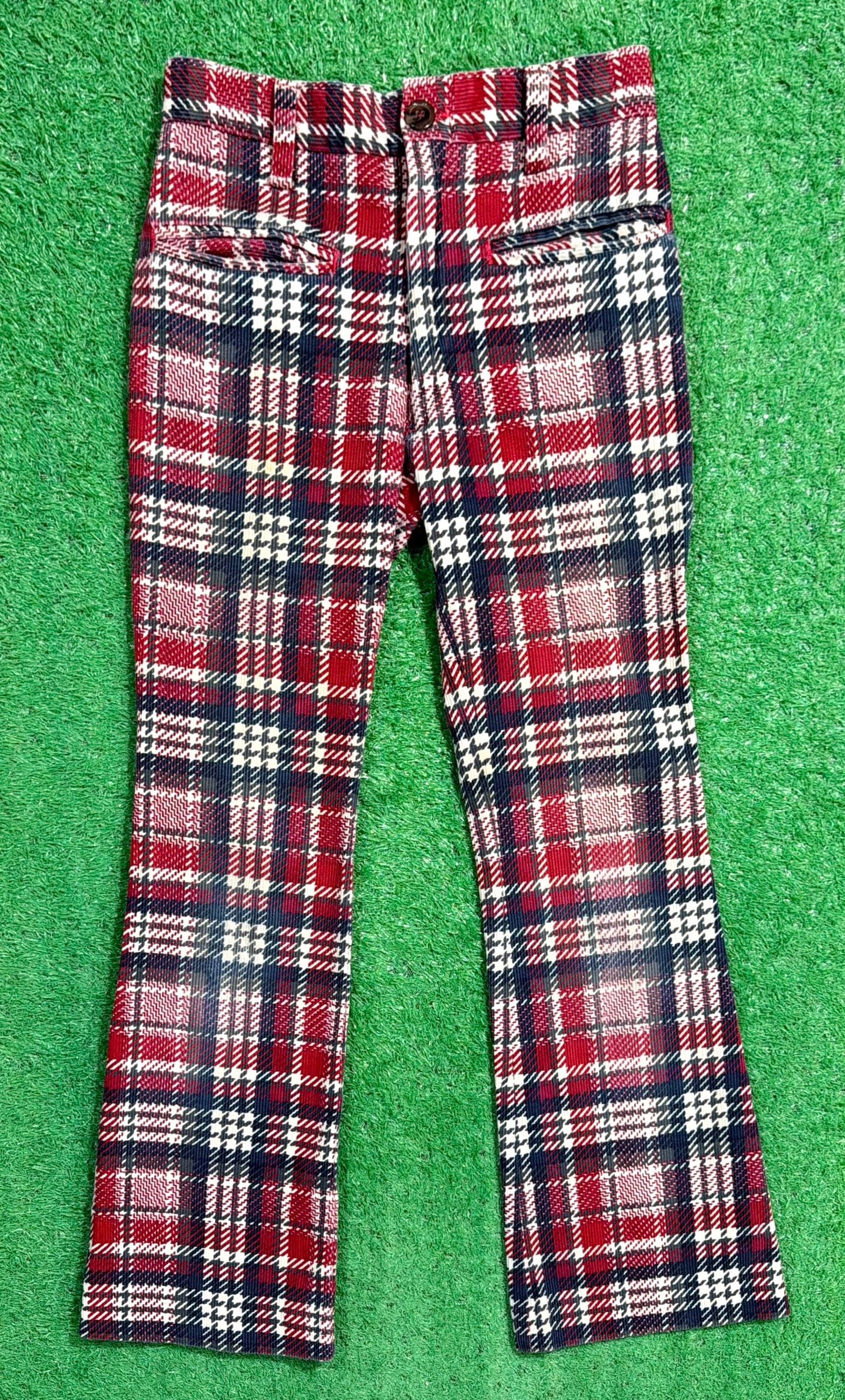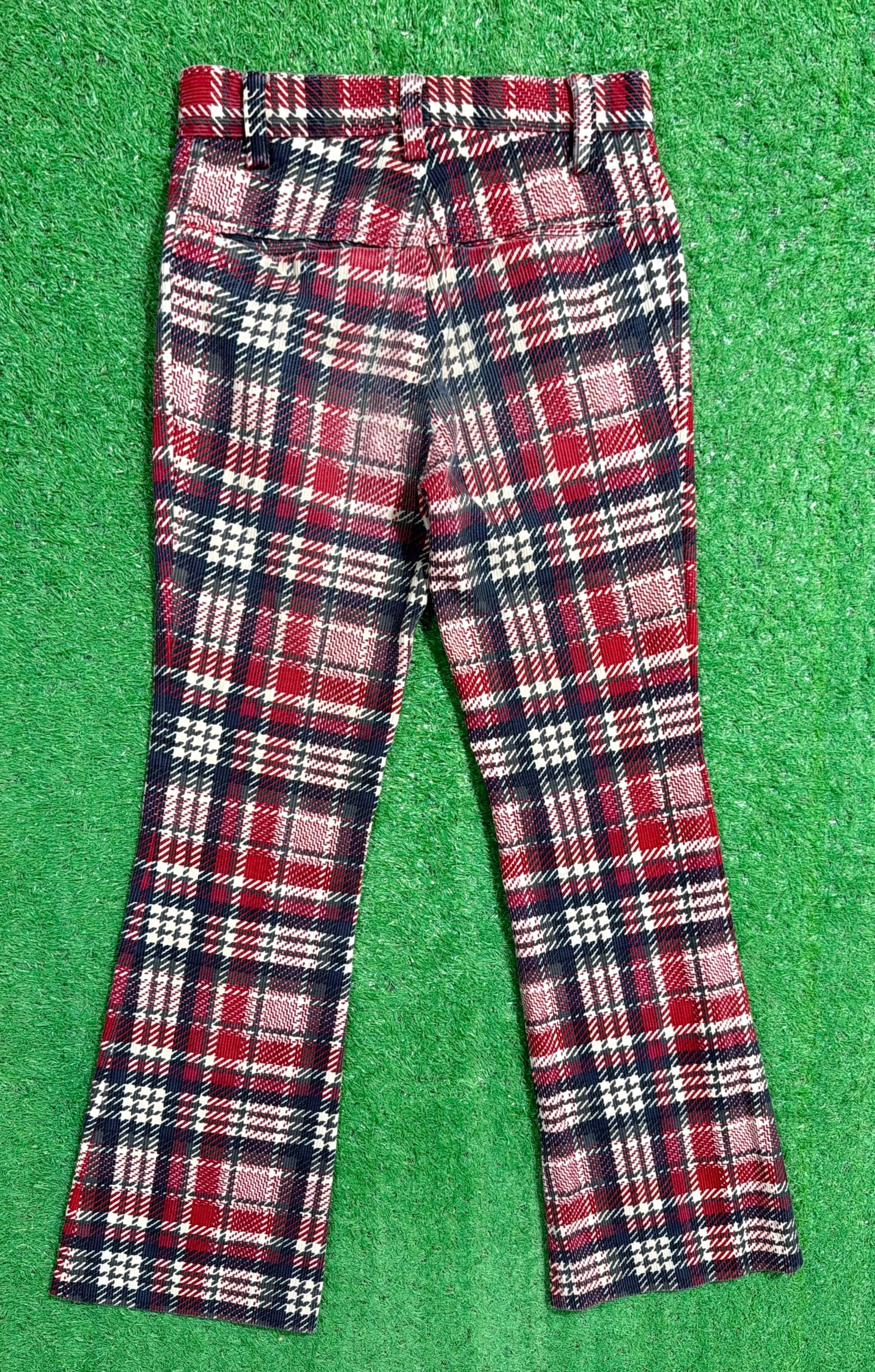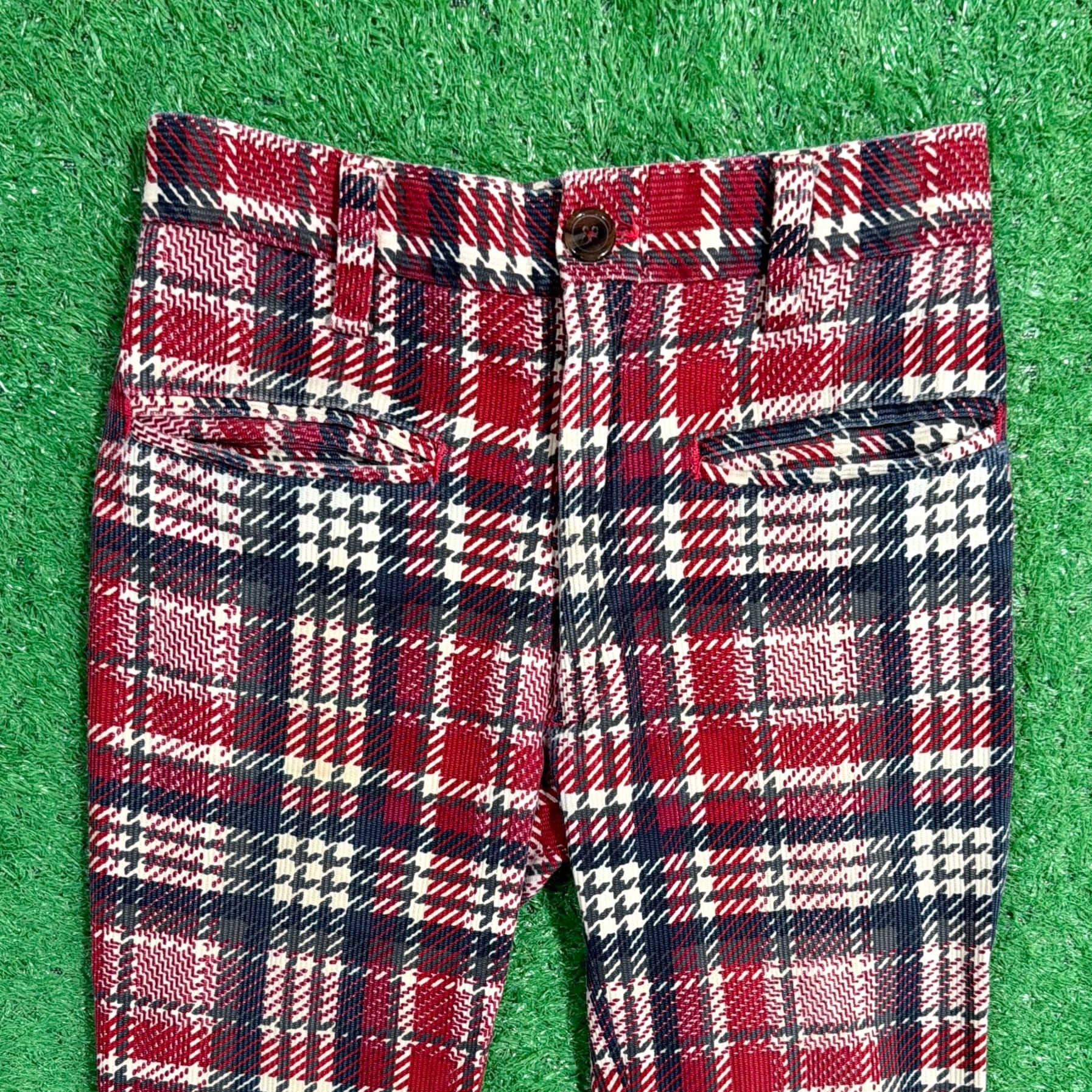 【Lady's】70s チェック 柄 スリム パンツ / 古着 70年代 赤 レッド ヴィンテージ 1503