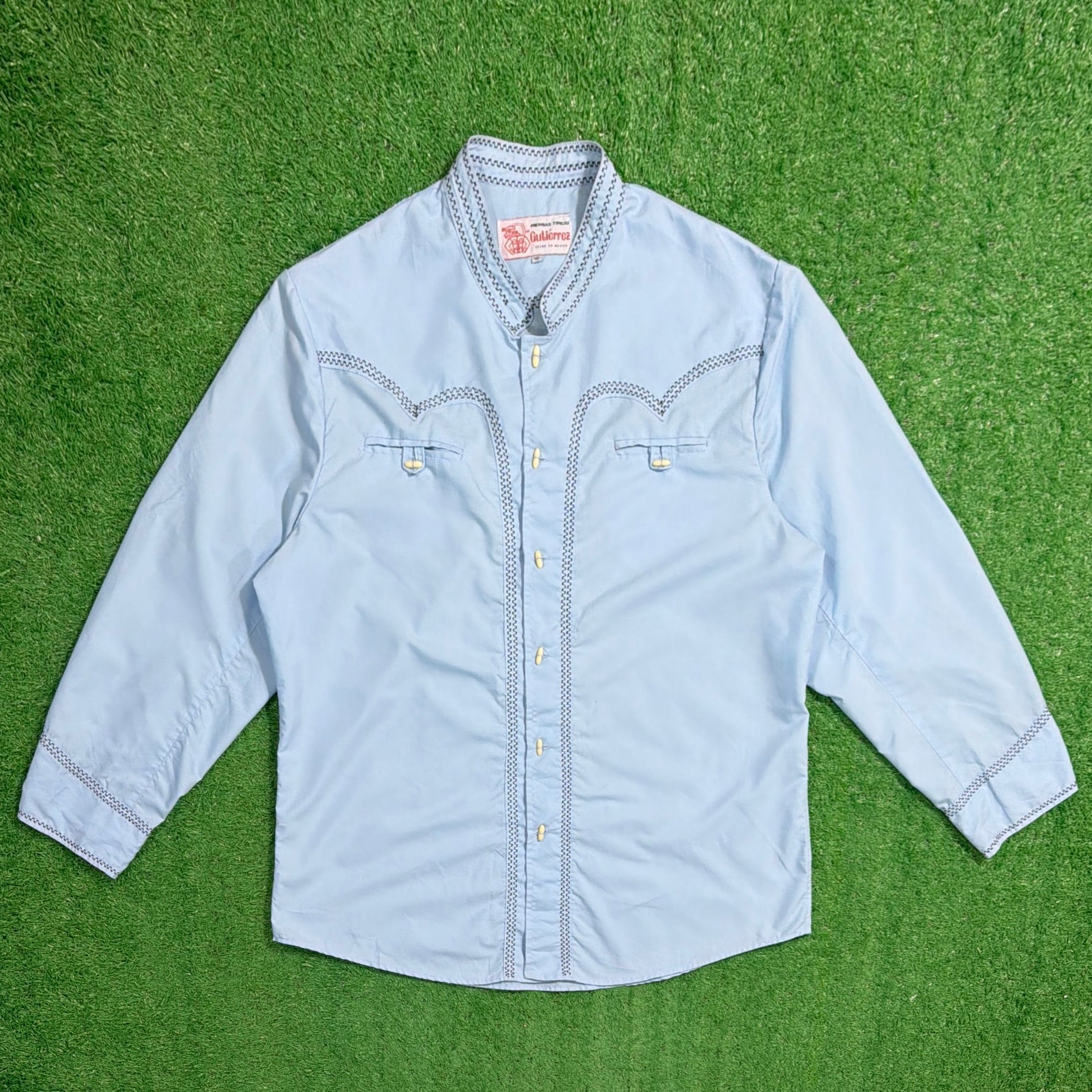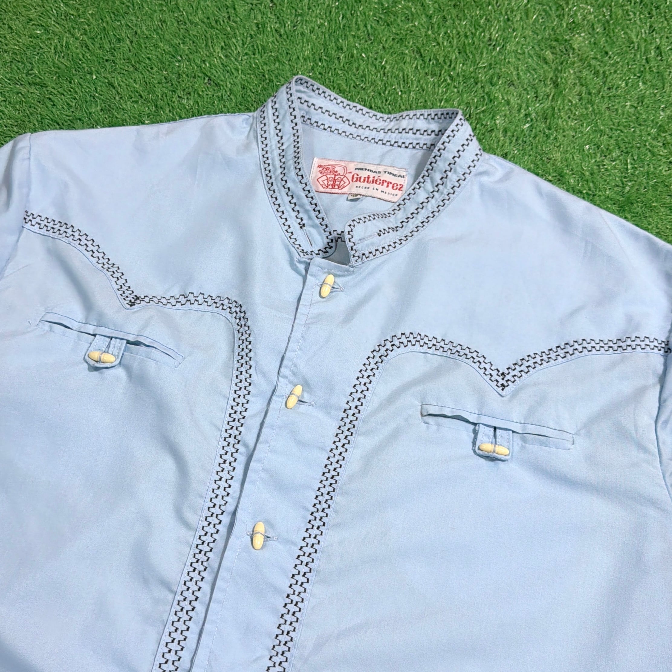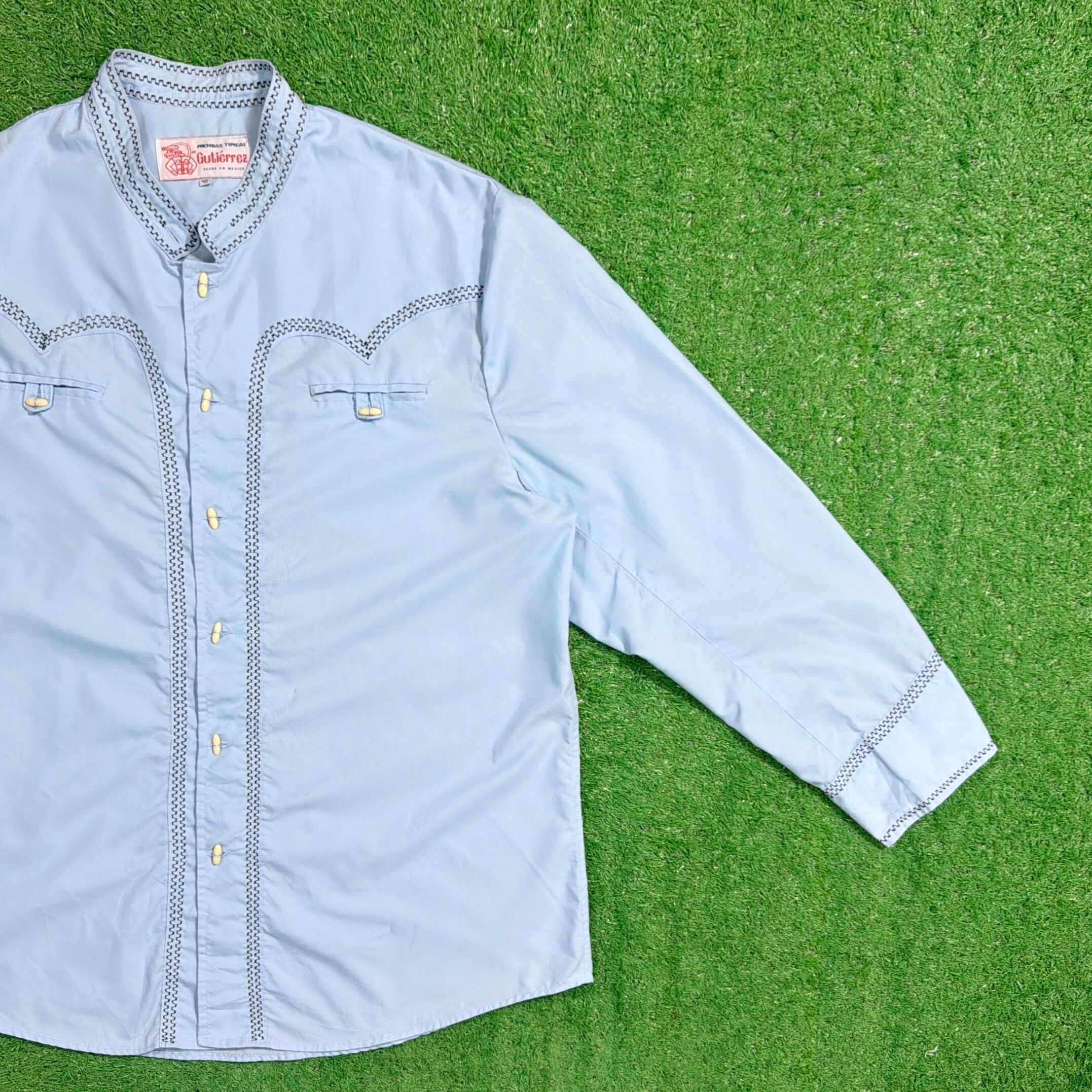 【Men's】 80s メキシカン デザイン スタンドカラー シャツ / 80年代 ノーカラー シャツ 古着 メンズ メキシコ 1504