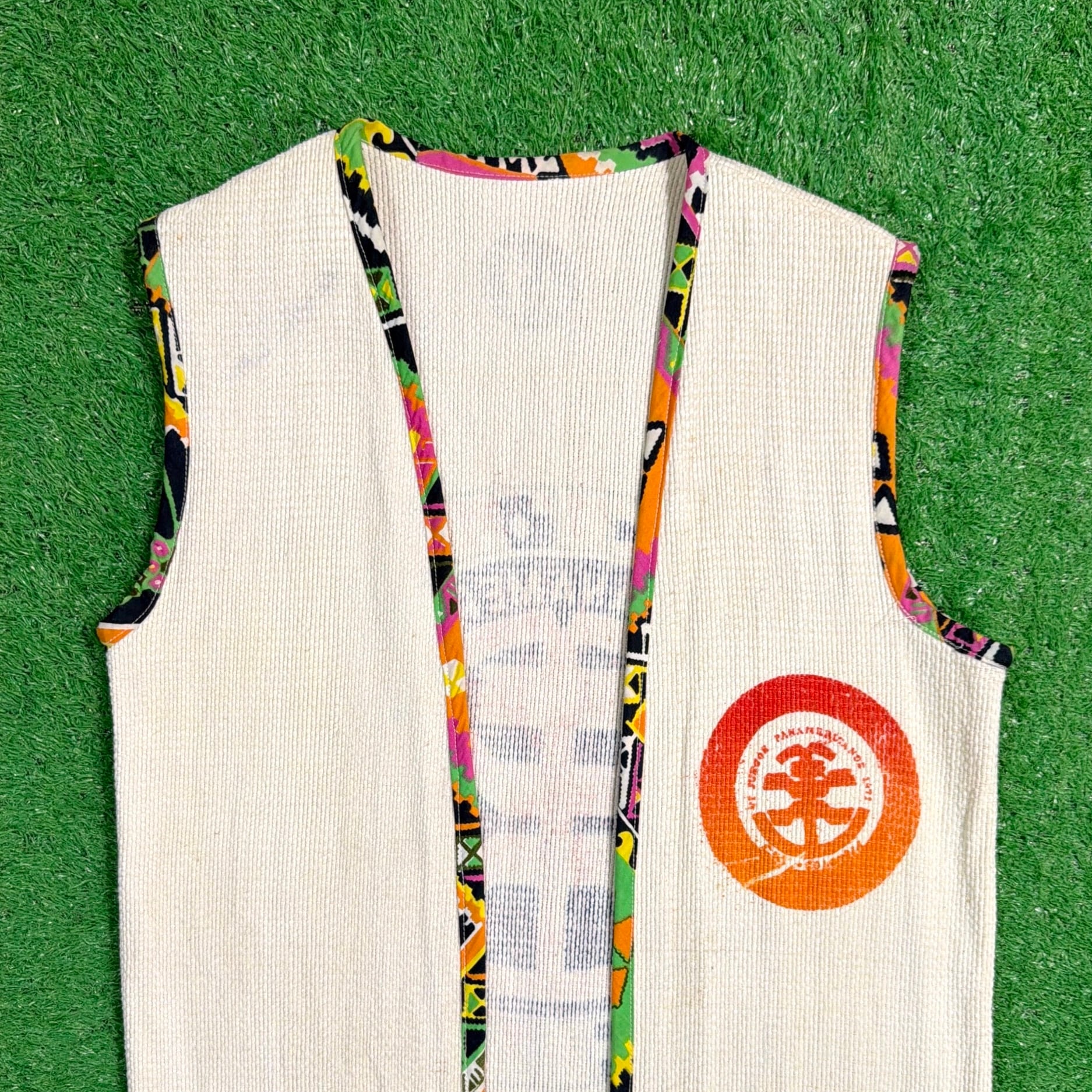 1970年代の生地を使用した、Pan Americanモチーフのリメイクベストです。