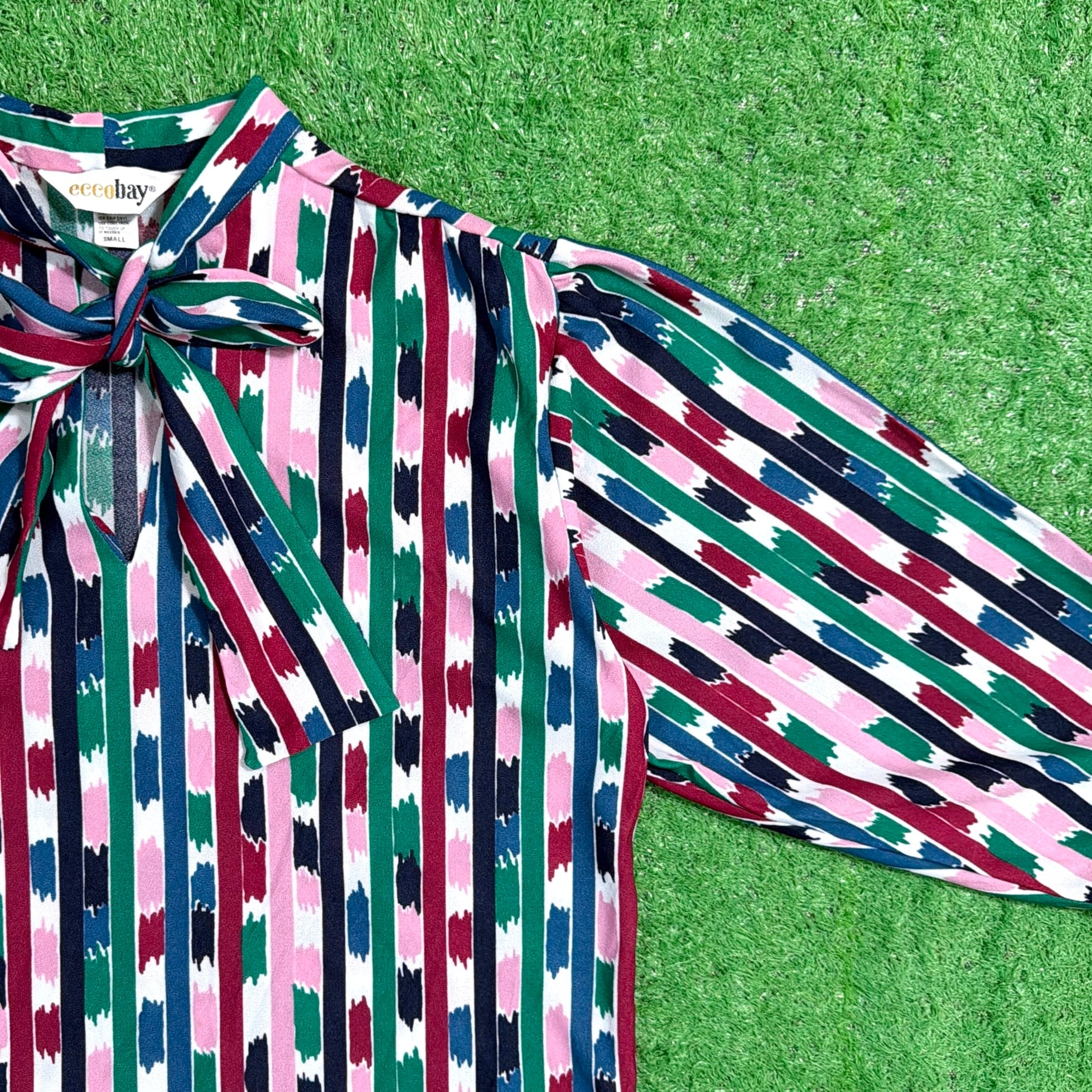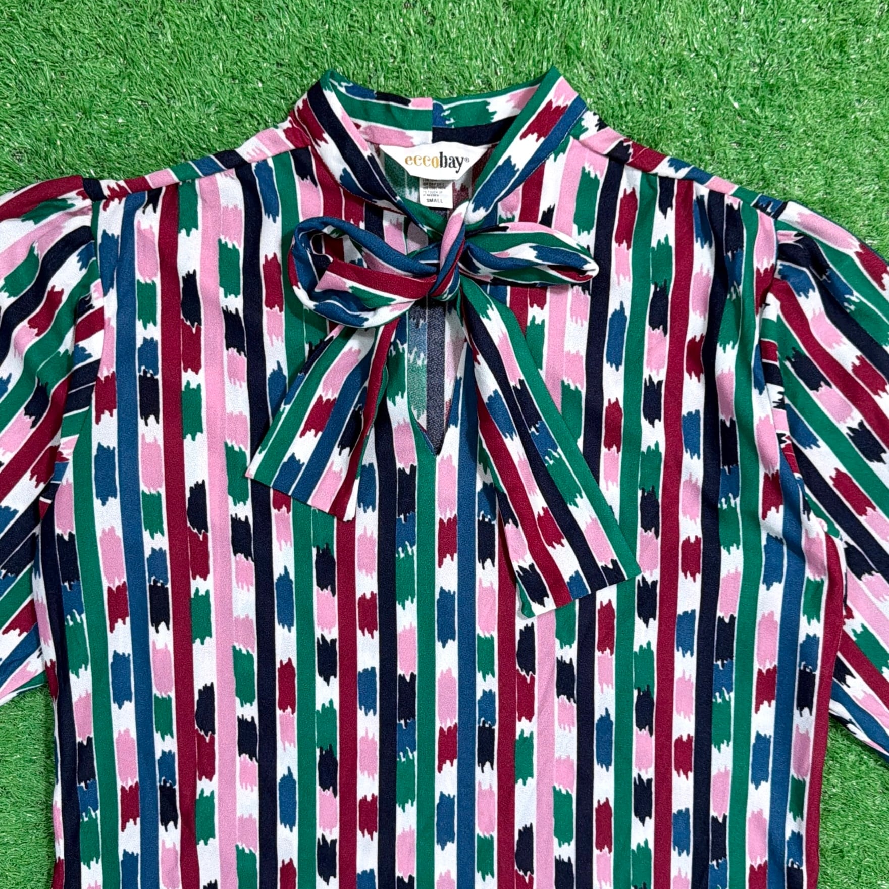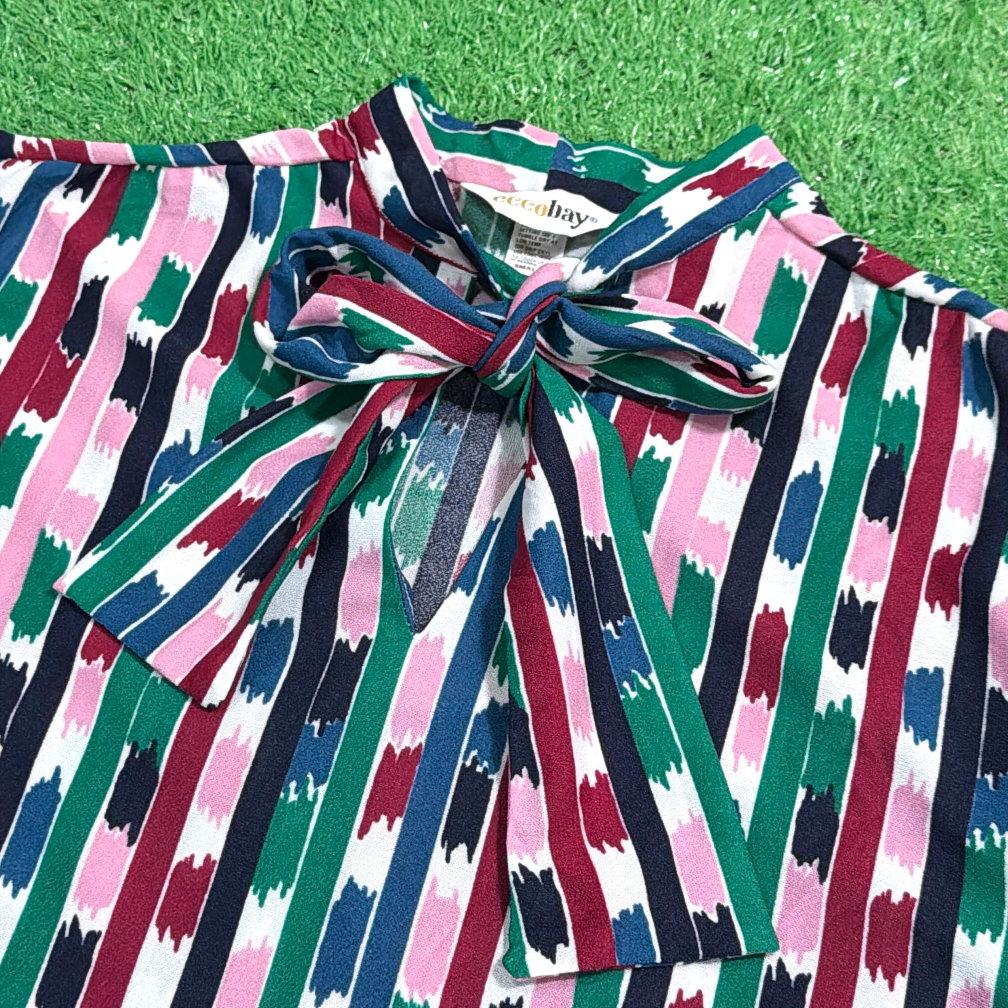 1990年代製、アートストライプ柄のボウタイトップスです。