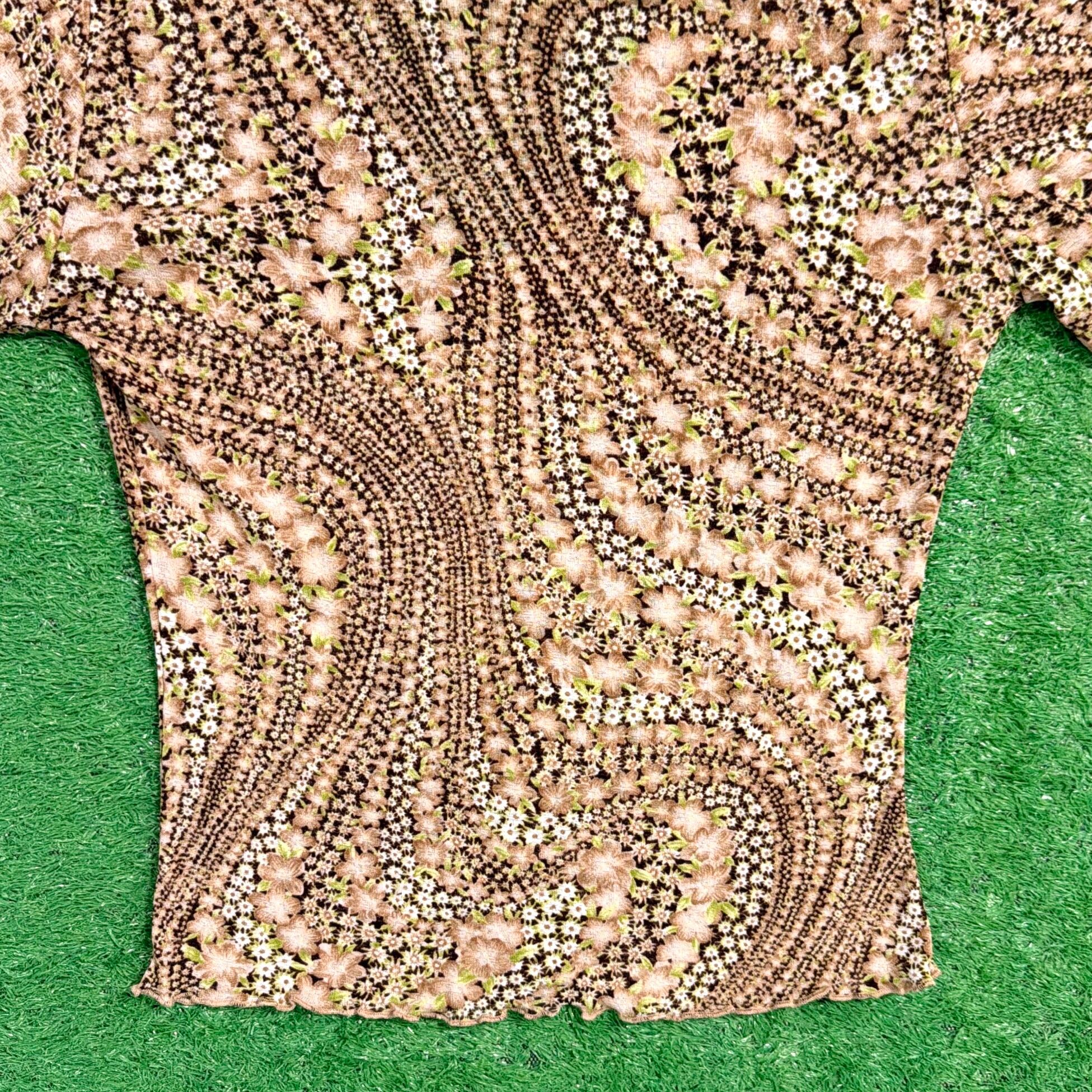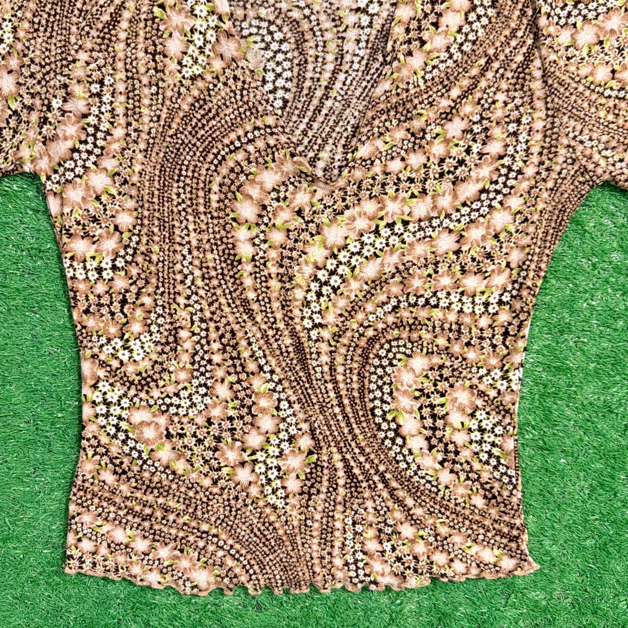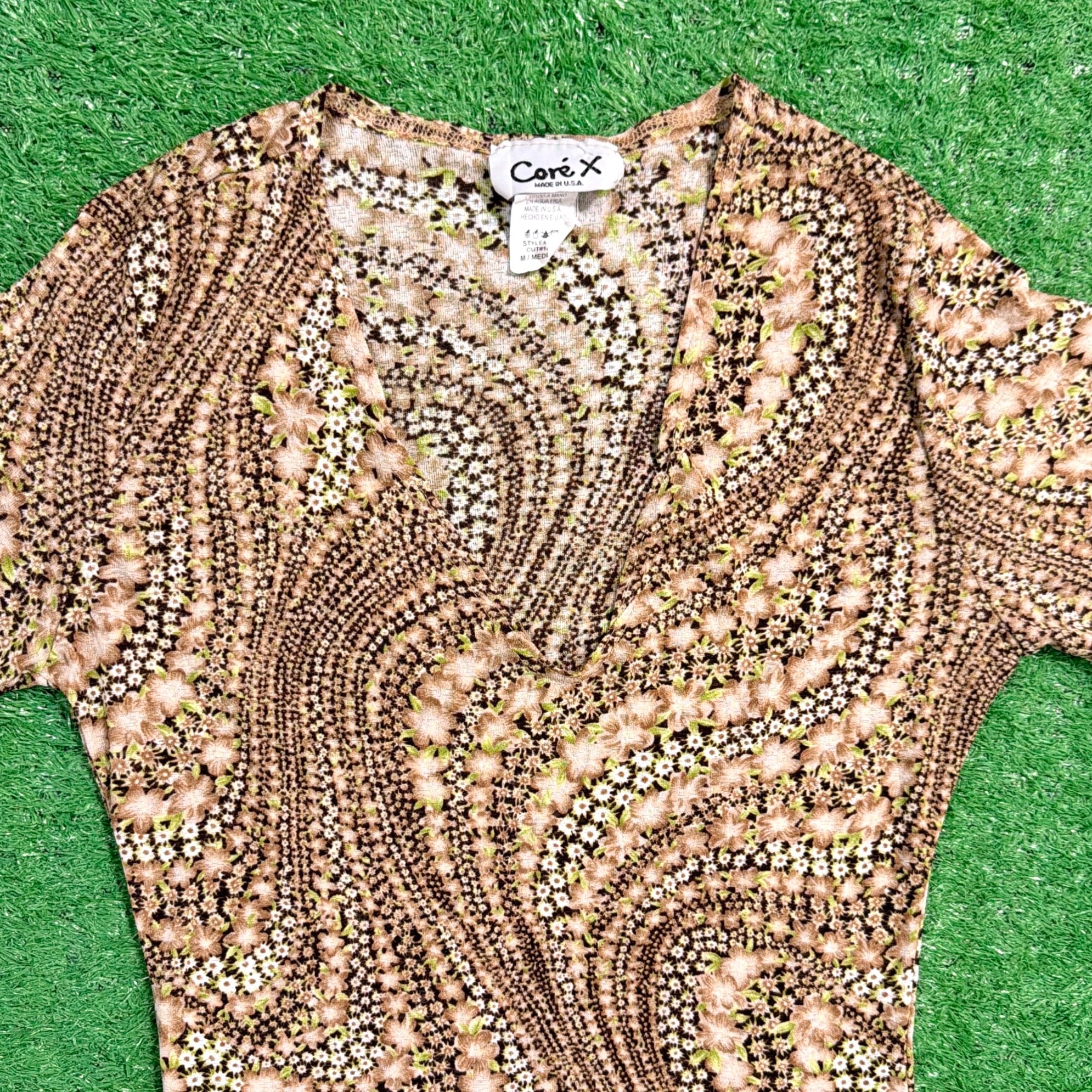 【Lady's】 90s アート柄 Vネック フレアスリーブ トップス / アメリカ製 USA製 古着 レディース カットソー 1515