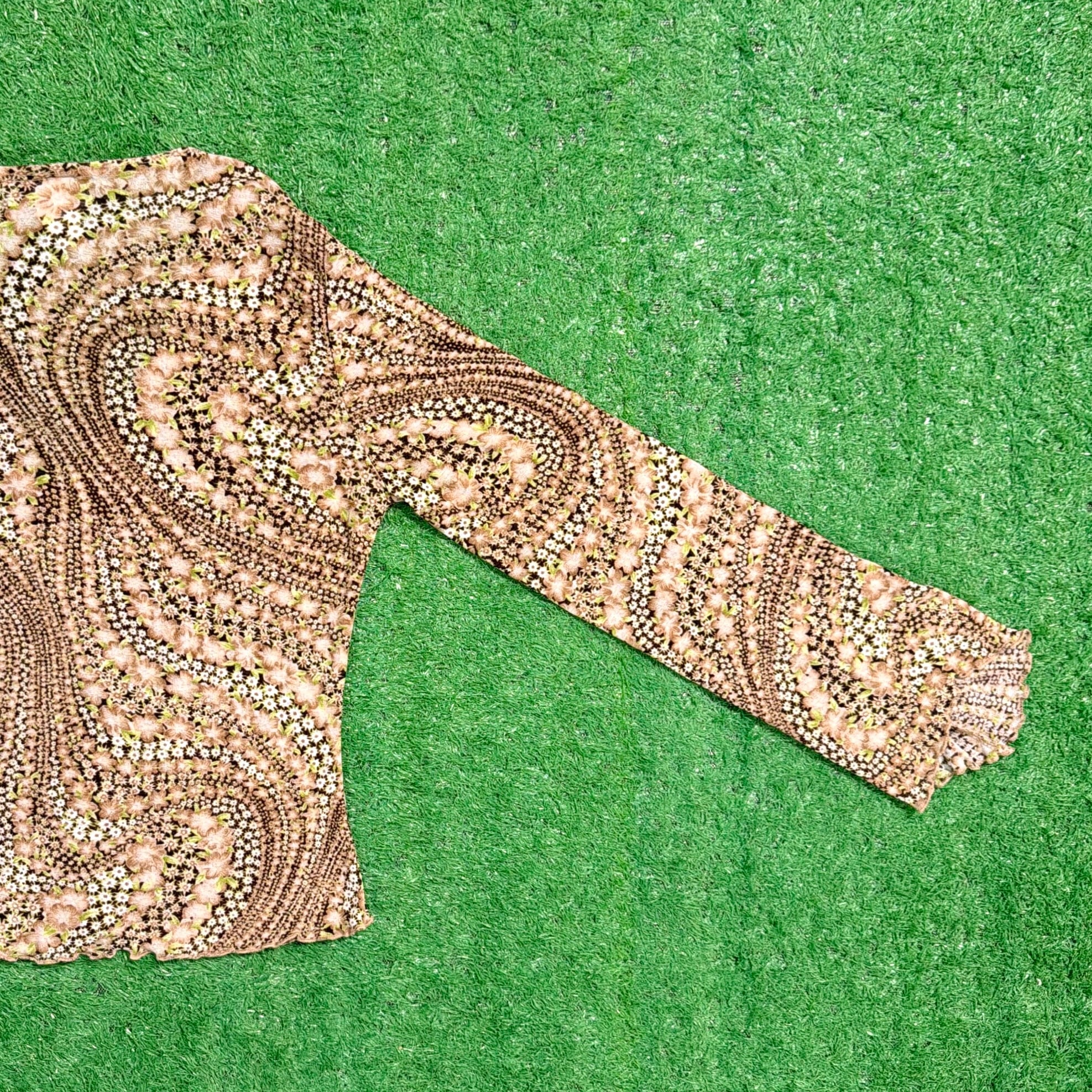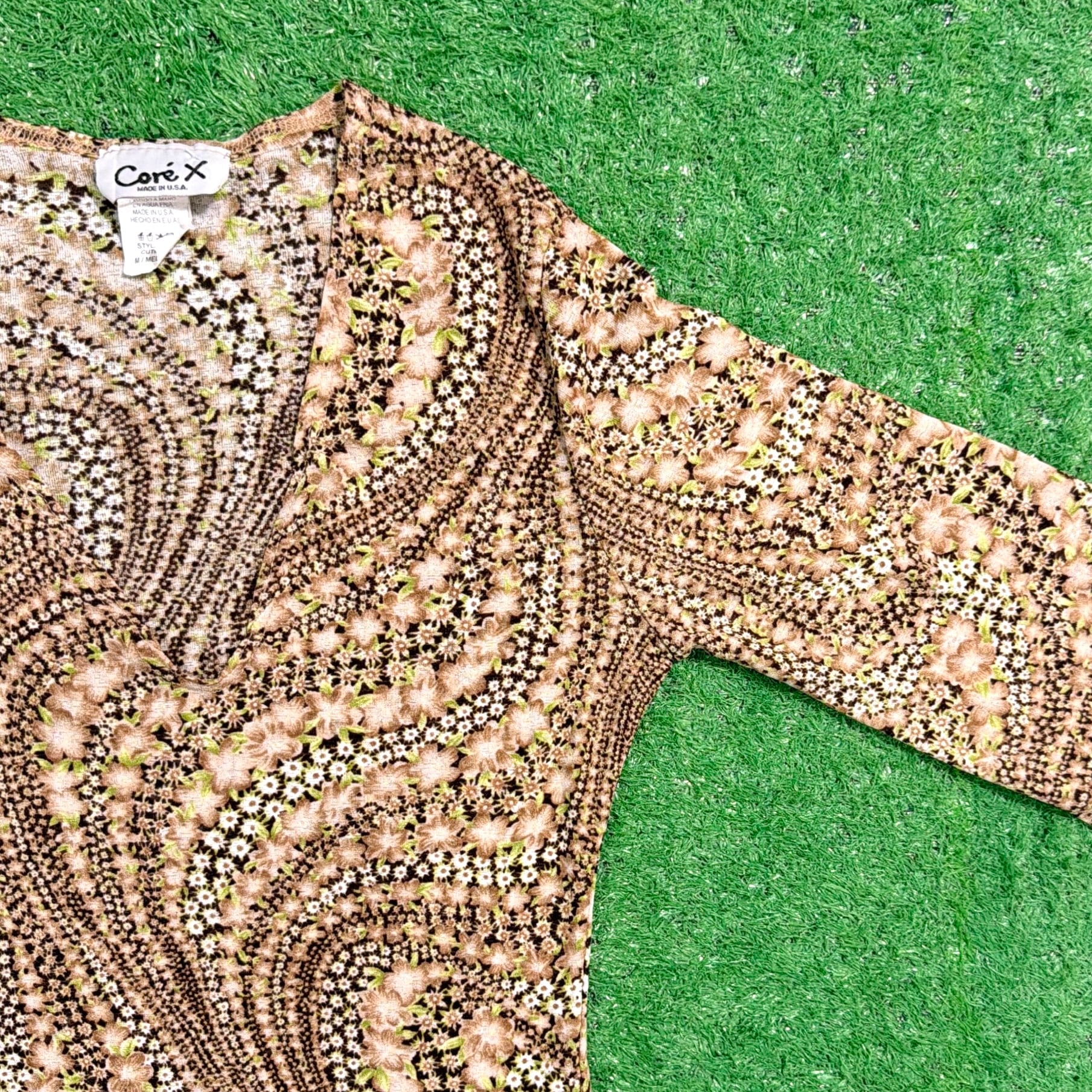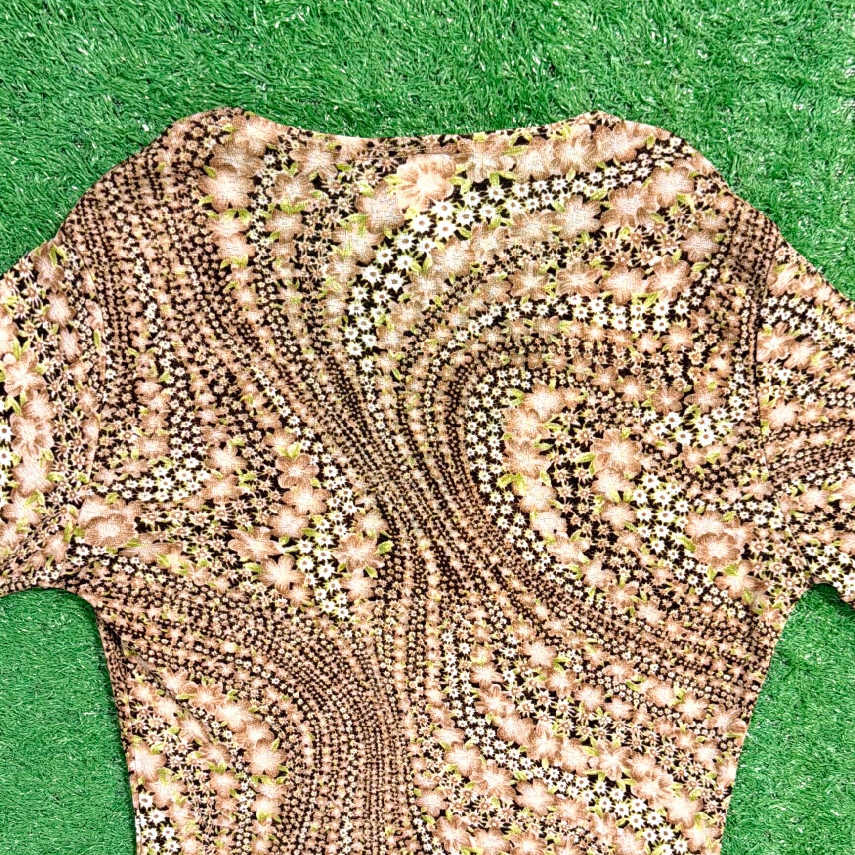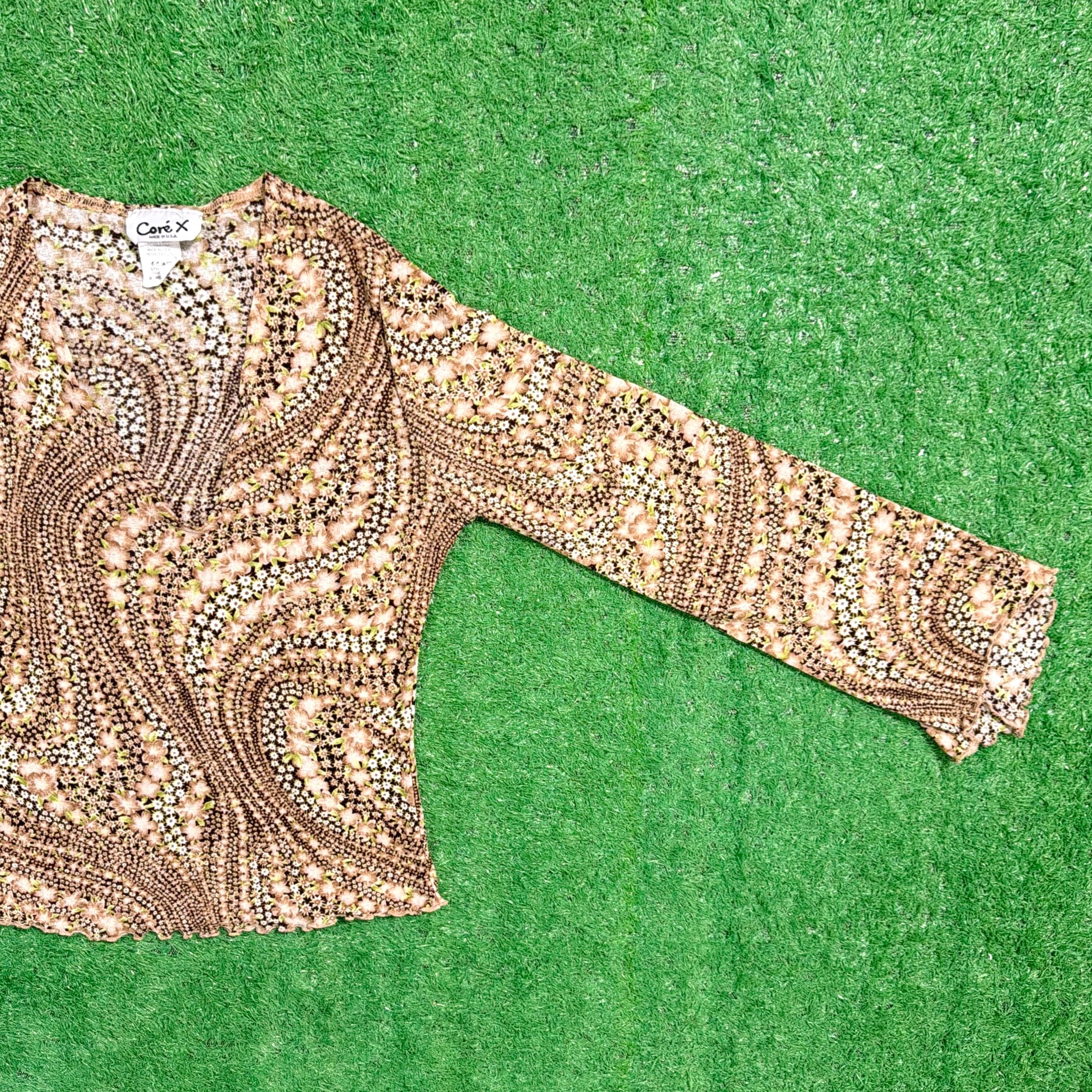 【Lady's】 90s アート柄 Vネック フレアスリーブ トップス / アメリカ製 USA製 古着 レディース カットソー 1515