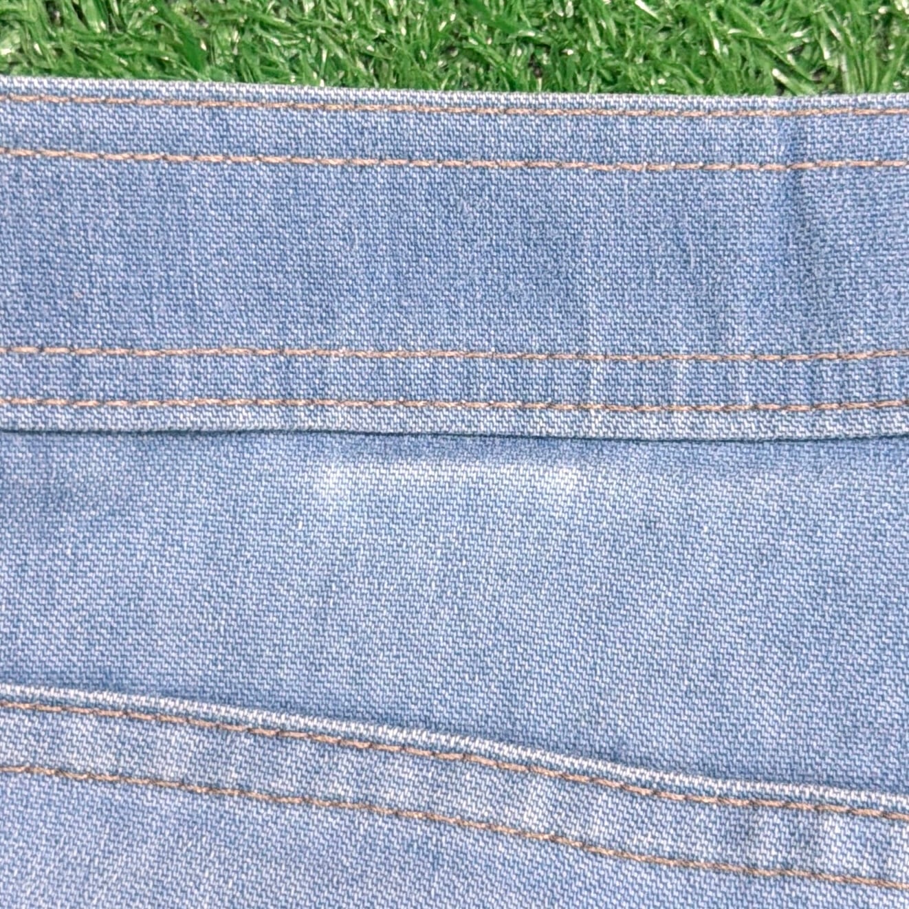 ポリエステル×コットンの混紡素材で、見た目はデニムながら、スラックスのような軽さとさらっとした穿き心地が特徴の一本。通常のジーンズよりもゴワつきが少なく、落ち感のあるきれいなシルエットを楽しめます。