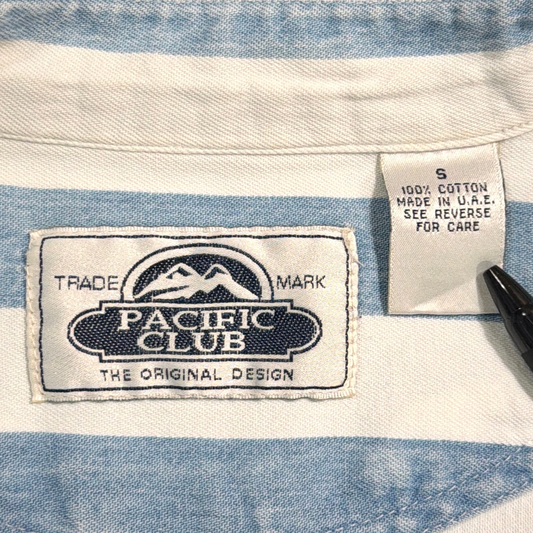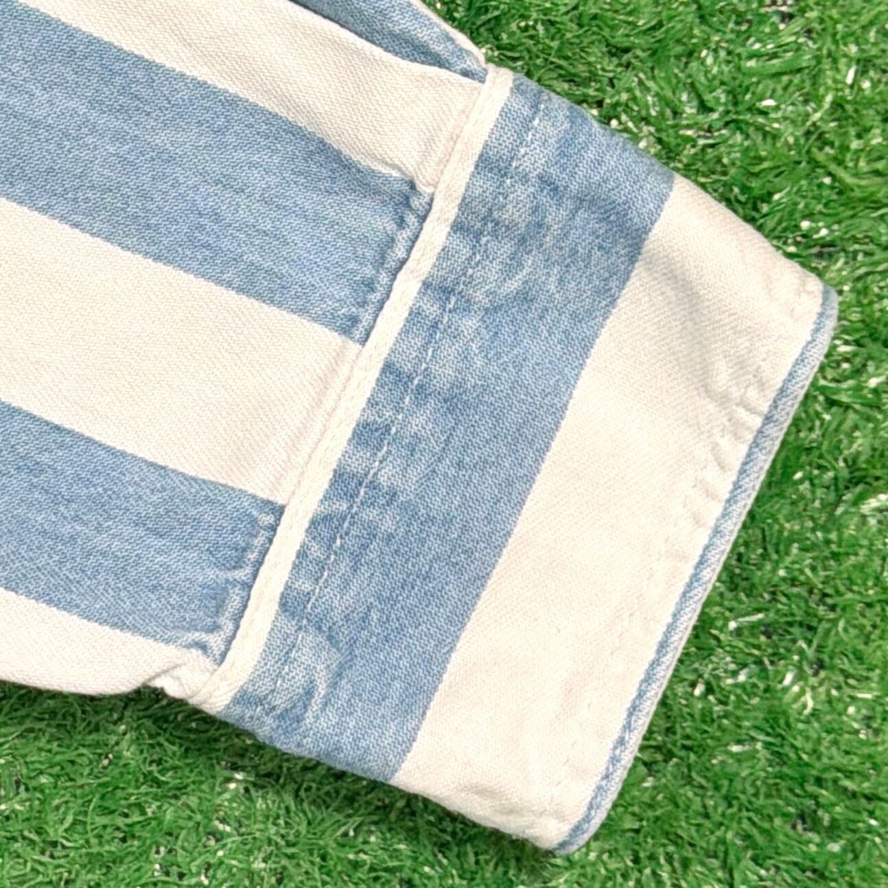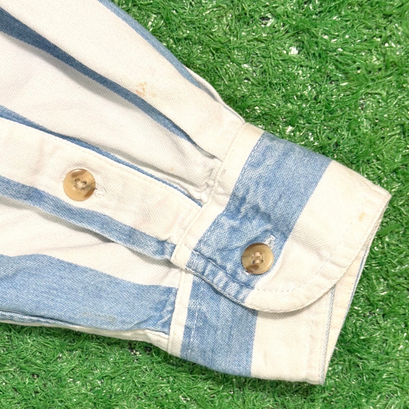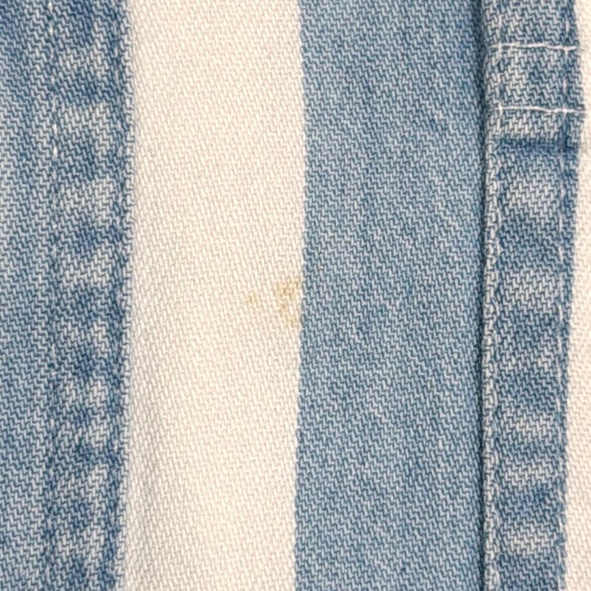爽やかなストライプ柄に、襟のないすっきりとした首元が特徴的で、90sらしい程よく力の抜けた雰囲気の一着。シンプルながらも作りの良さが感じられます。