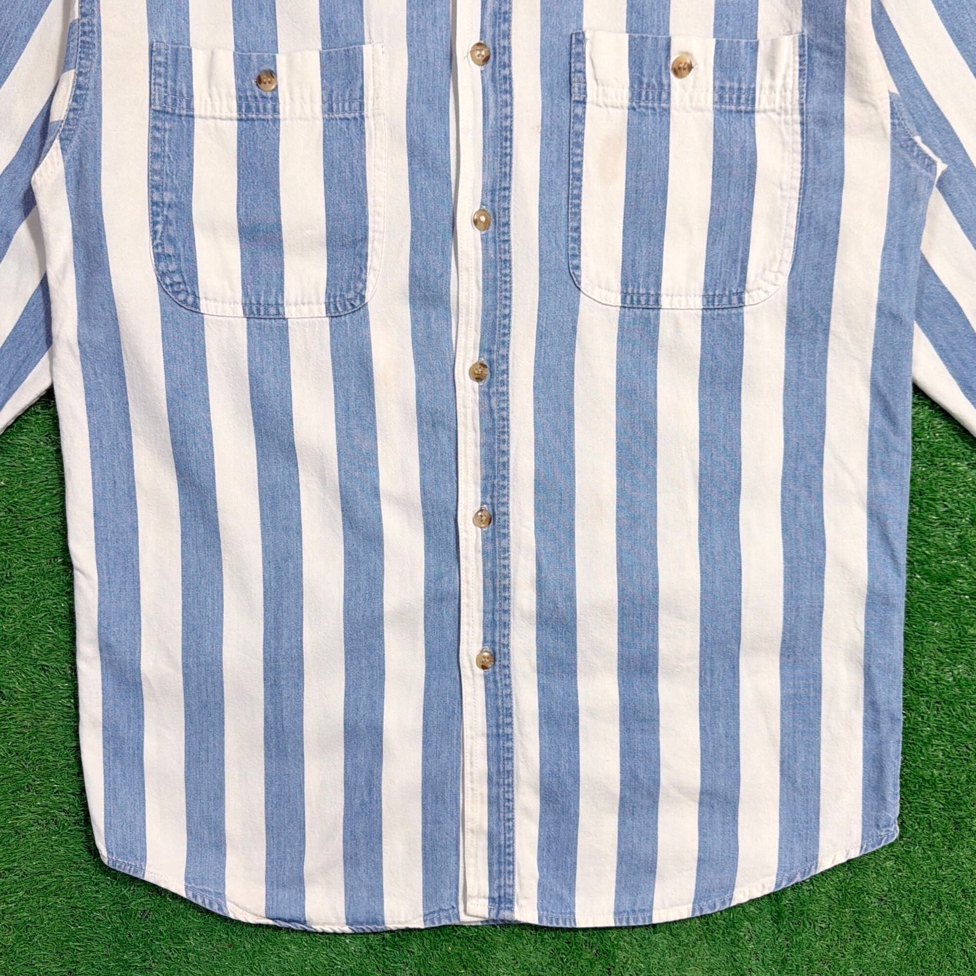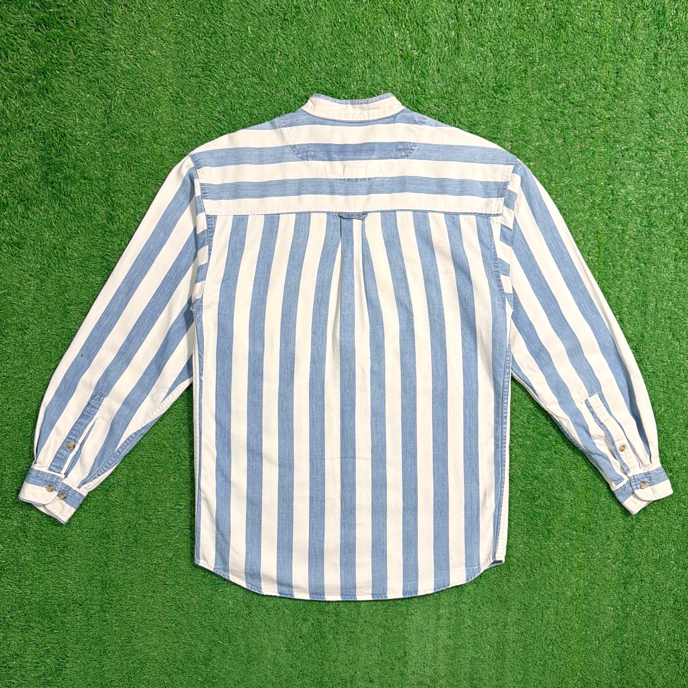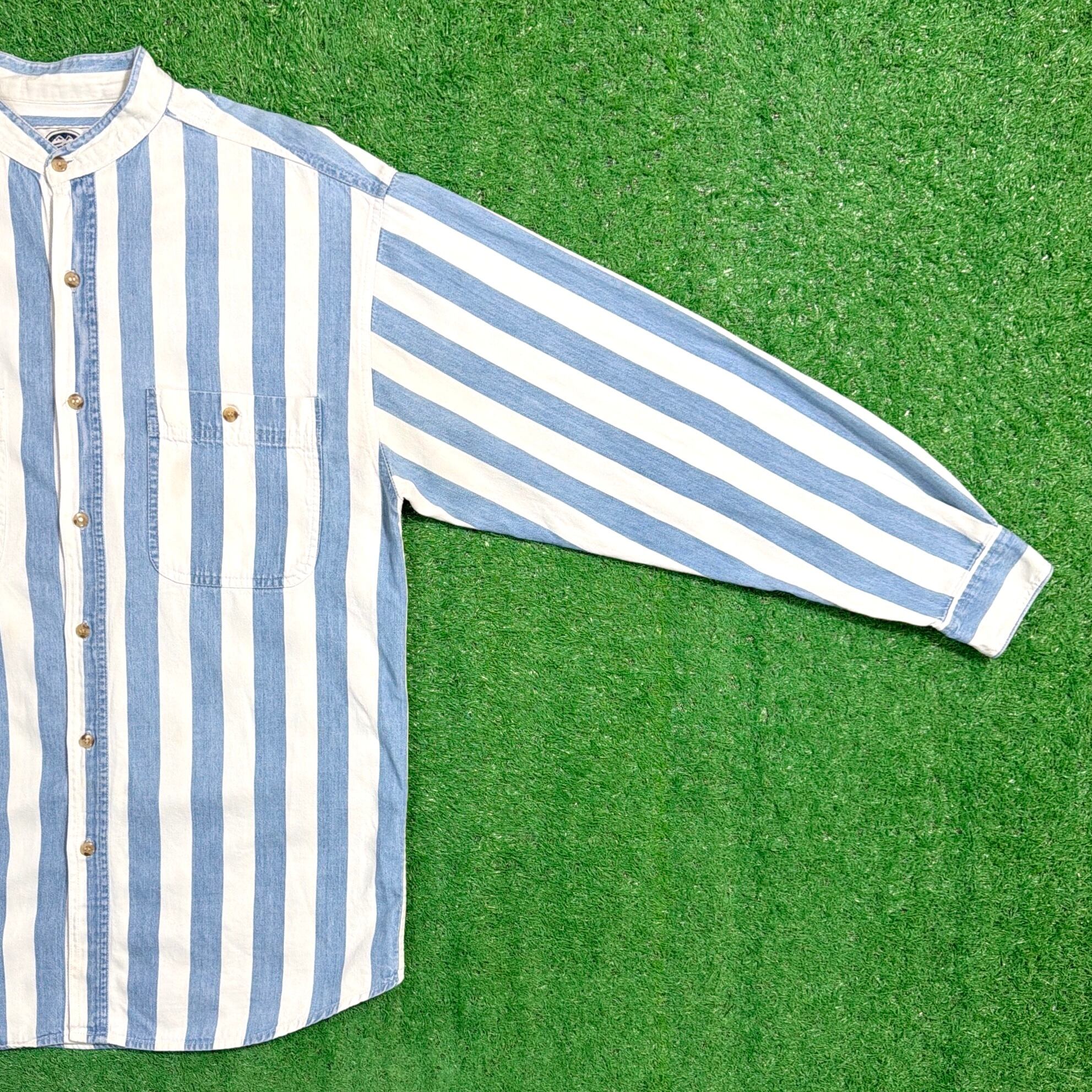 1990年代のアメリカ製、ノーカラーデザインのストライプシャツです。