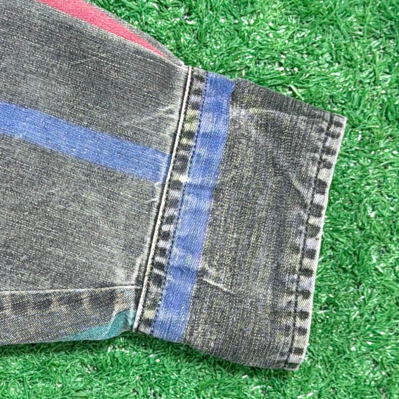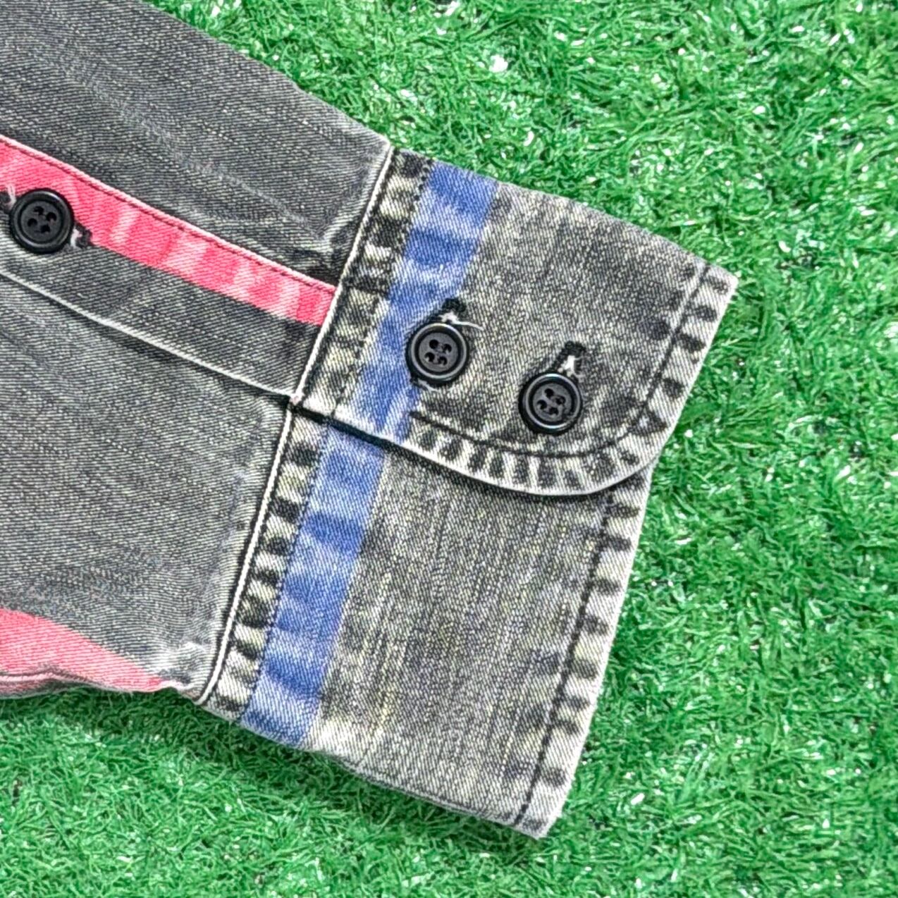 ブラックをベースに、縦に走る配色ストライプが印象的な一枚。ワークやウエスタンのイメージが強いWranglerらしく、しっかりとしたコットン素材で、少しゴワっとしたハリのある質感が特徴です。裏地側に色が出る生地感もラングラーならではで、着込むことでより雰囲気が増していくのも魅力。長めの着丈で90sらしい無骨さと、ストライプの程よいデザイン性がバランス良くまとまっています。