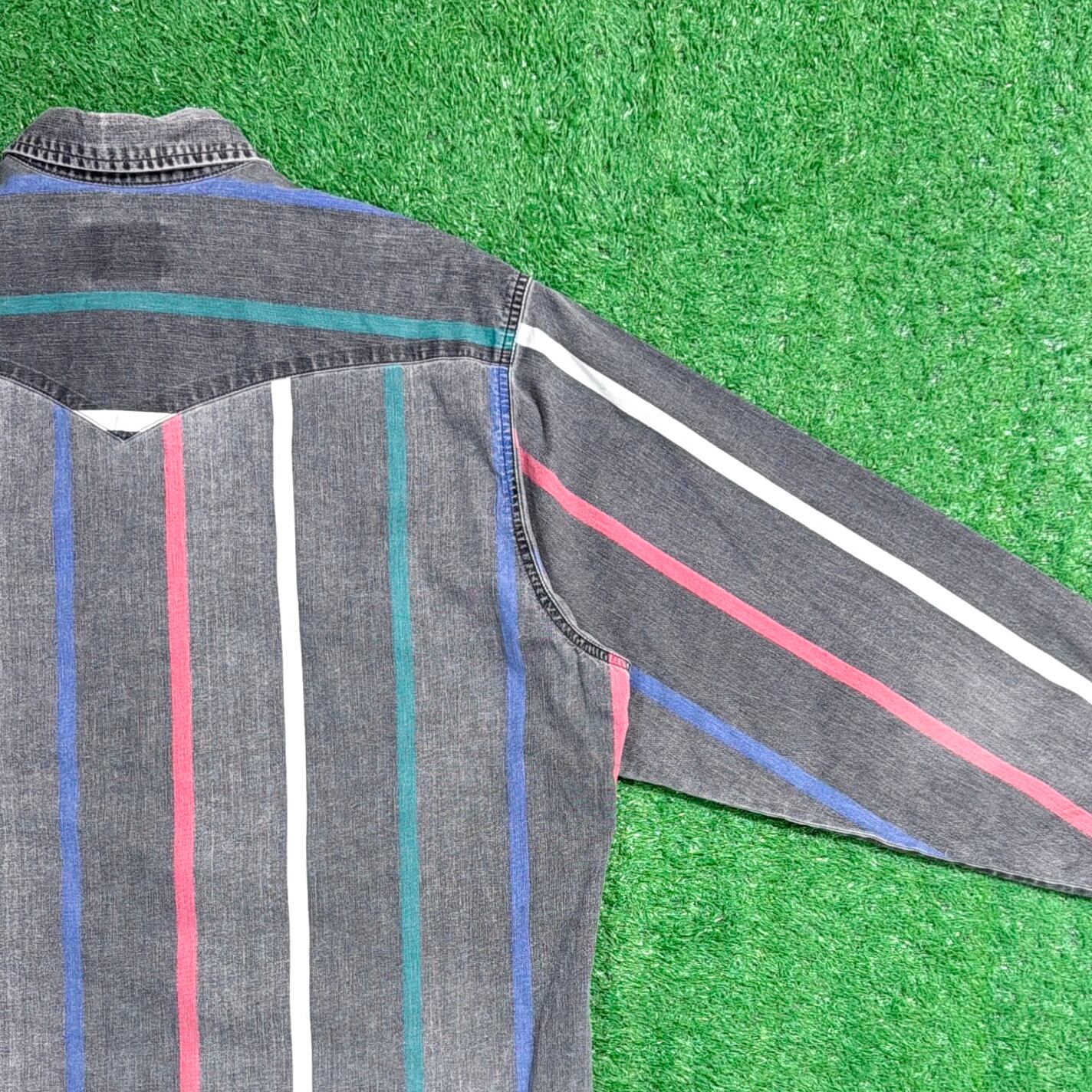 【Men's】 90s Wrangler ストライプシャツ / 90年代 ラングラー 古着 シャツ メンズ ブラック 黒 1525