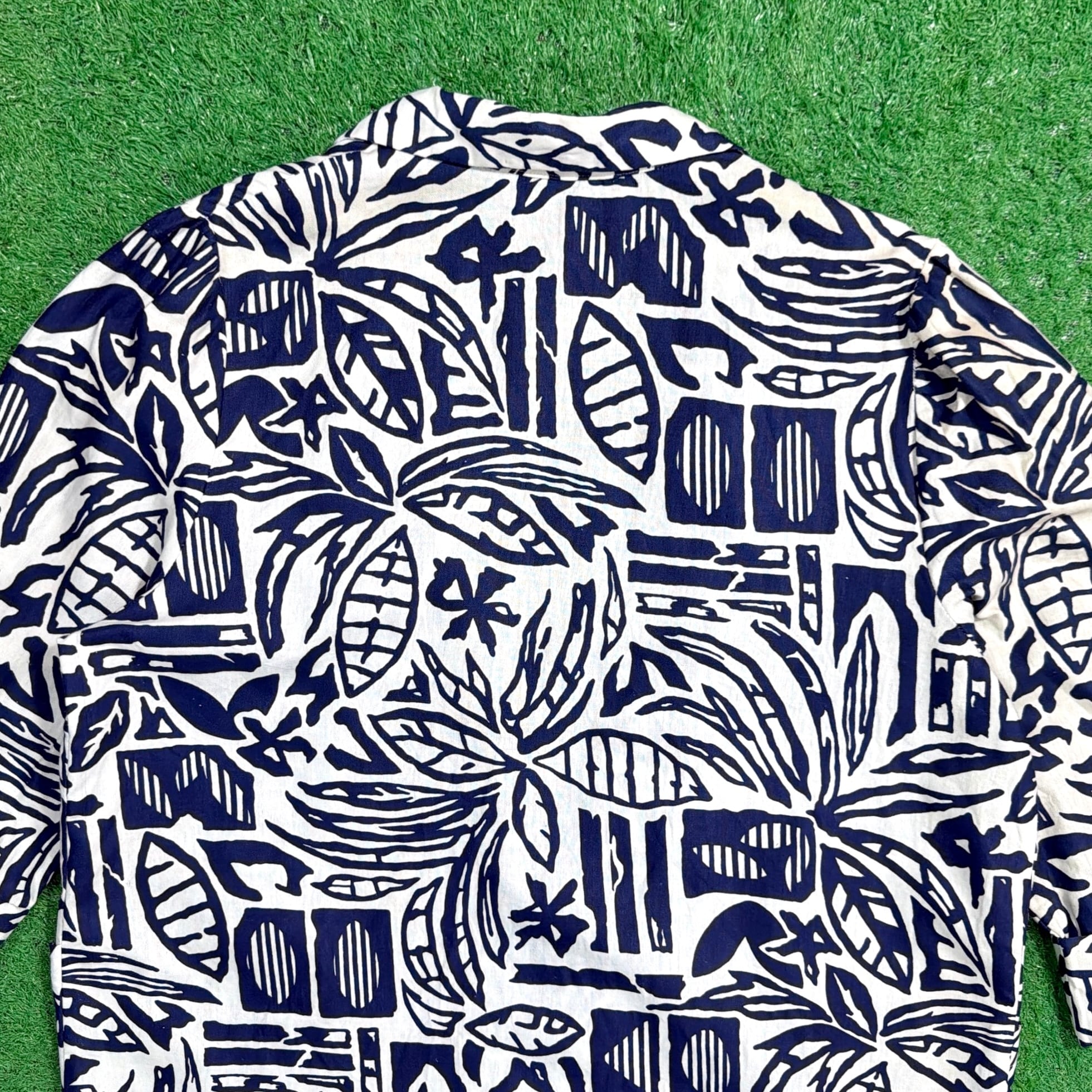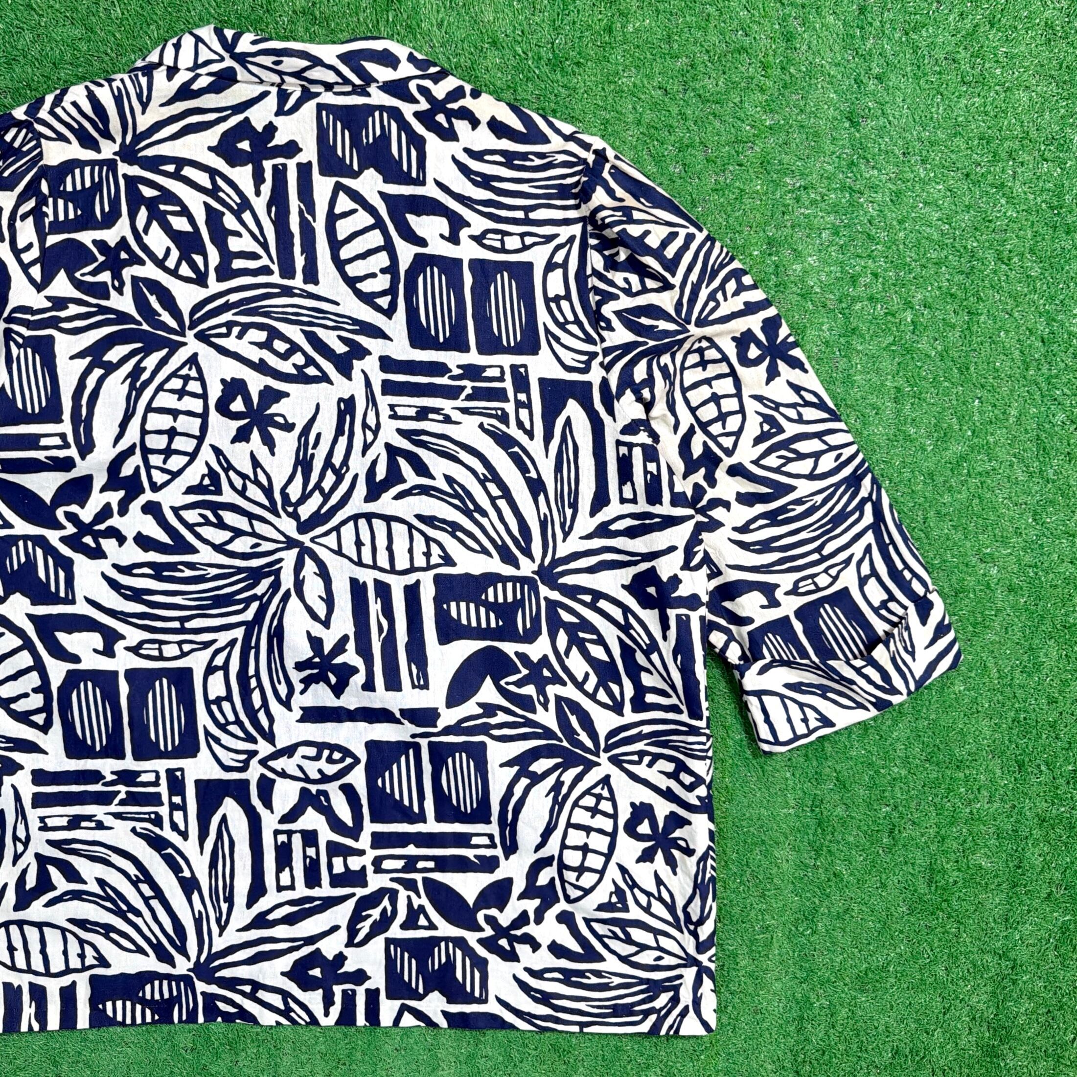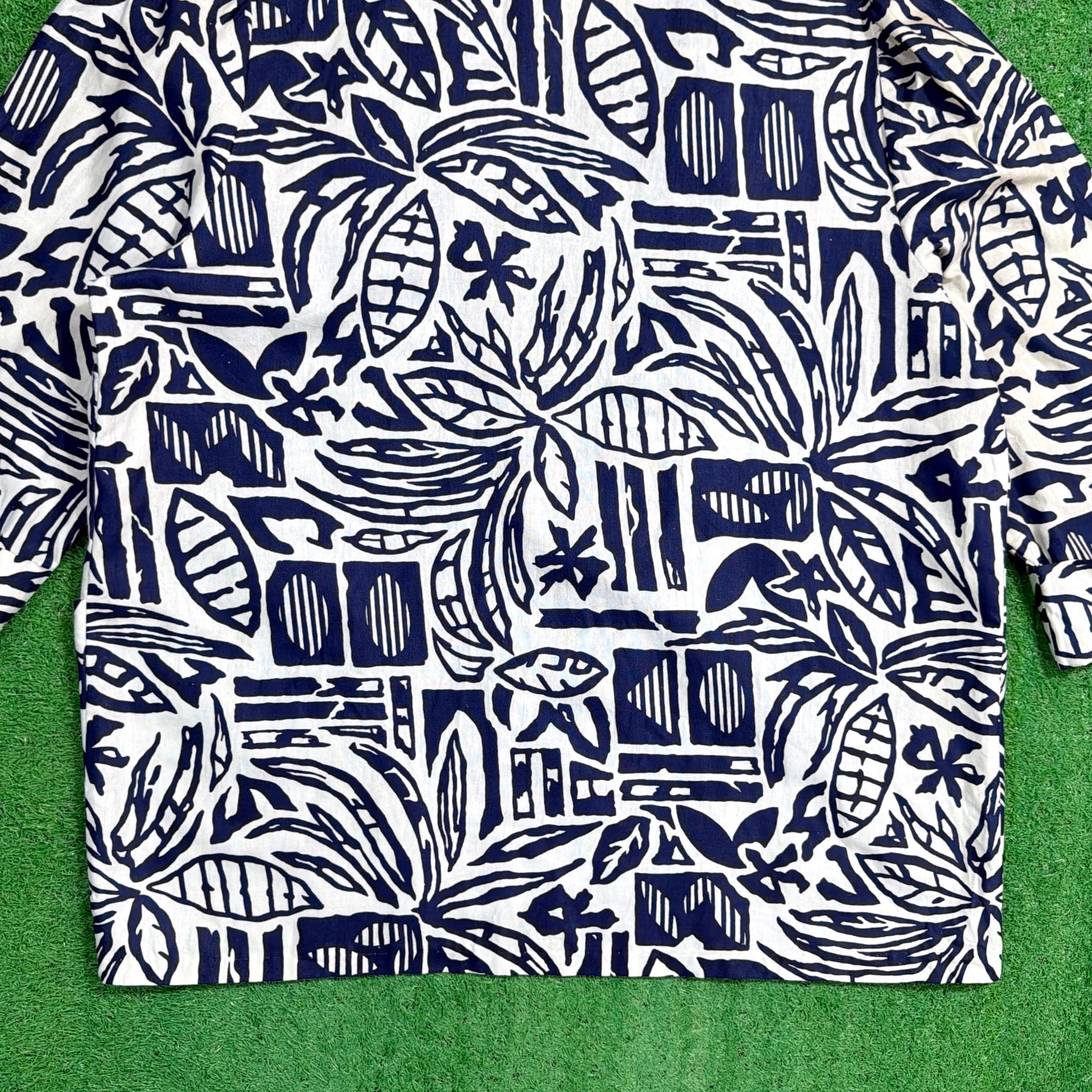 薄手のシャツ素材を使用した軽やかな着心地で、ジャケットというよりもシャツ感覚でさらっと羽織れる一着。ボタニカルモチーフをベースに、少しアート感のある総柄デザインが90sらしい雰囲気を演出してくれます。