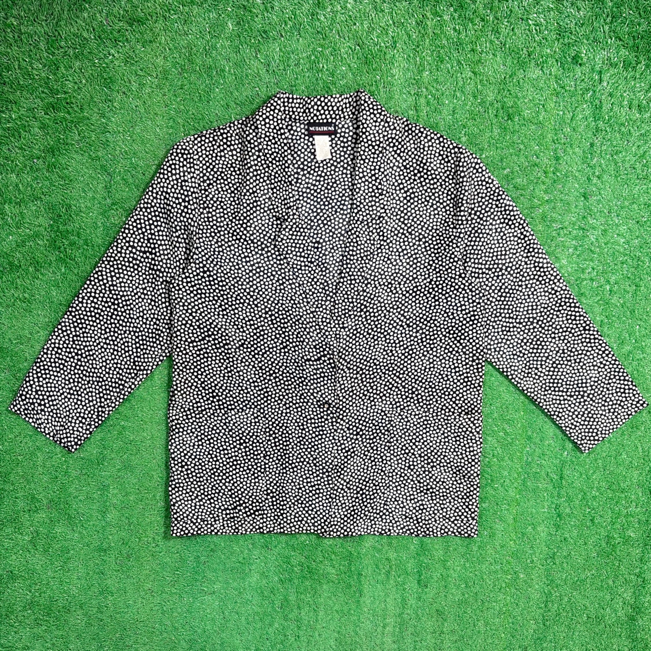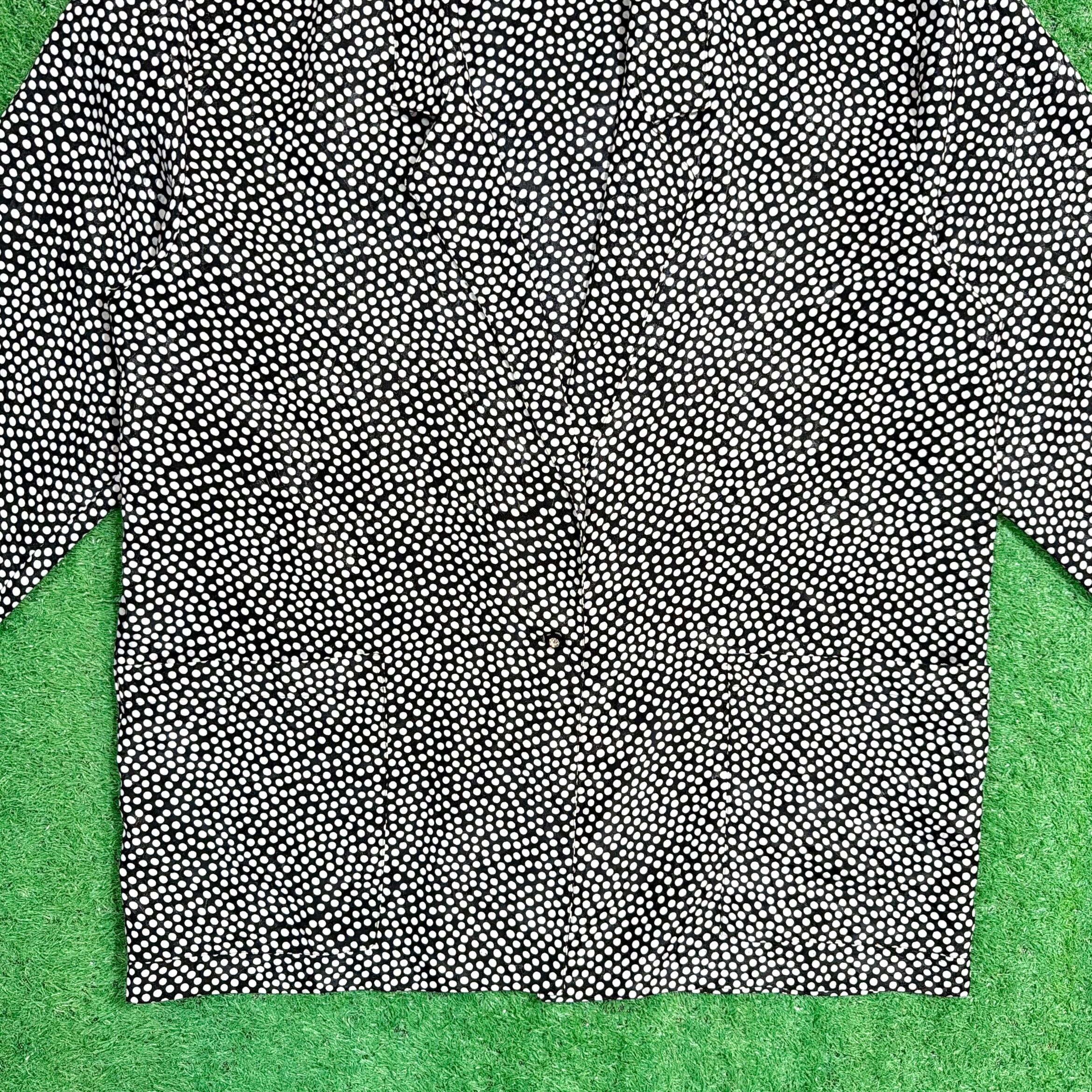 90年代らしいドット総柄が目を引く、ポリエステル素材のテーラードジャケットです。