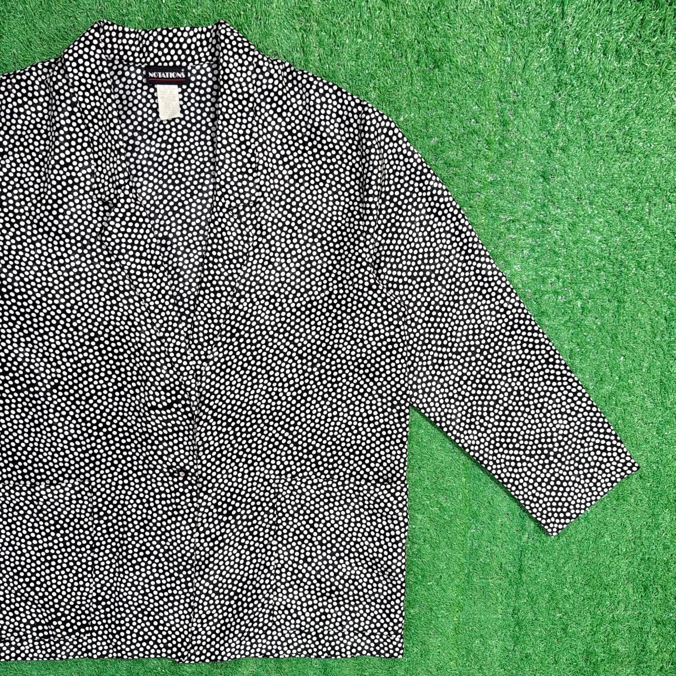 【Lady's】 90s ドッド 総柄 ポリエステル テーラード ジャケット / 90年代 古着 レディース モノトーン 白黒 1530