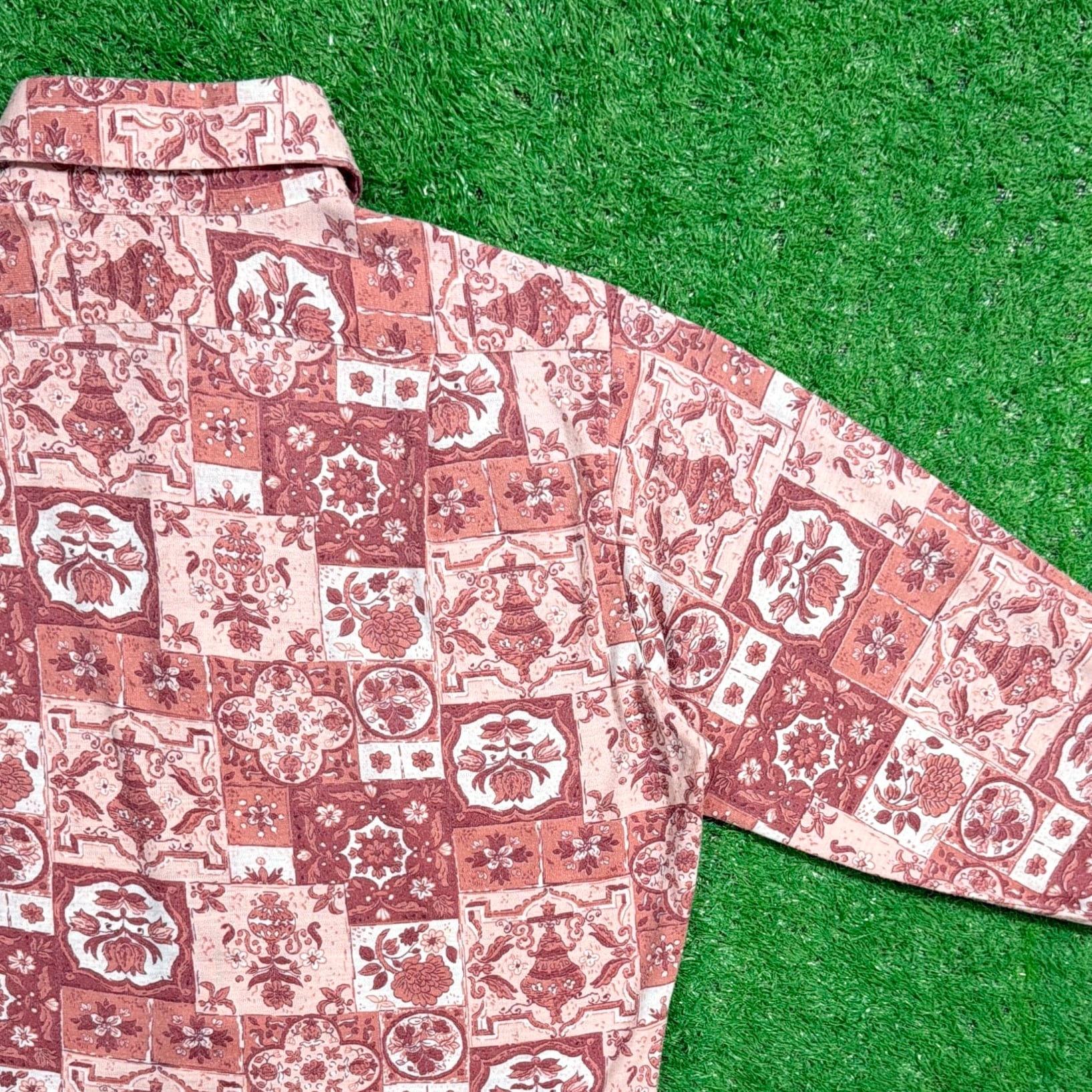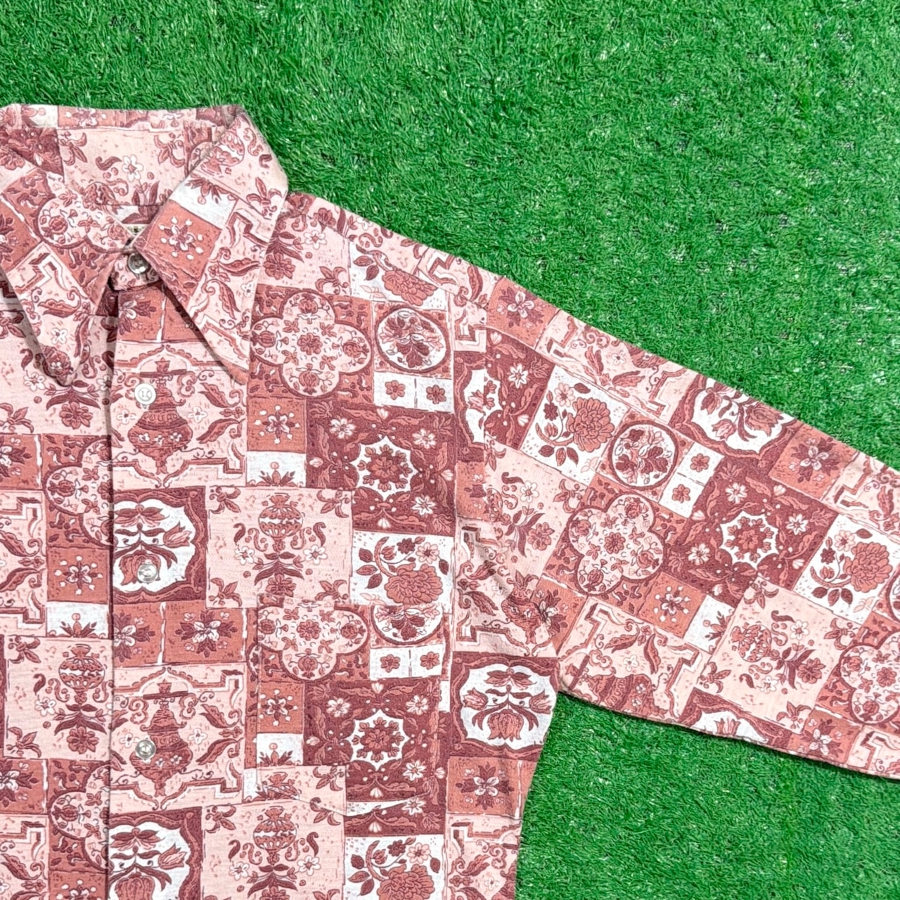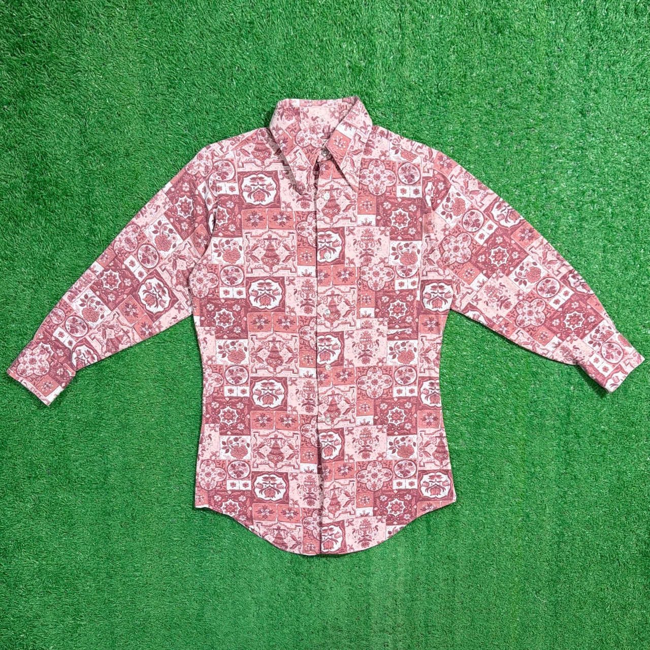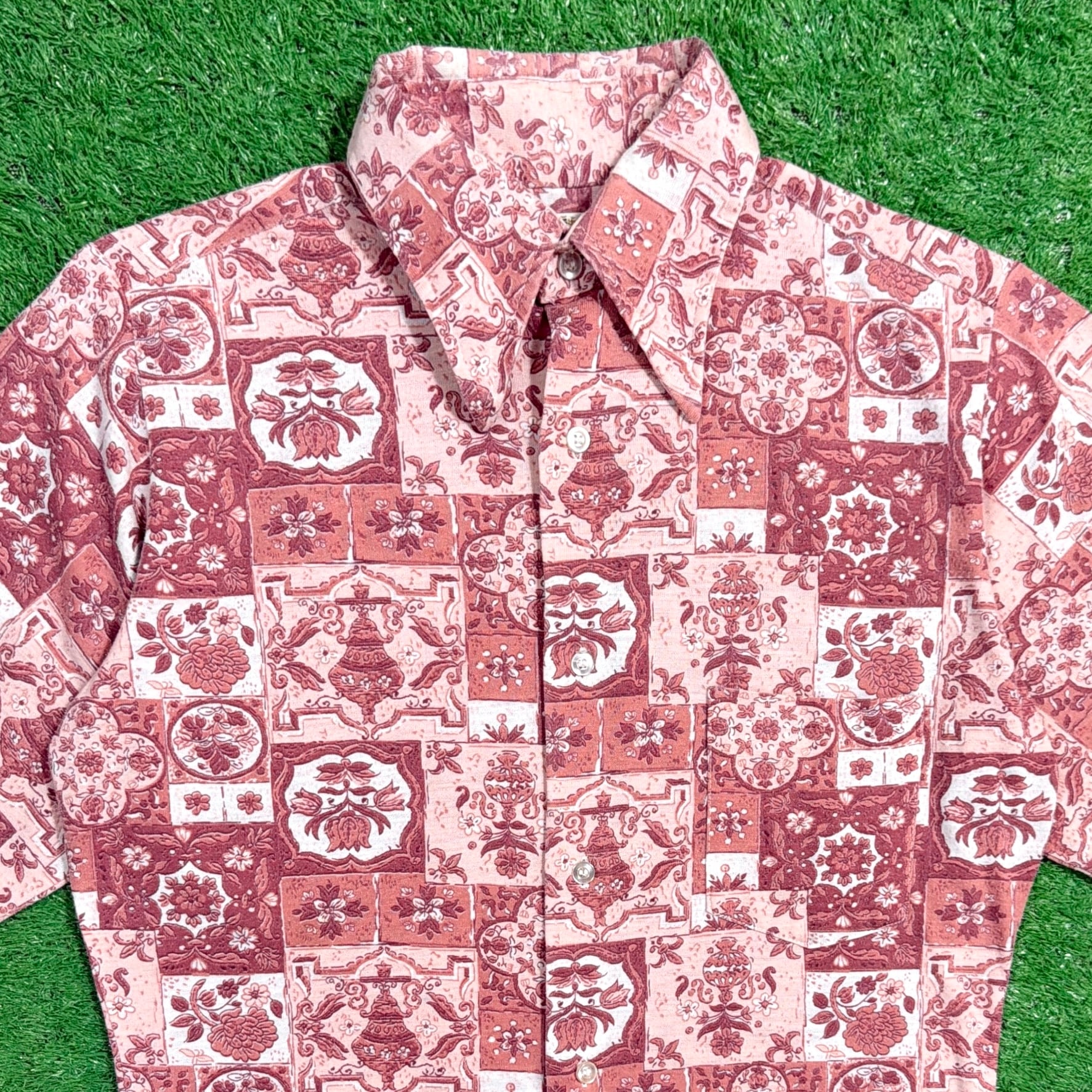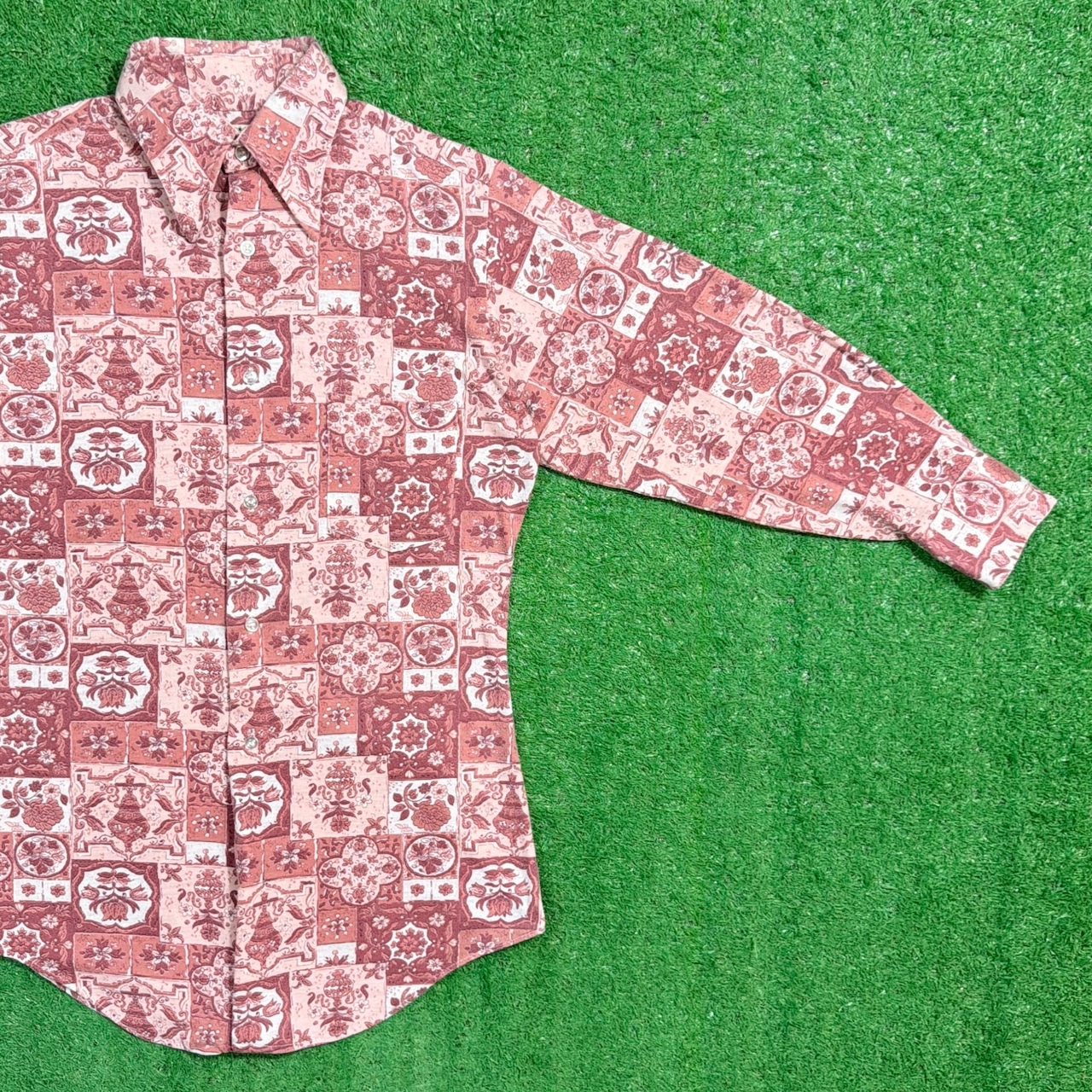 1970年代のボヘミアンテイスト漂う、総柄シャツです。