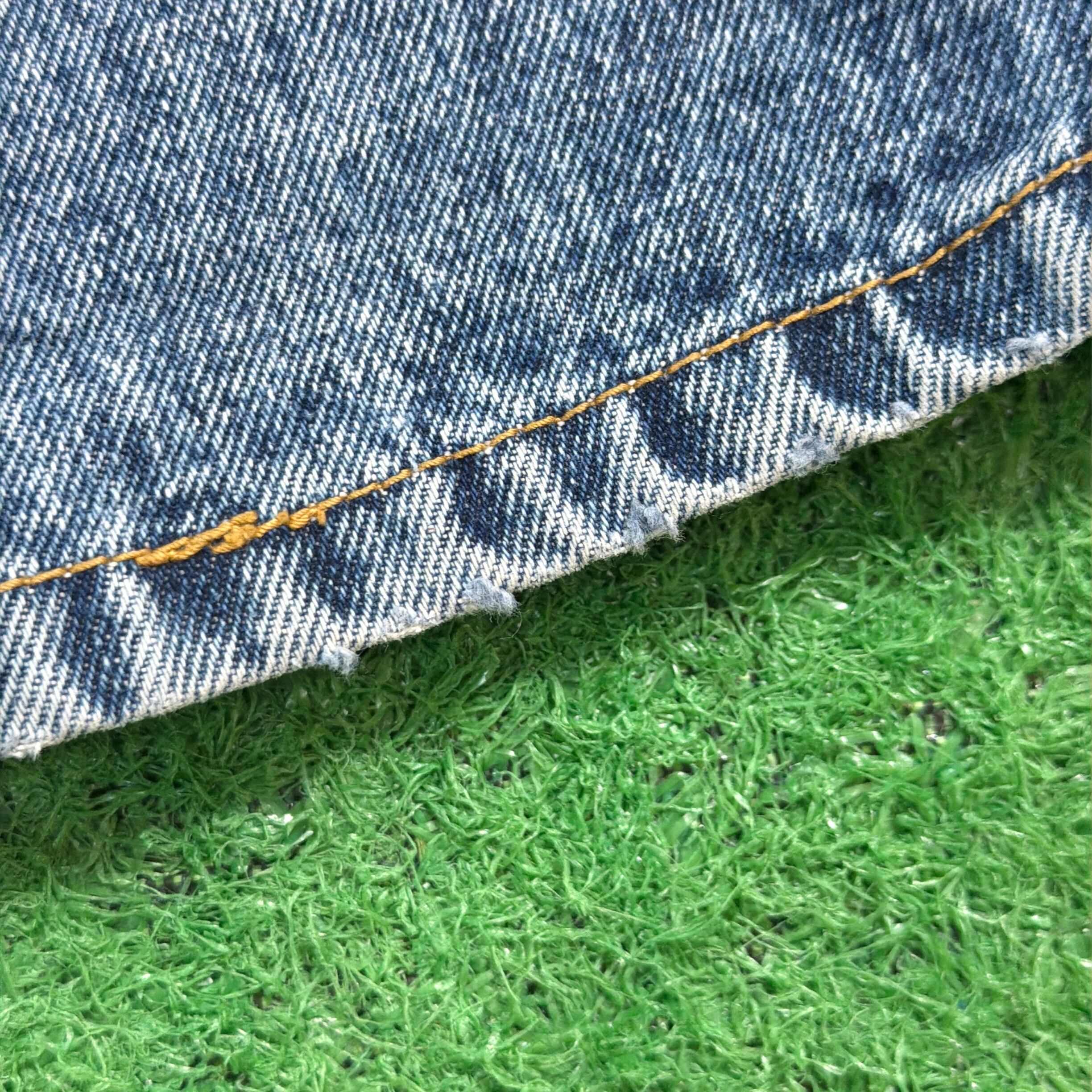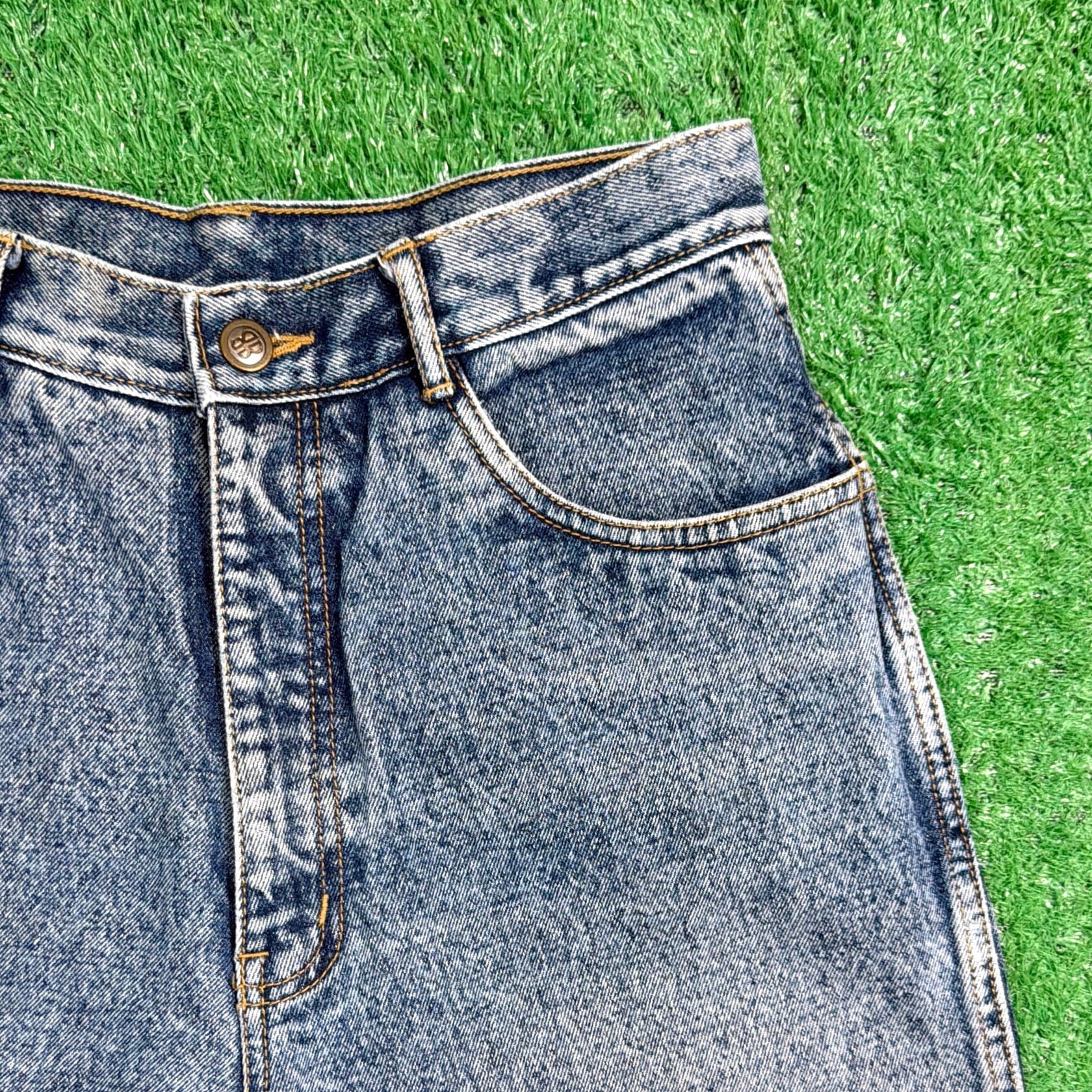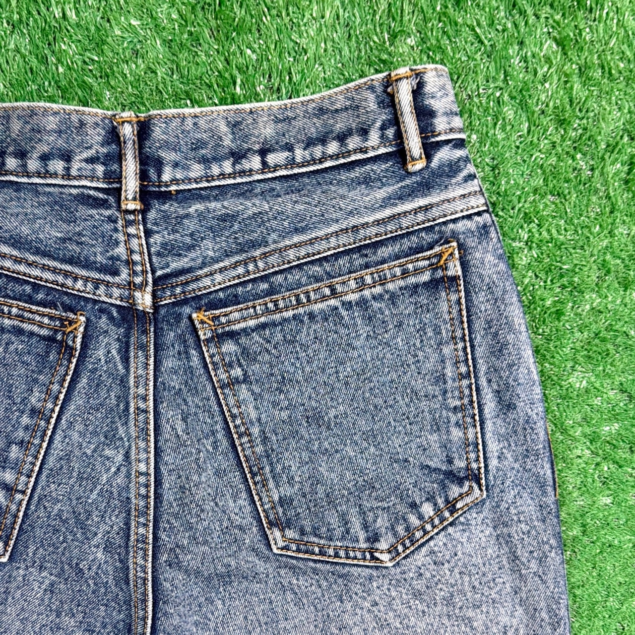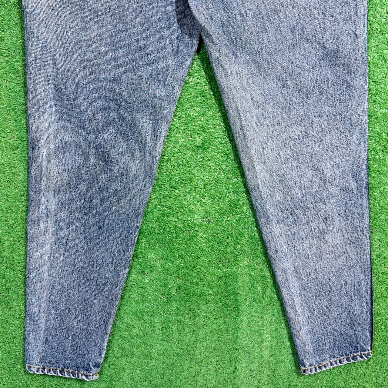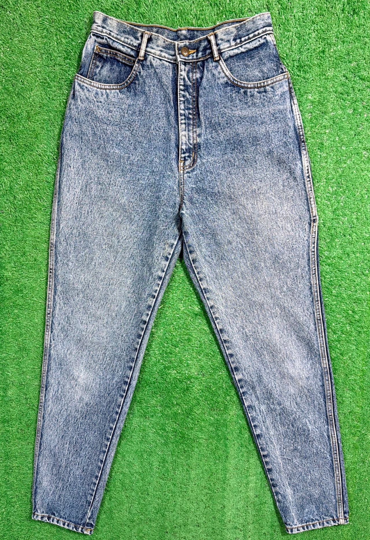 1990年代らしい雰囲気がしっかりと感じられる、ケミカルウォッシュのハイウエストデニムパンツです。