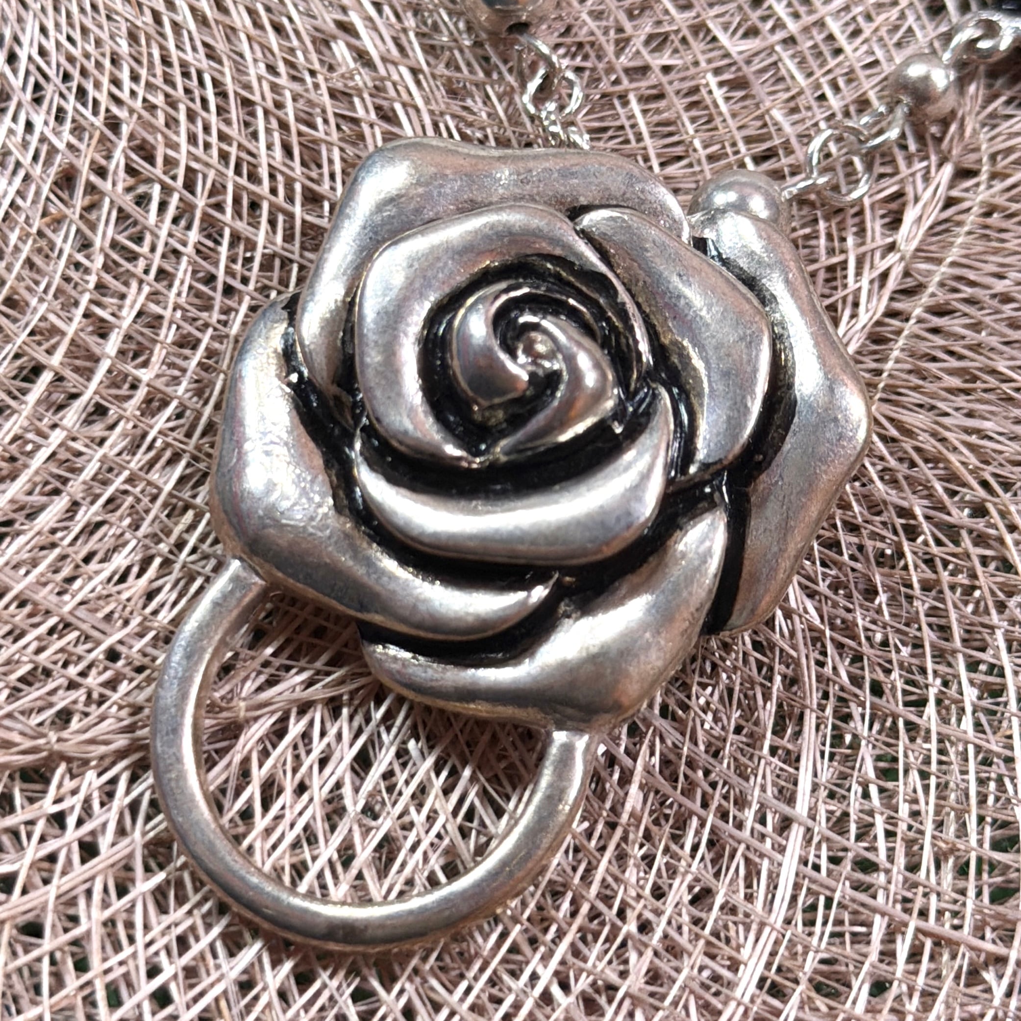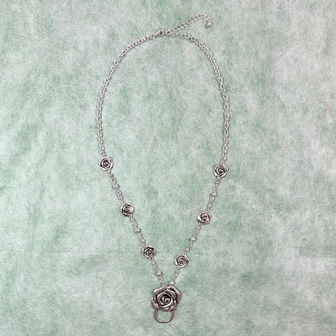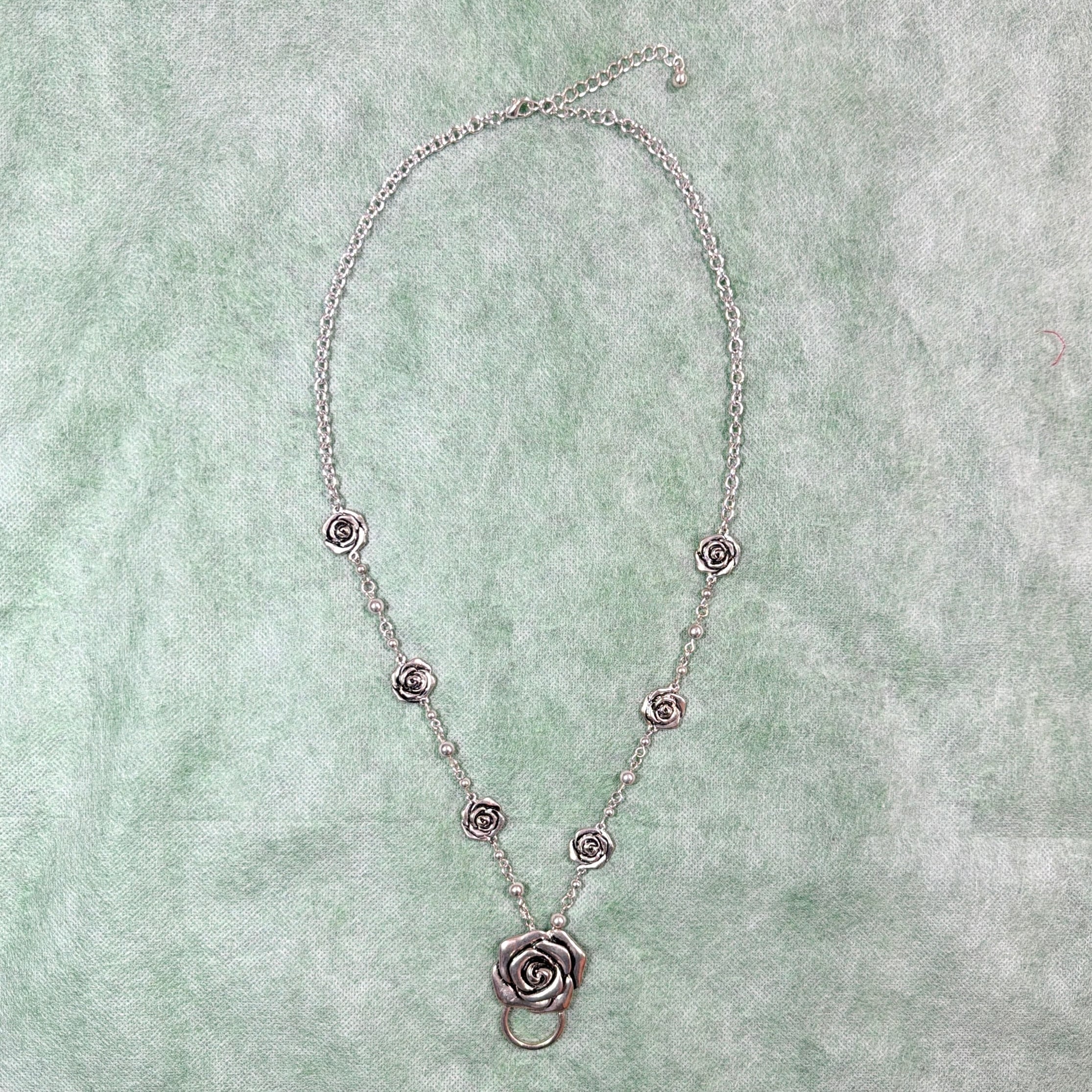 【Unisex】 ローズ モチーフ シルバーカラー チャーム ネックレス / 古着 アクセサリー バラ 薔薇