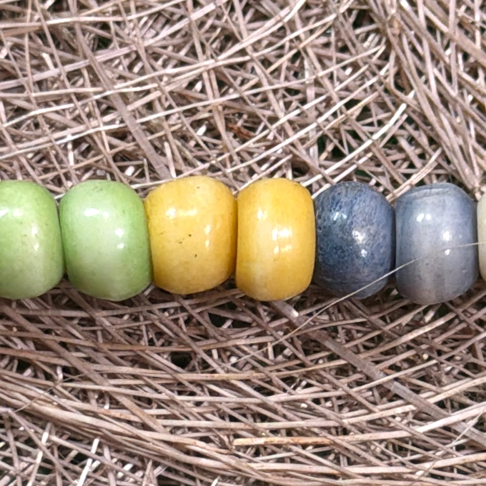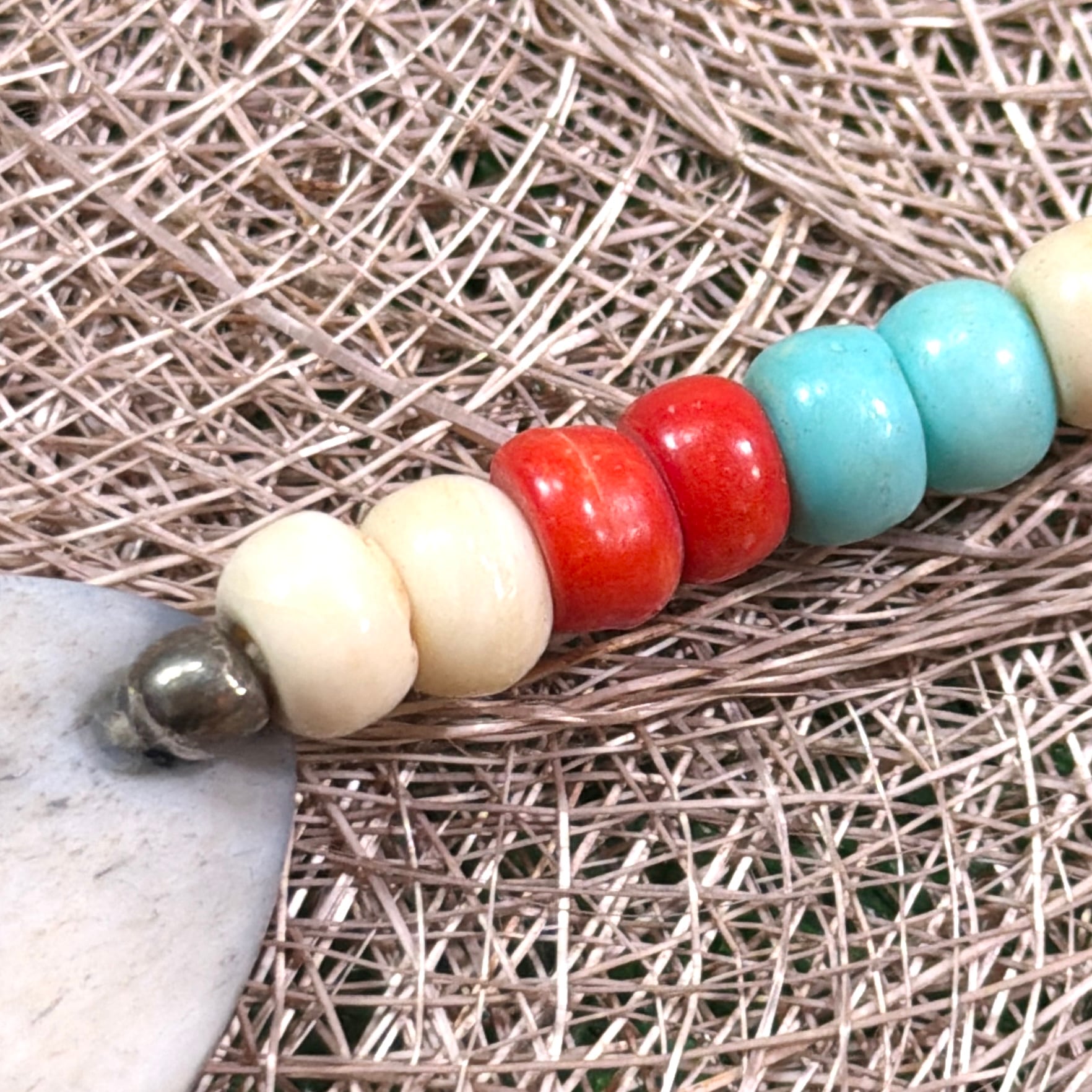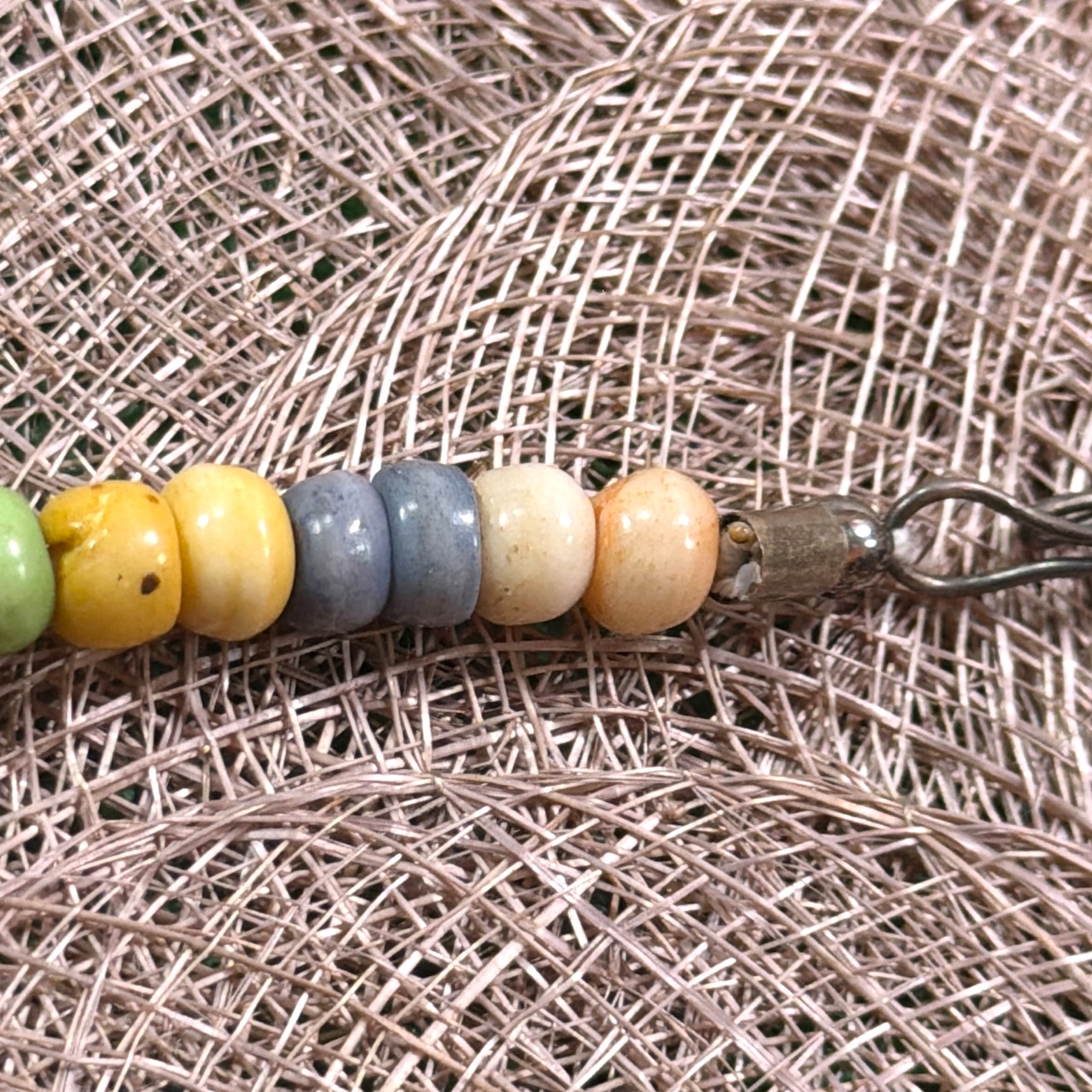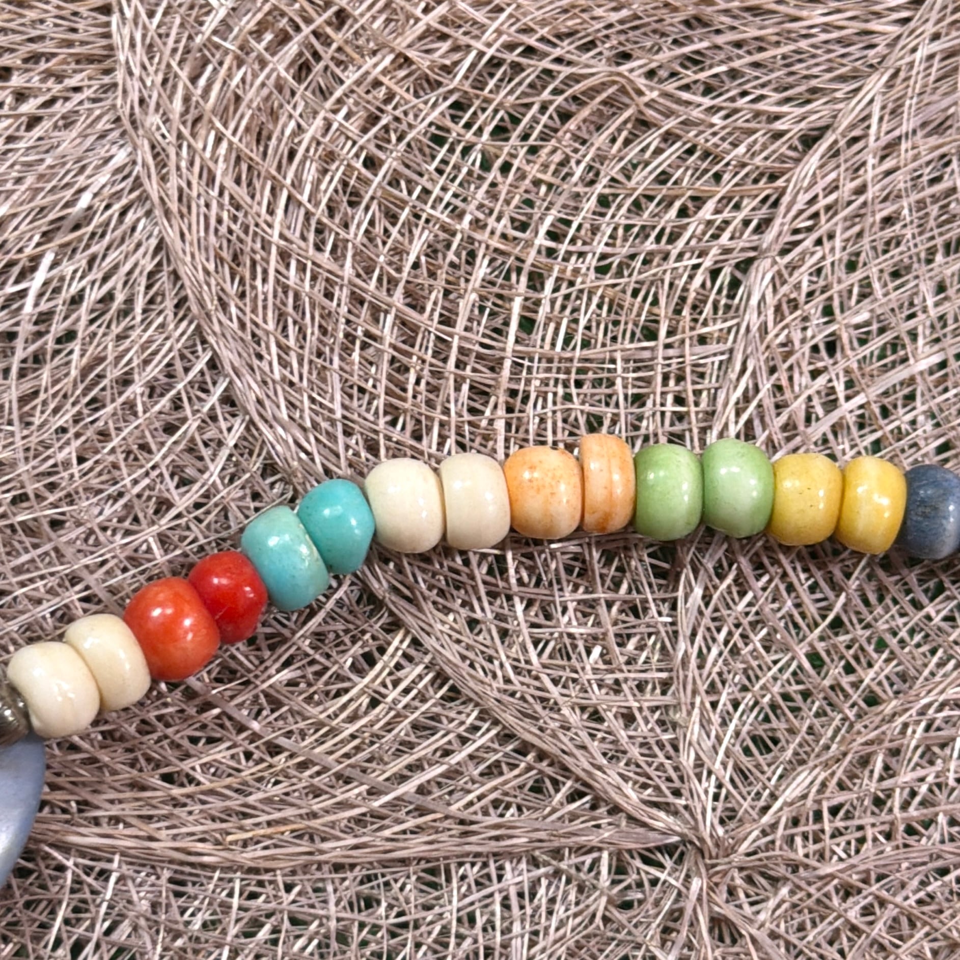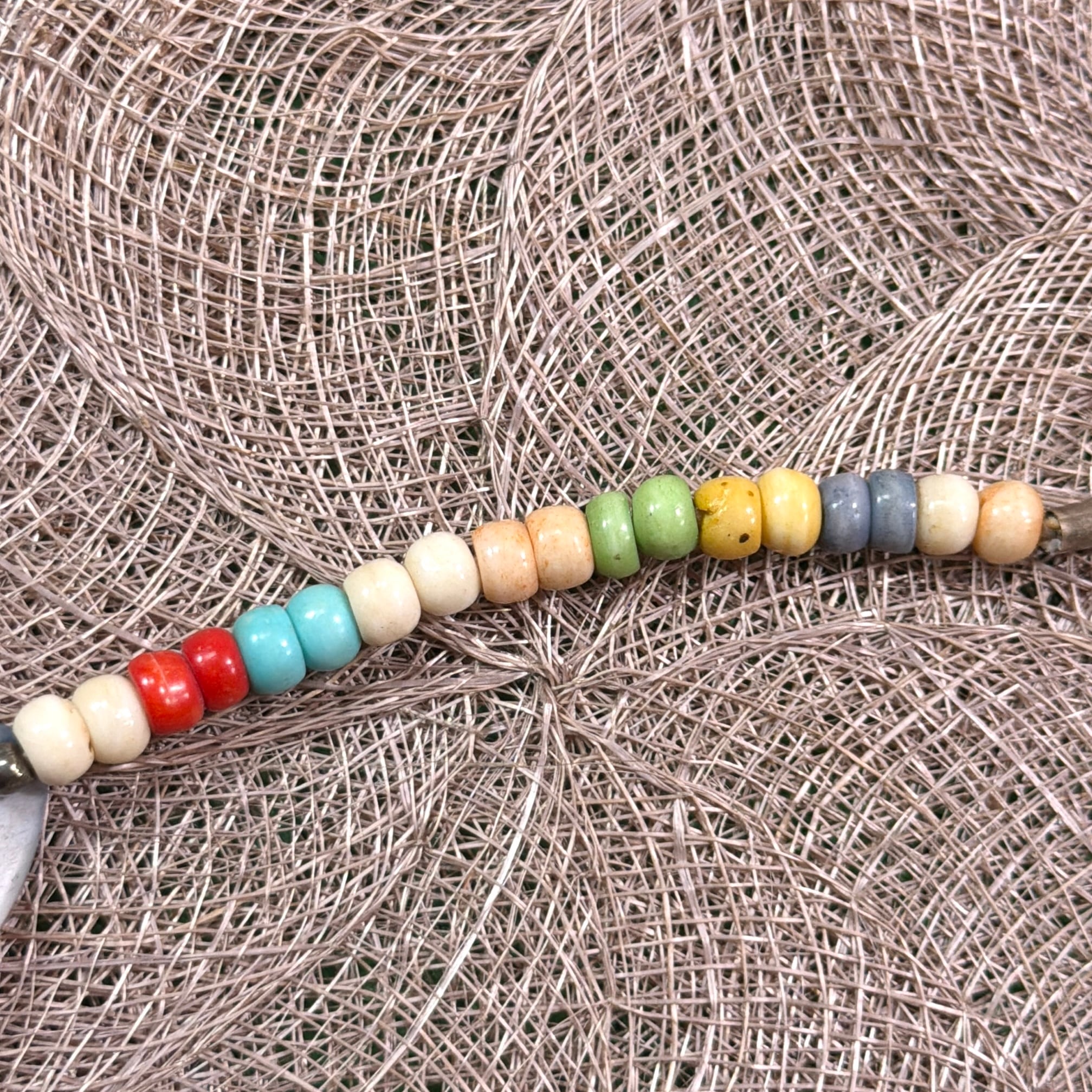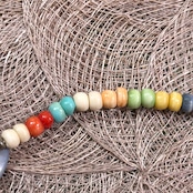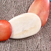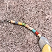 大ぶりで丸みのあるビーズが連なったデザインで、ボヘミアンやヒッピー、エスニックなムードを感じさせる一本。
