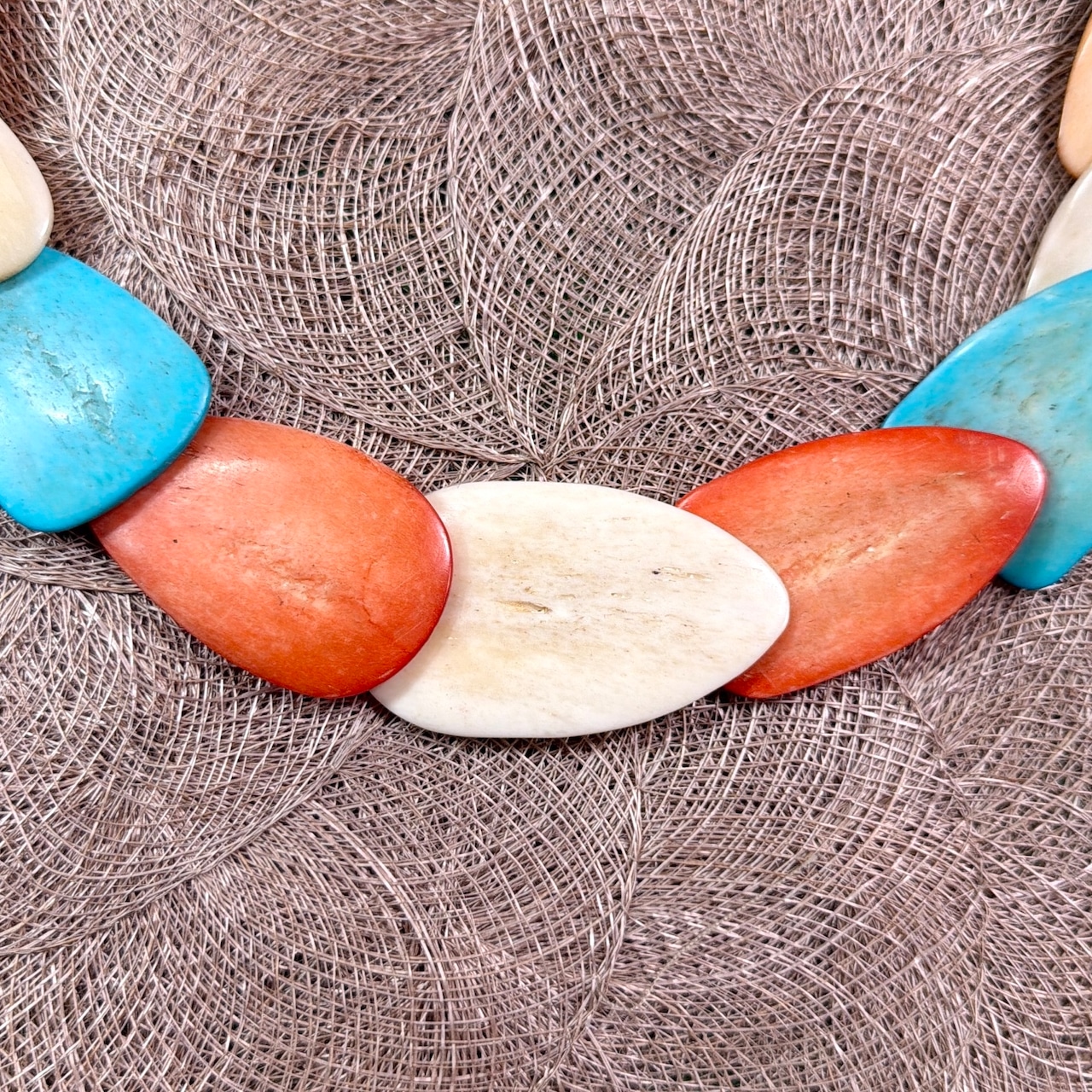 無地のTシャツやタンクトップに合わせて、ネックレスを主役にしたスタイリングがおすすめです。ワンピースやリネン素材のトップスと合わせると、よりボヘミアンな雰囲気を楽しめます。ユニセックスで使えるデザインなので、夏のラフなスタイルからフェスやリゾートシーンまで幅広く活躍します。