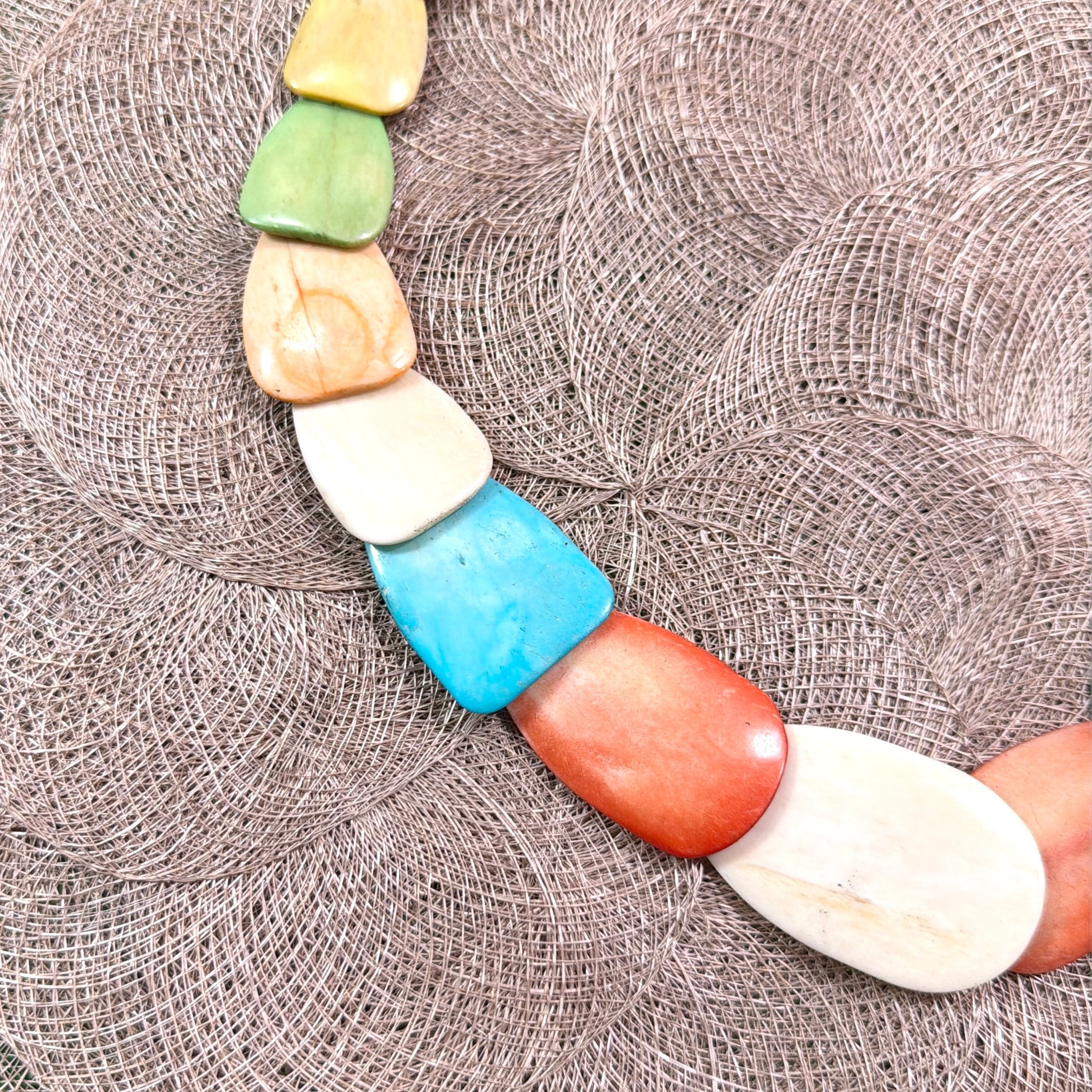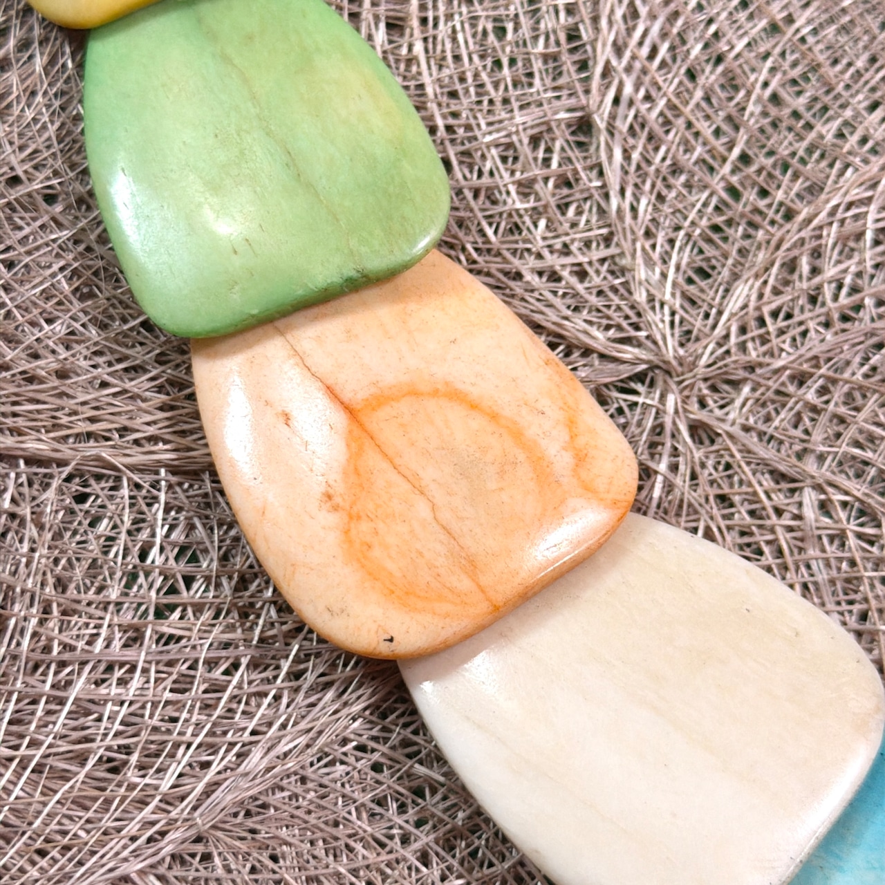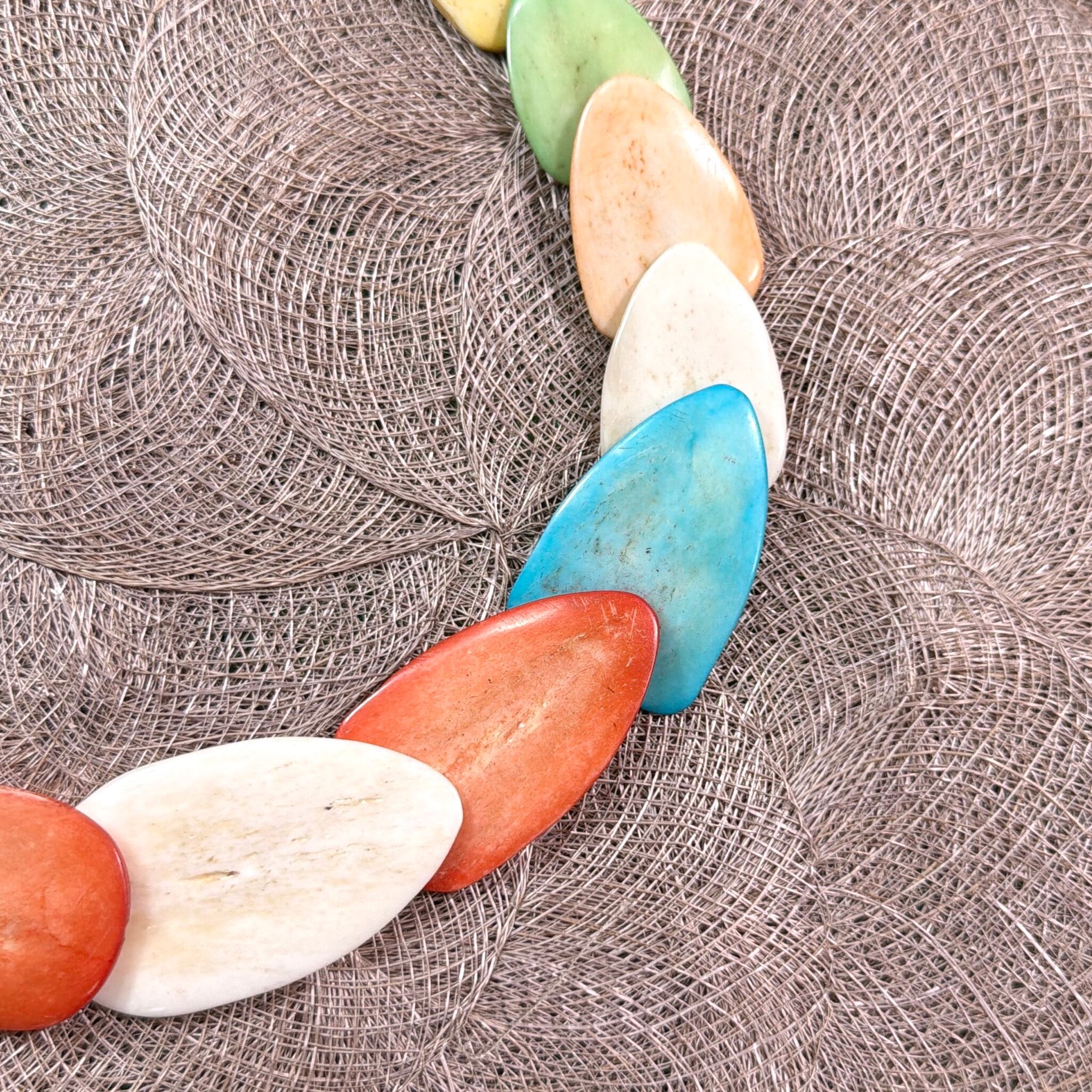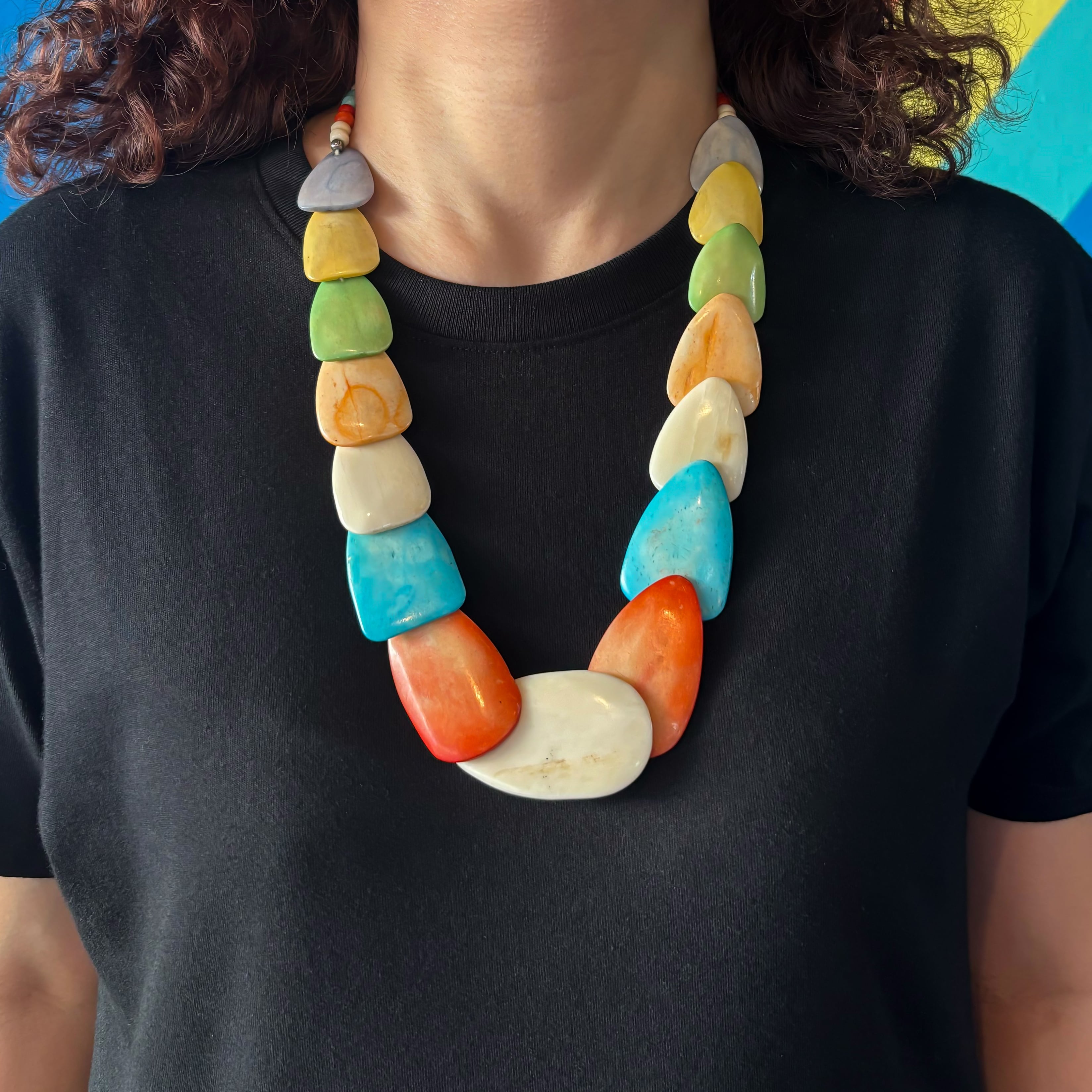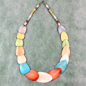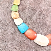 マルチカラーのストーン風ビーズを使用した、存在感のあるネックレスです。
