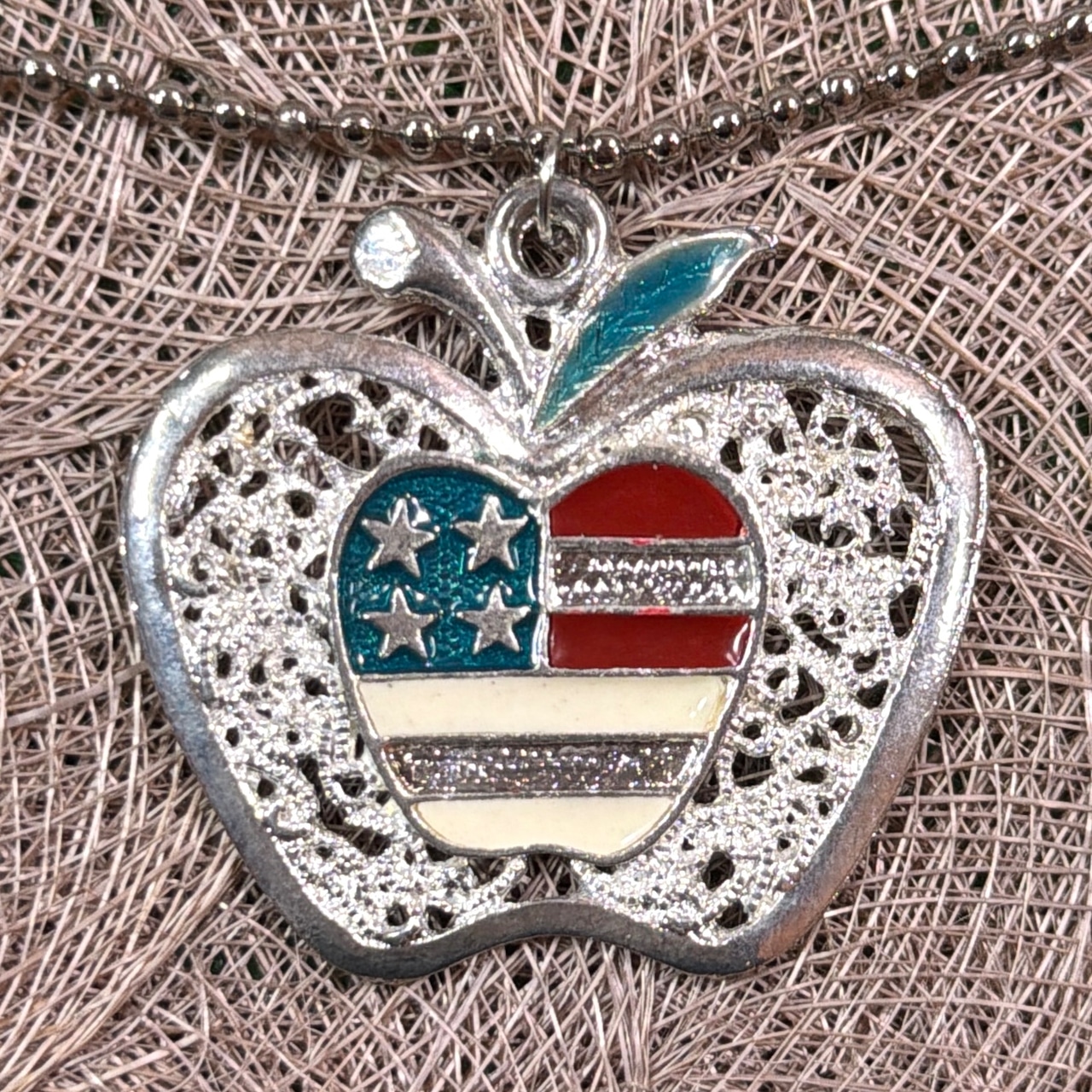 【Unisex】 星条旗 アップル モチーフ ネックレス / アメリカン 古着 アクセサリー