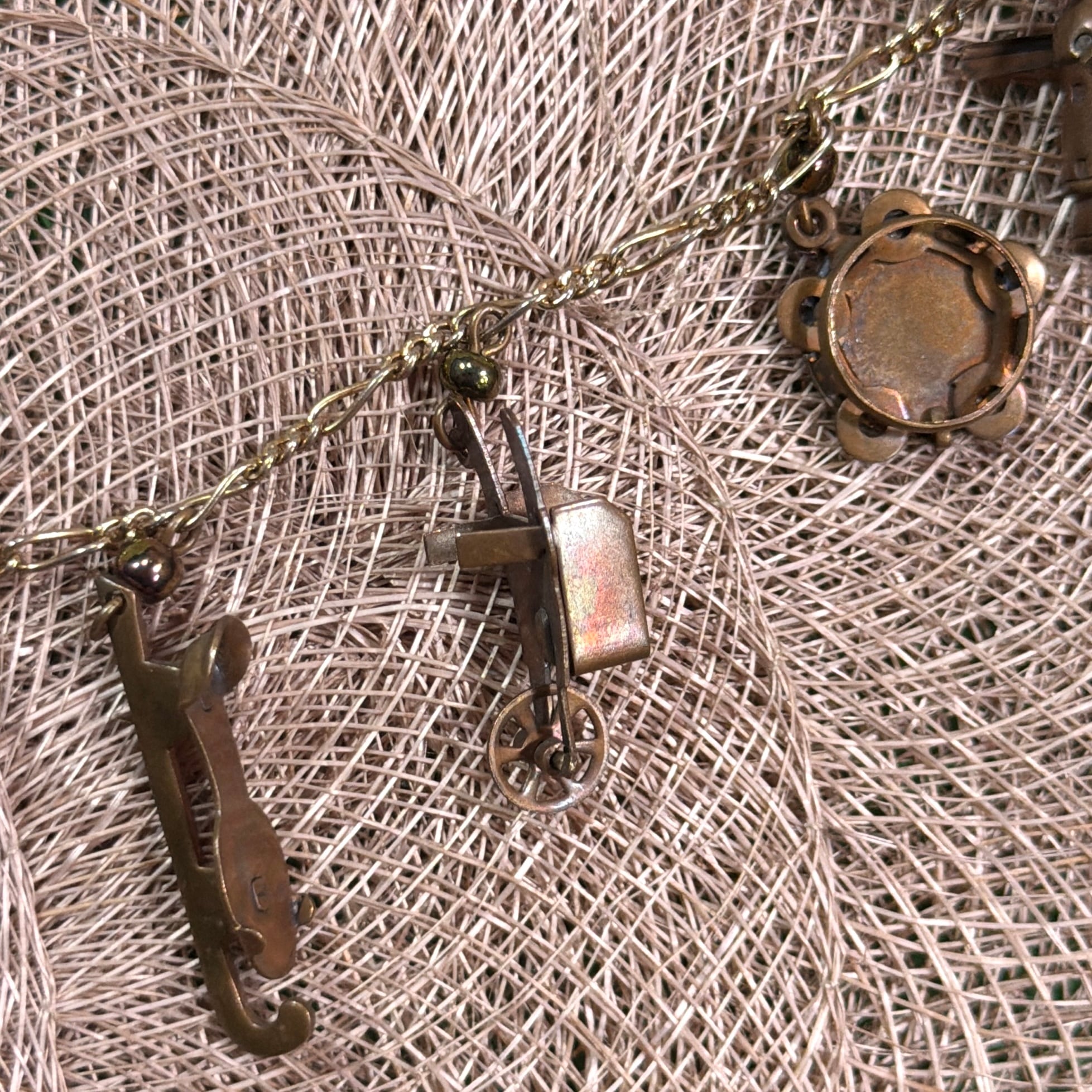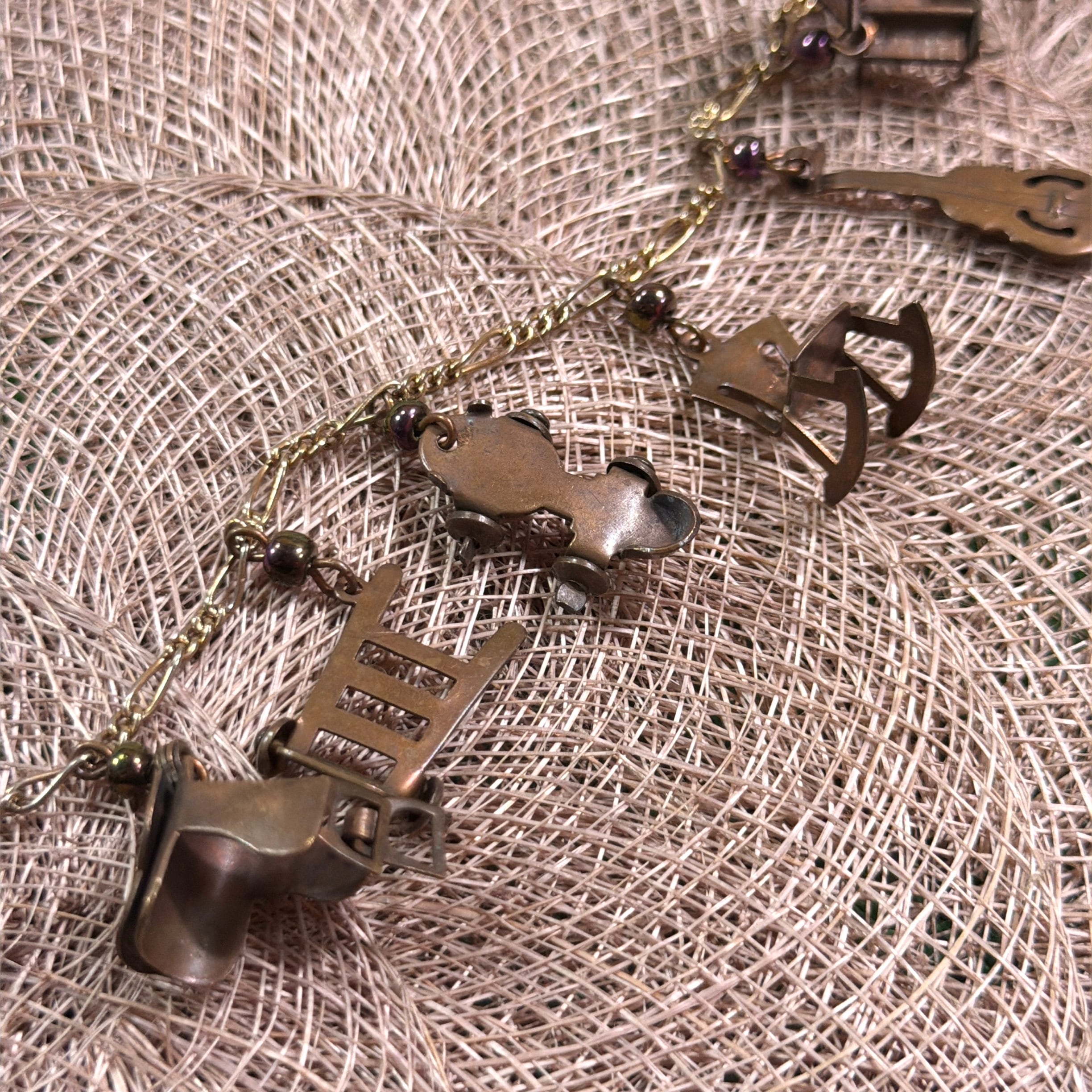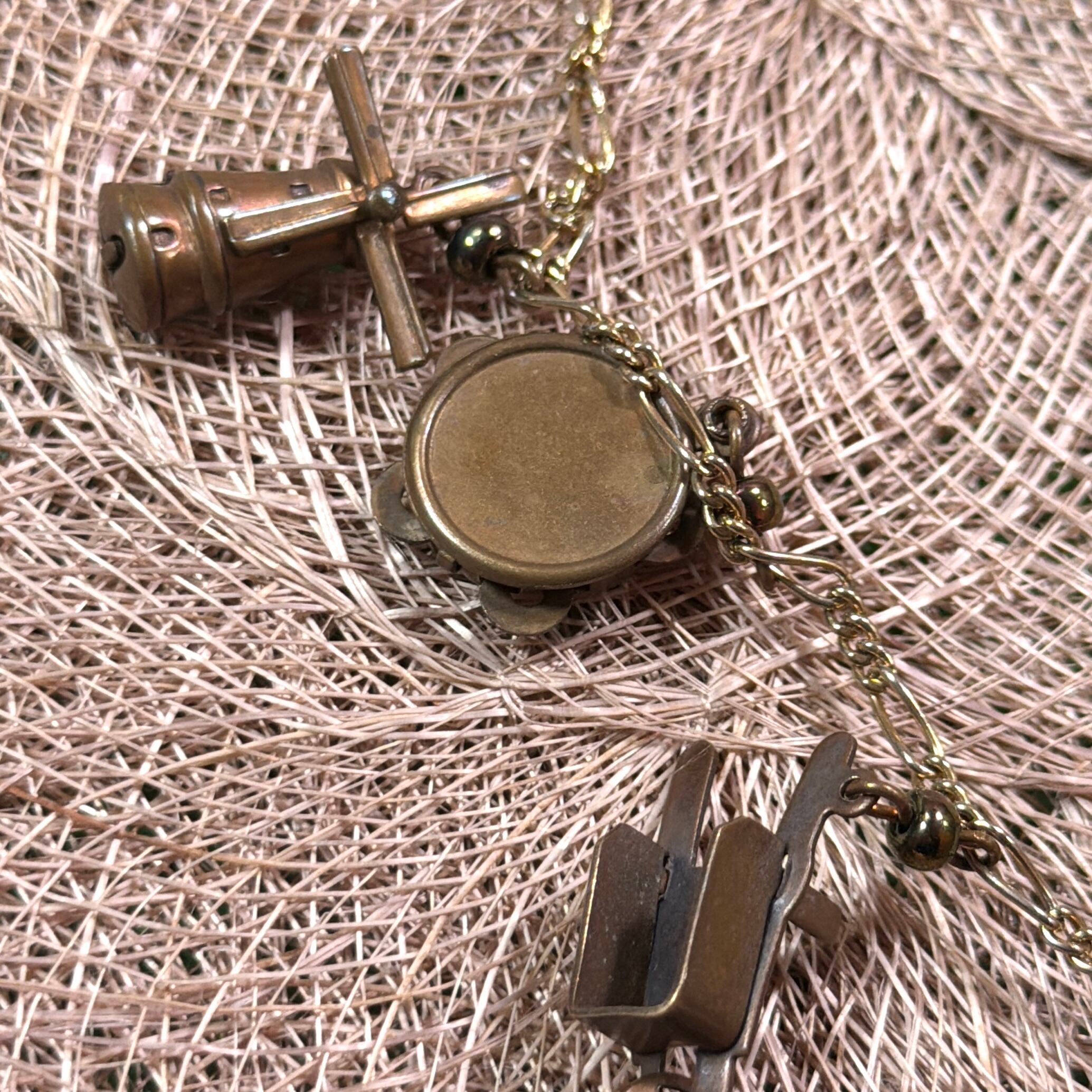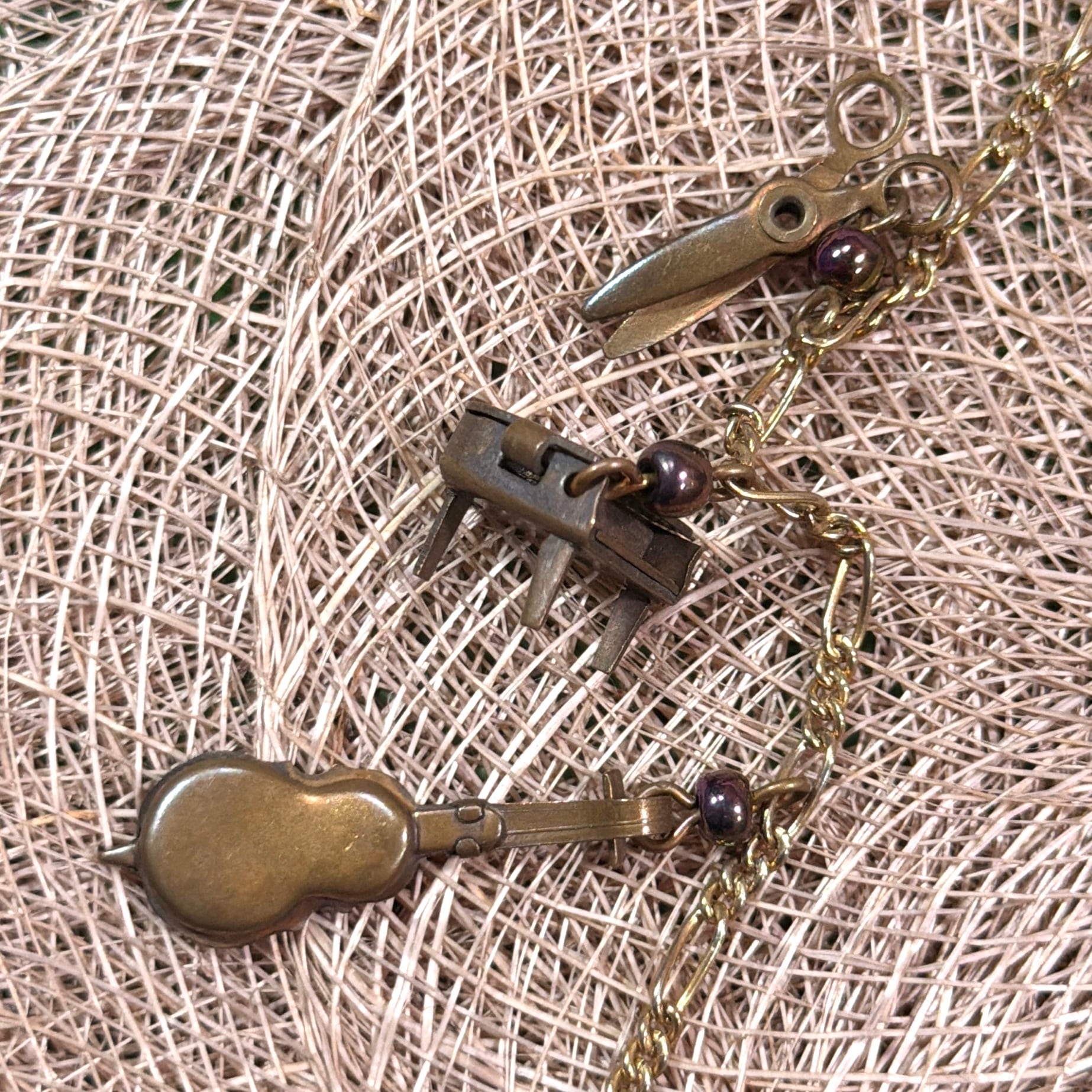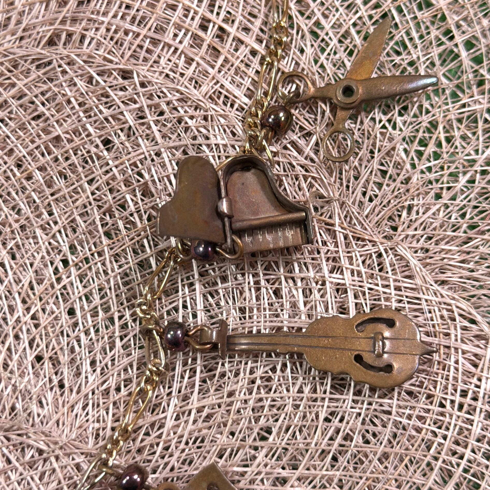 楽器モチーフをはじめ、小物などさまざまなチャームが連なった遊び心あふれるデザイン。それぞれが立体的で細かく作り込まれており、ヴィンテージらしい雰囲気をしっかり感じられる一本です。
