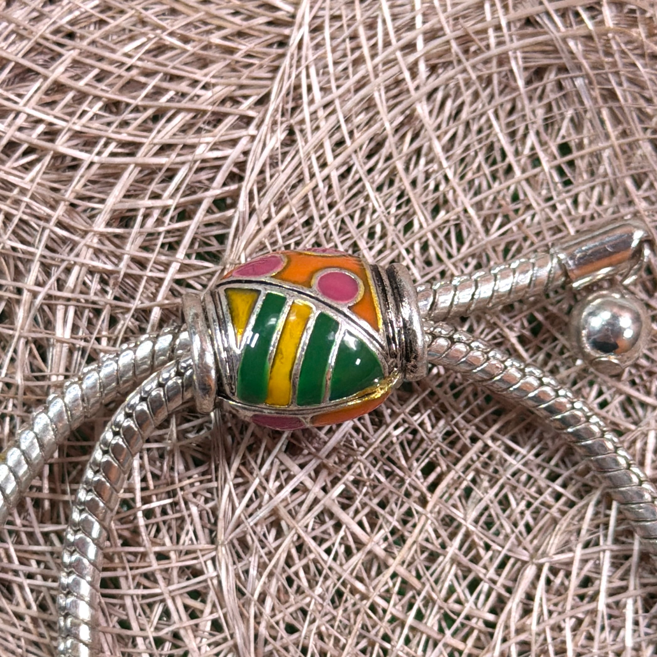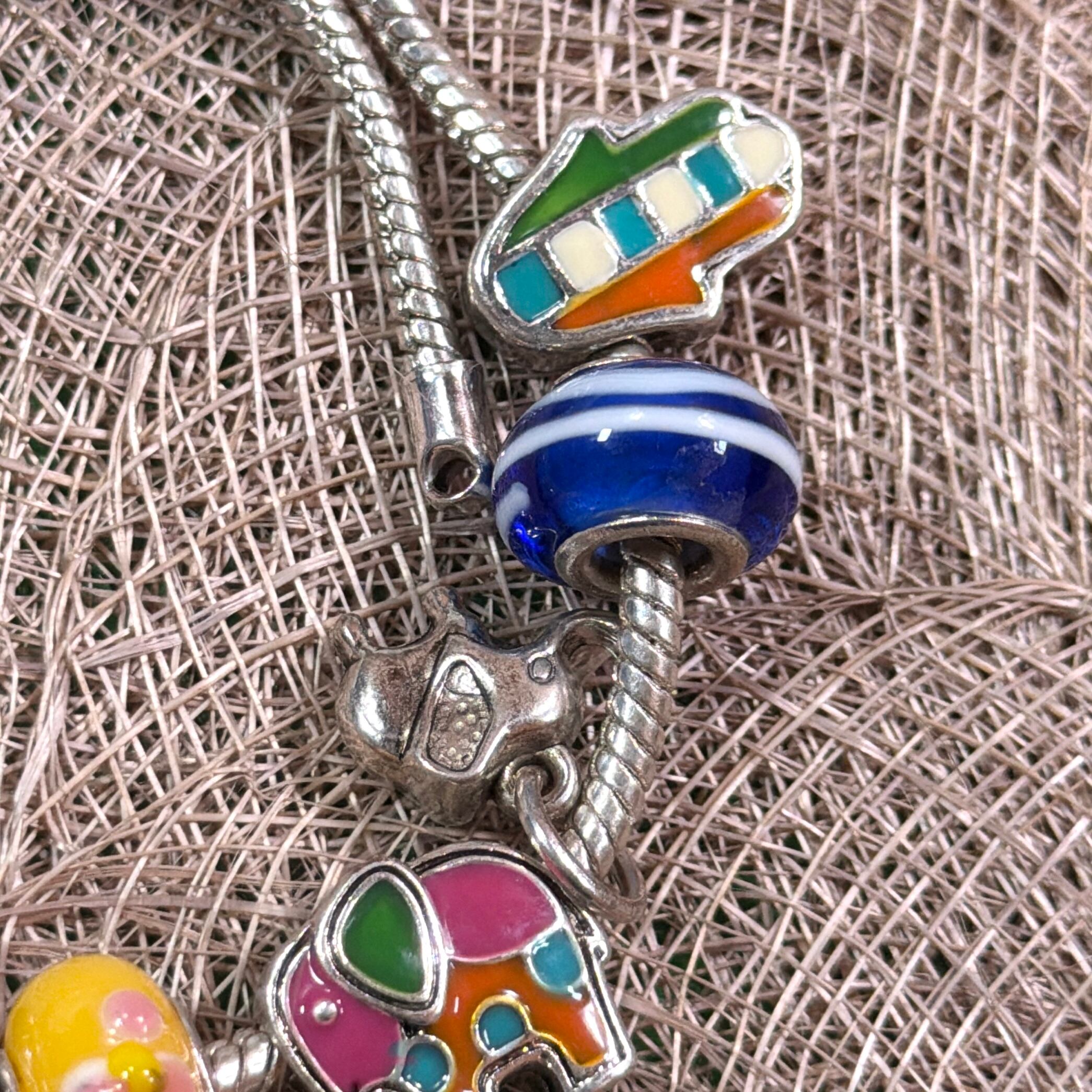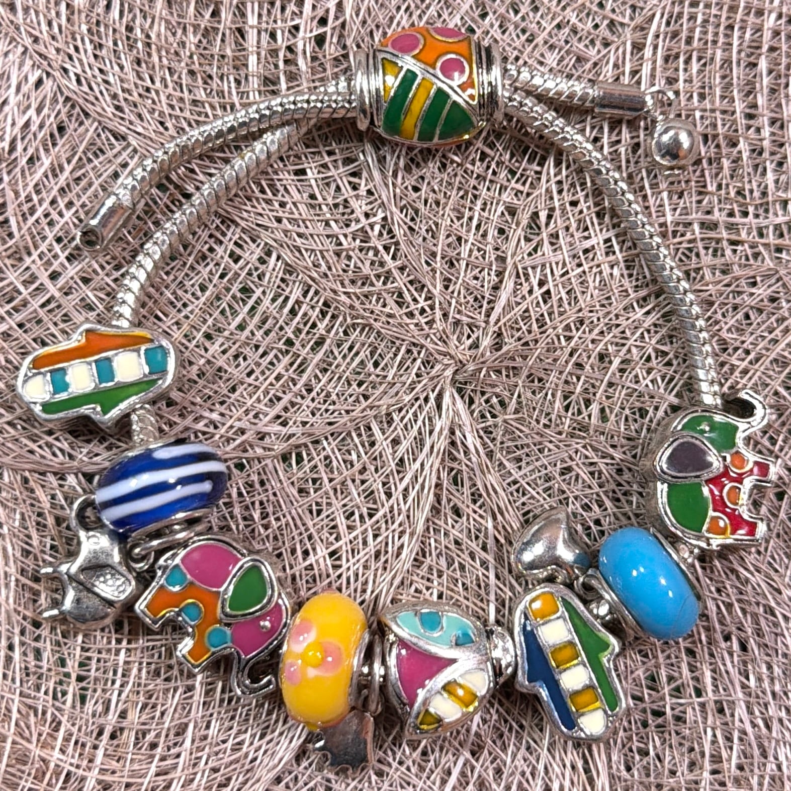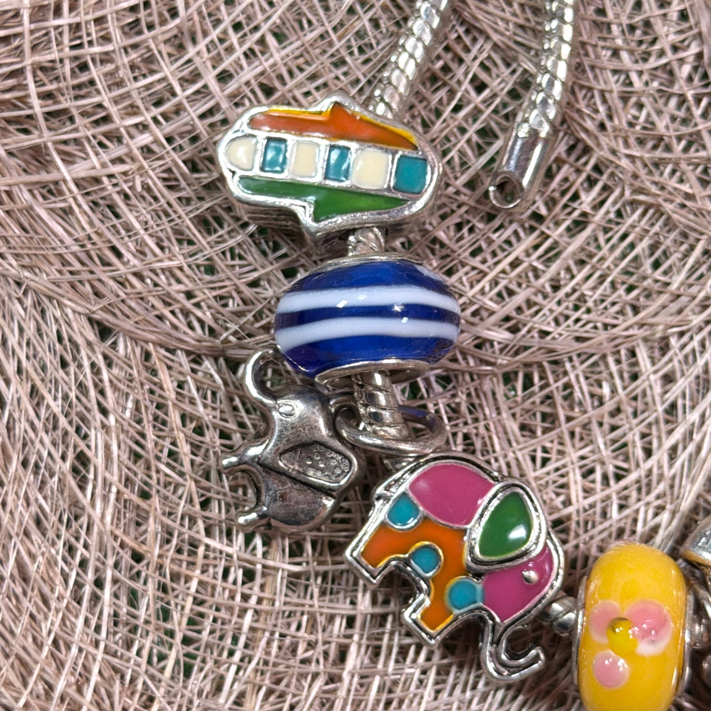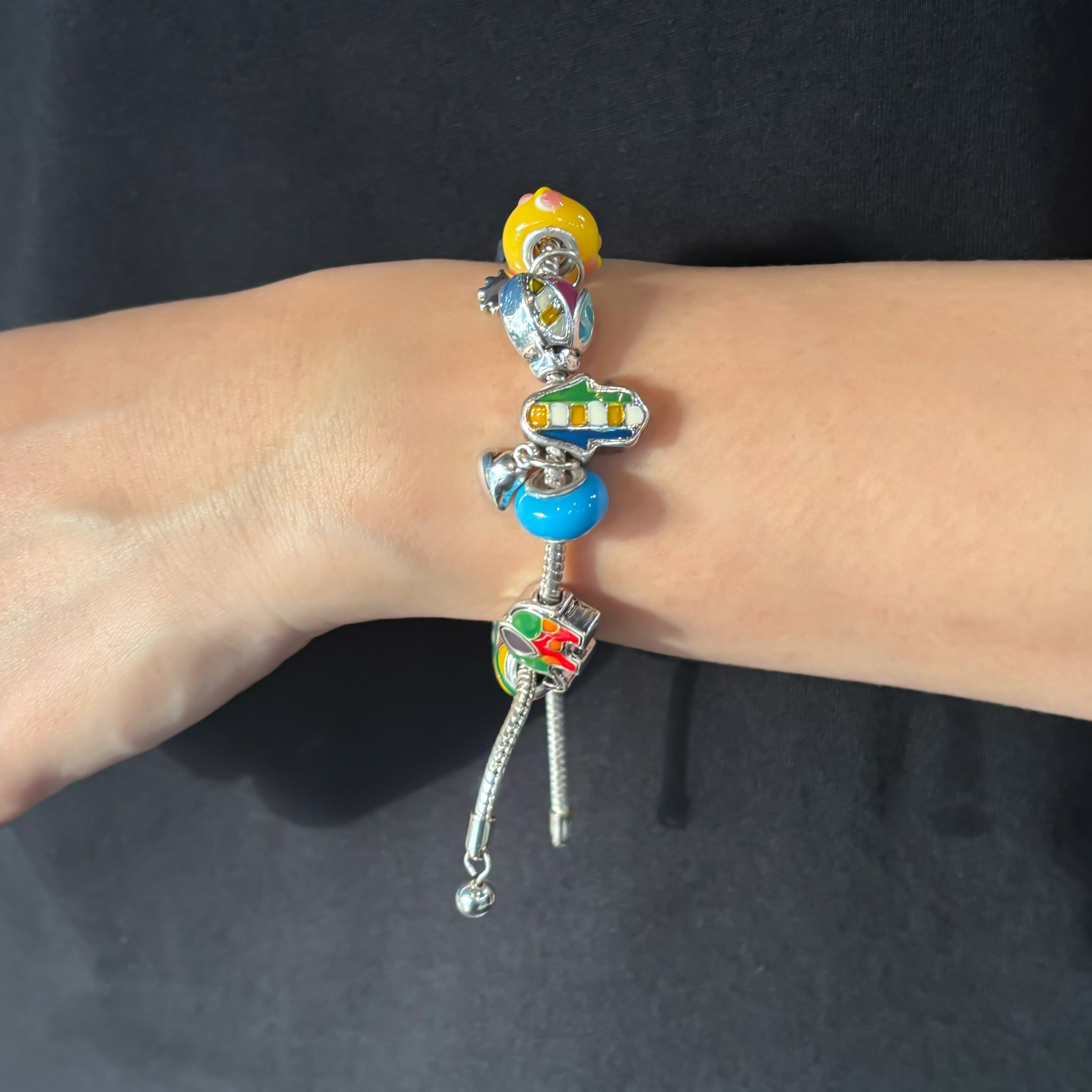 カラフルなチャームが連なった、遊び心たっぷりのブレスレットです。