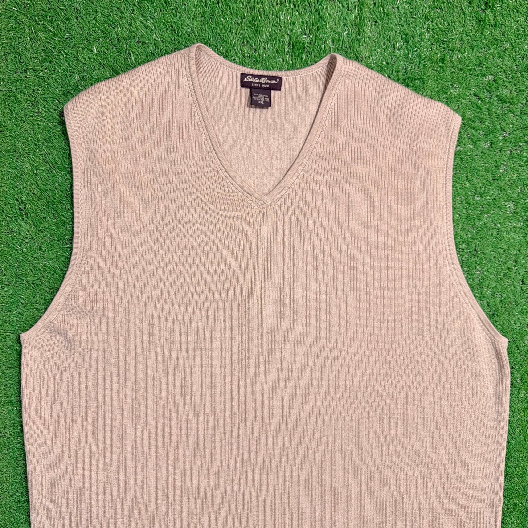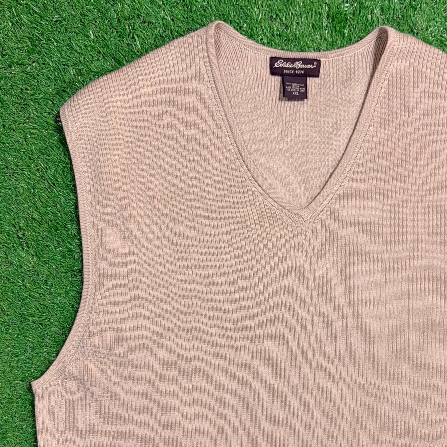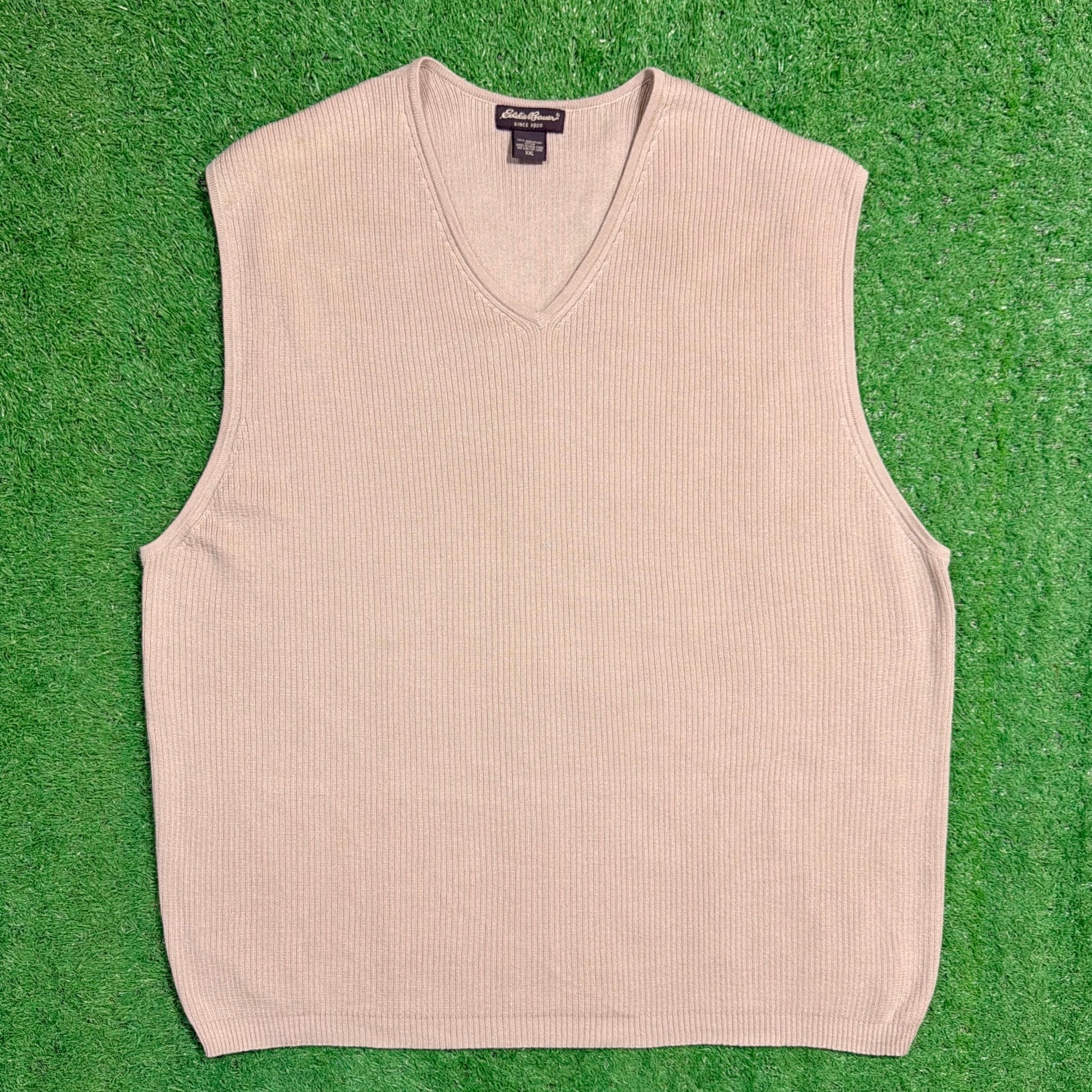 【Men's】 00s - Eddie Bauer リブ編み コットン ニット ベスト / エディバウアー 古着 メンズ 1542