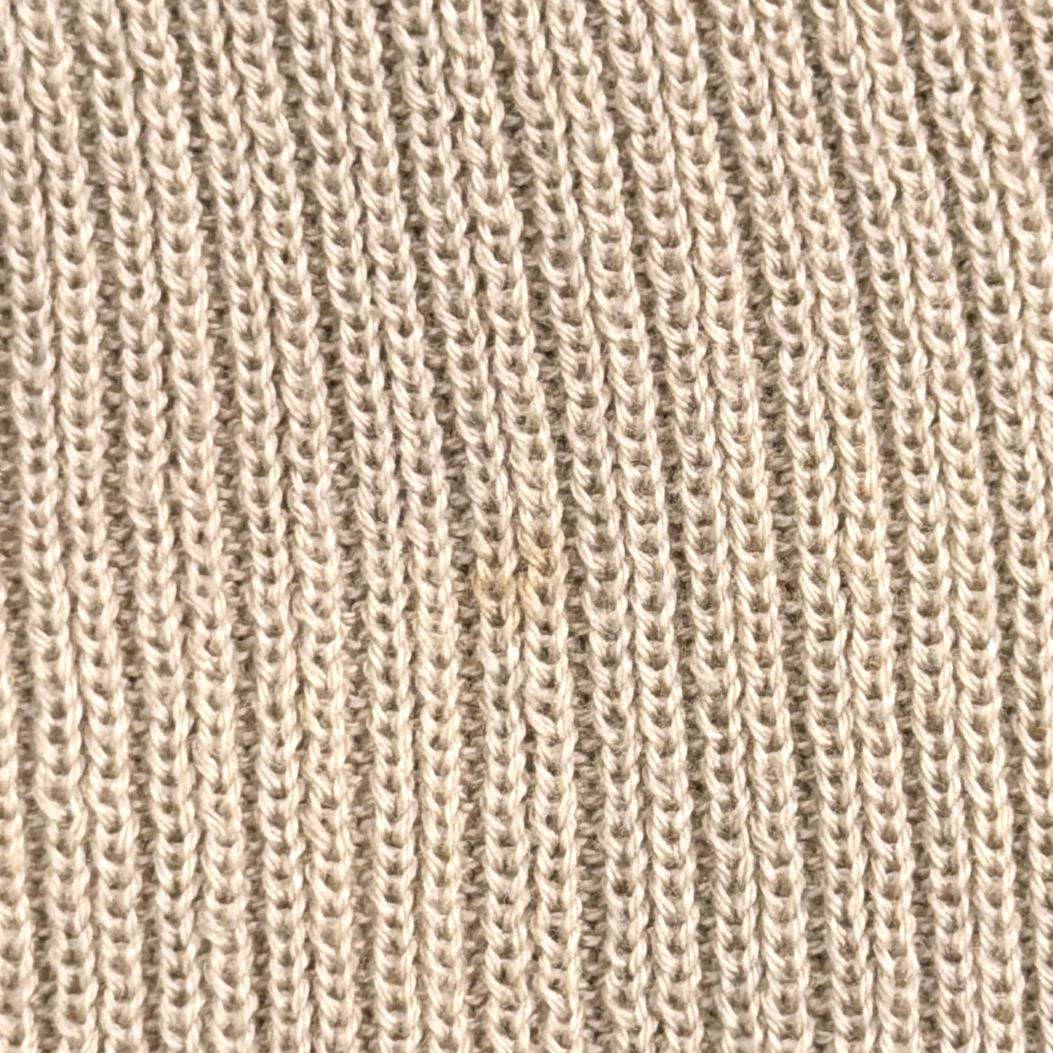 コットン100%素材を使用したリブ編みのニットで、畝のある縦ラインがすっきりとした印象。ウールニットに比べてチクチク感がなく、軽やかな着心地が魅力です。