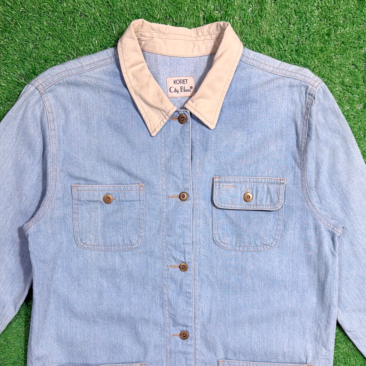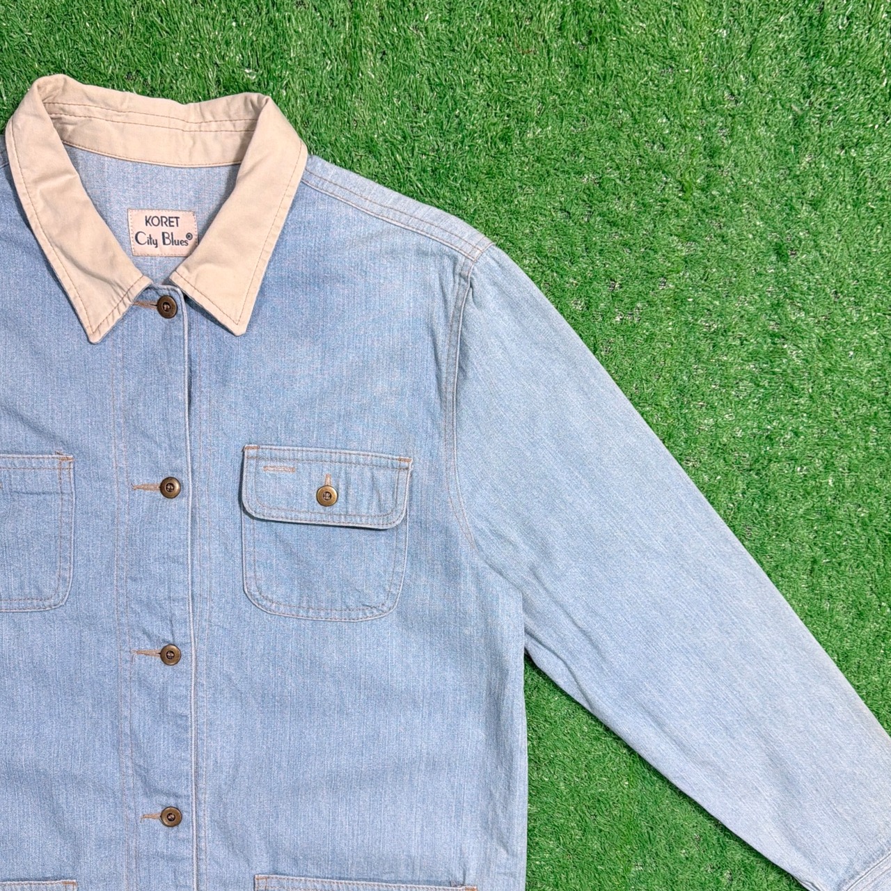 レディースらしいコンパクトさもありつつ、身幅は適度にゆとりがあり、重ね着もしやすいバランスです。90sらしいカジュアルさとデニムの風合いを楽しめる一着です。
