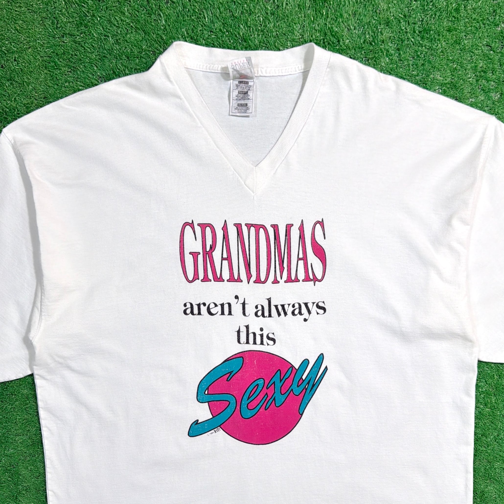 【Men's】 90s GRANDMAS メッセージ Vネック Tシャツ / 90年代 ティーシャツ T-Shirt 古着 1547