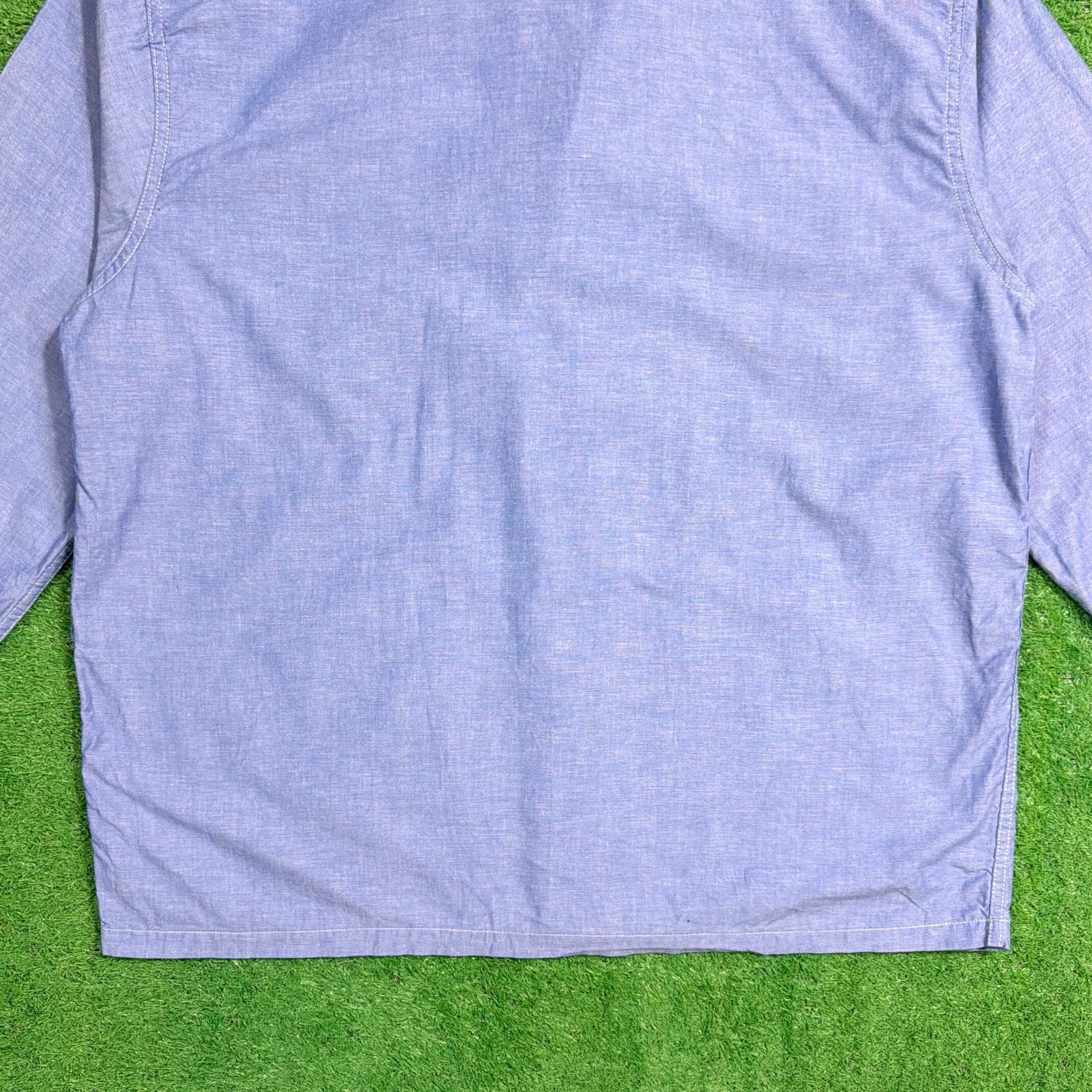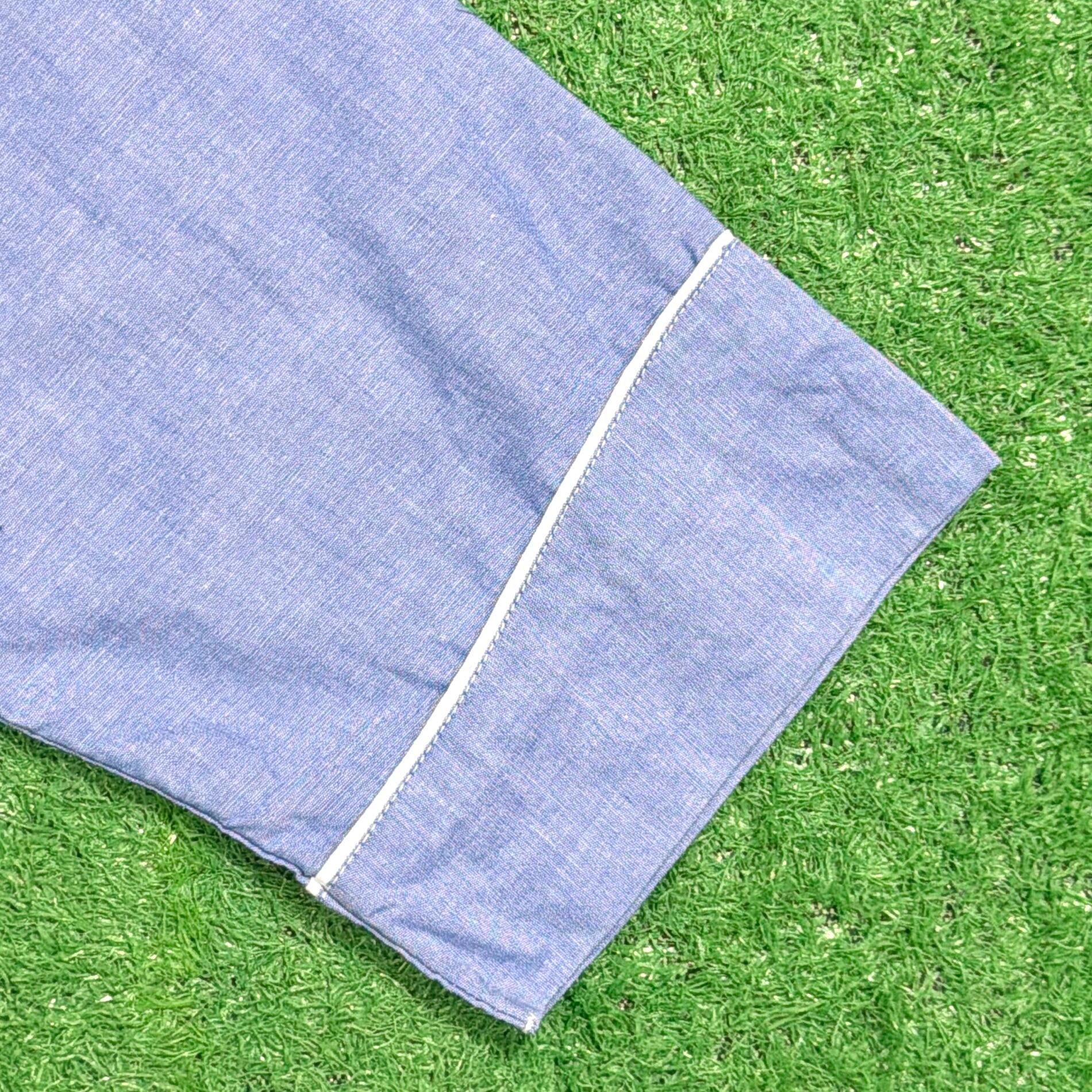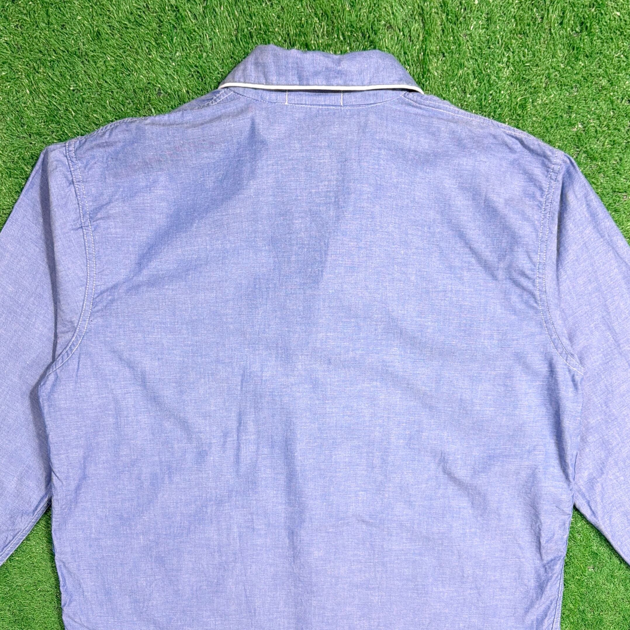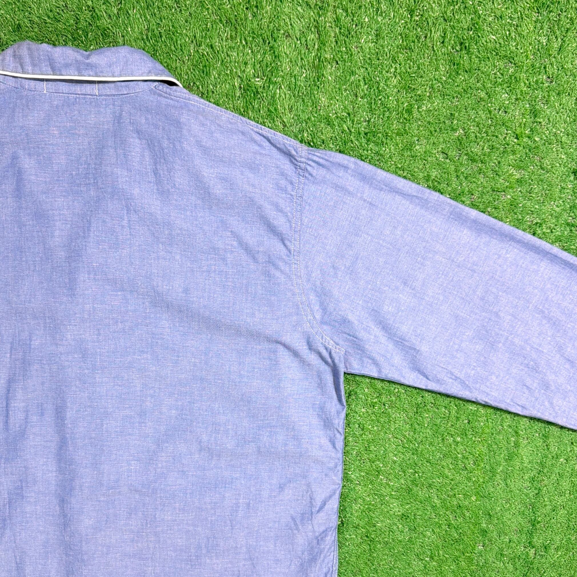 やわらかなブルーカラーに、ホワイトのパイピングが映えるクラシックなデザイン。オープンカラー仕様で、程よく力の抜けた雰囲気が魅力の一枚です。胸ポケット付きのベーシックなディテールで、シンプルながら90年代らしいリラックス感を楽しめます。