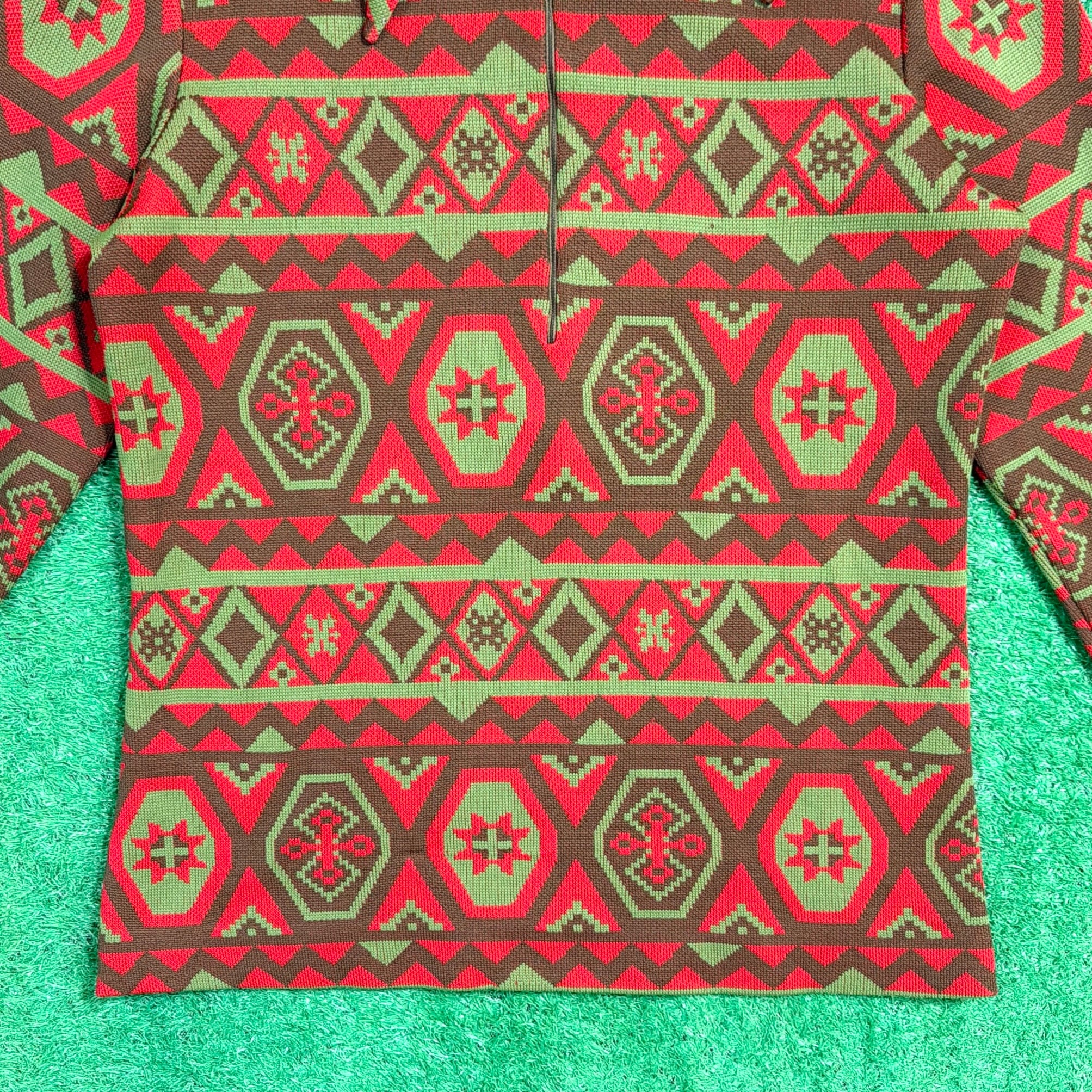 【Unisex】 70s ネイティブ柄 ハーフジップ トップス / 70年代 古着 オルテガ チマヨ ニット レディース メンズ 総柄 1556