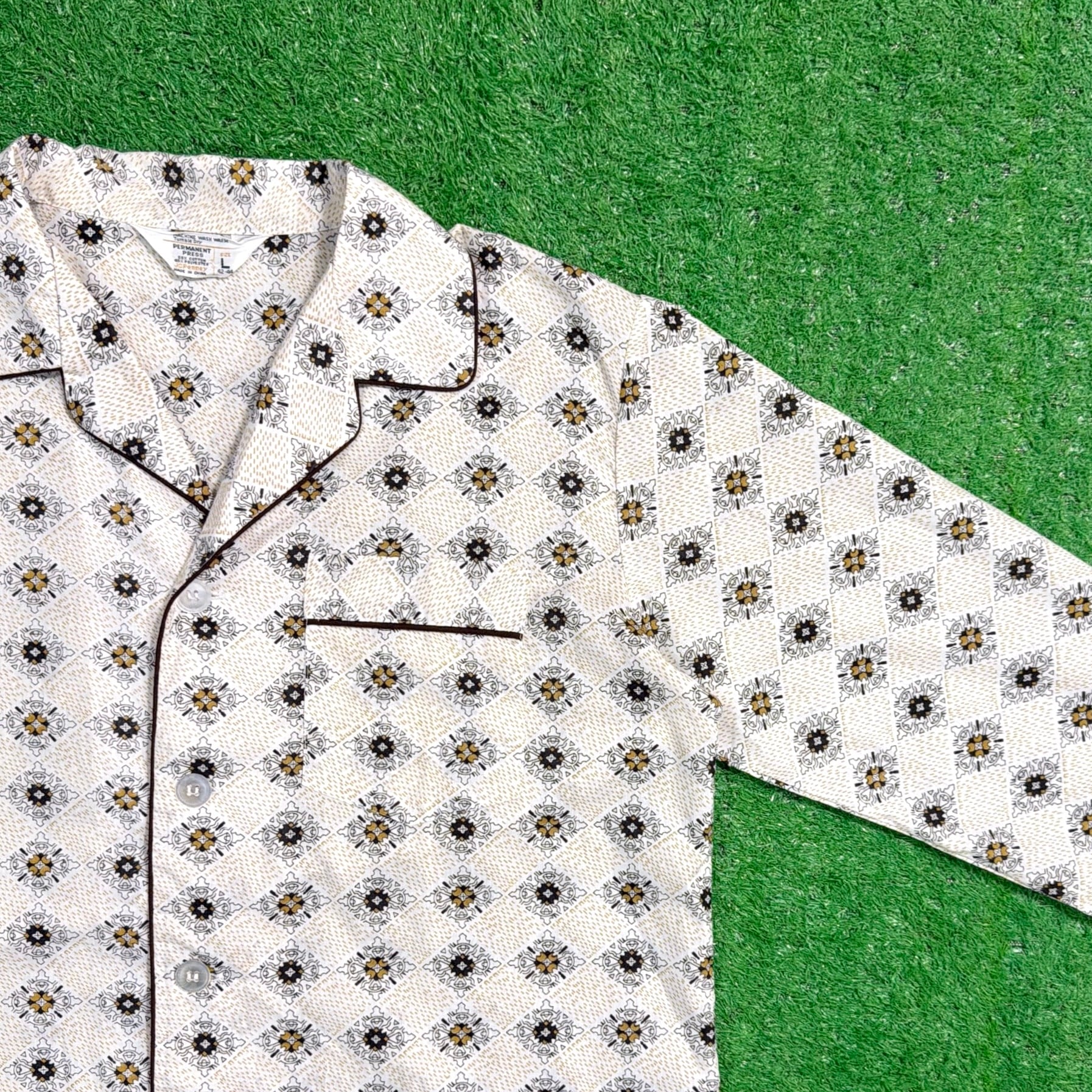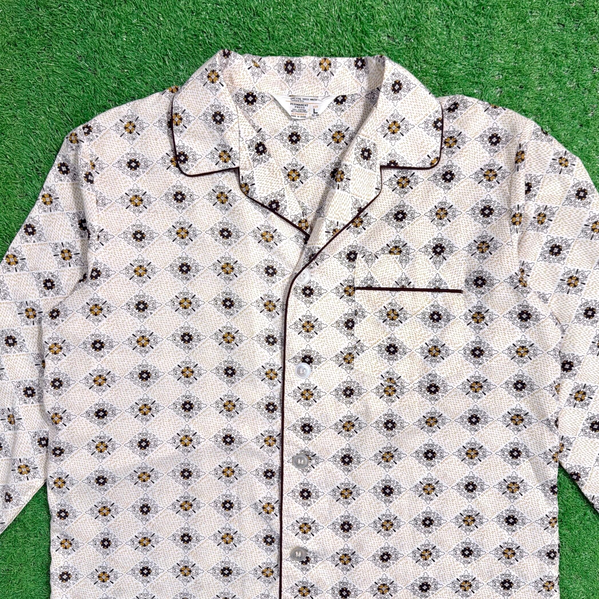 【Men's】 70s JC Penny オリエンタル柄 開襟 パジャマ シャツ / 70年代 パジャマシャツ 古着 メンズ 1557