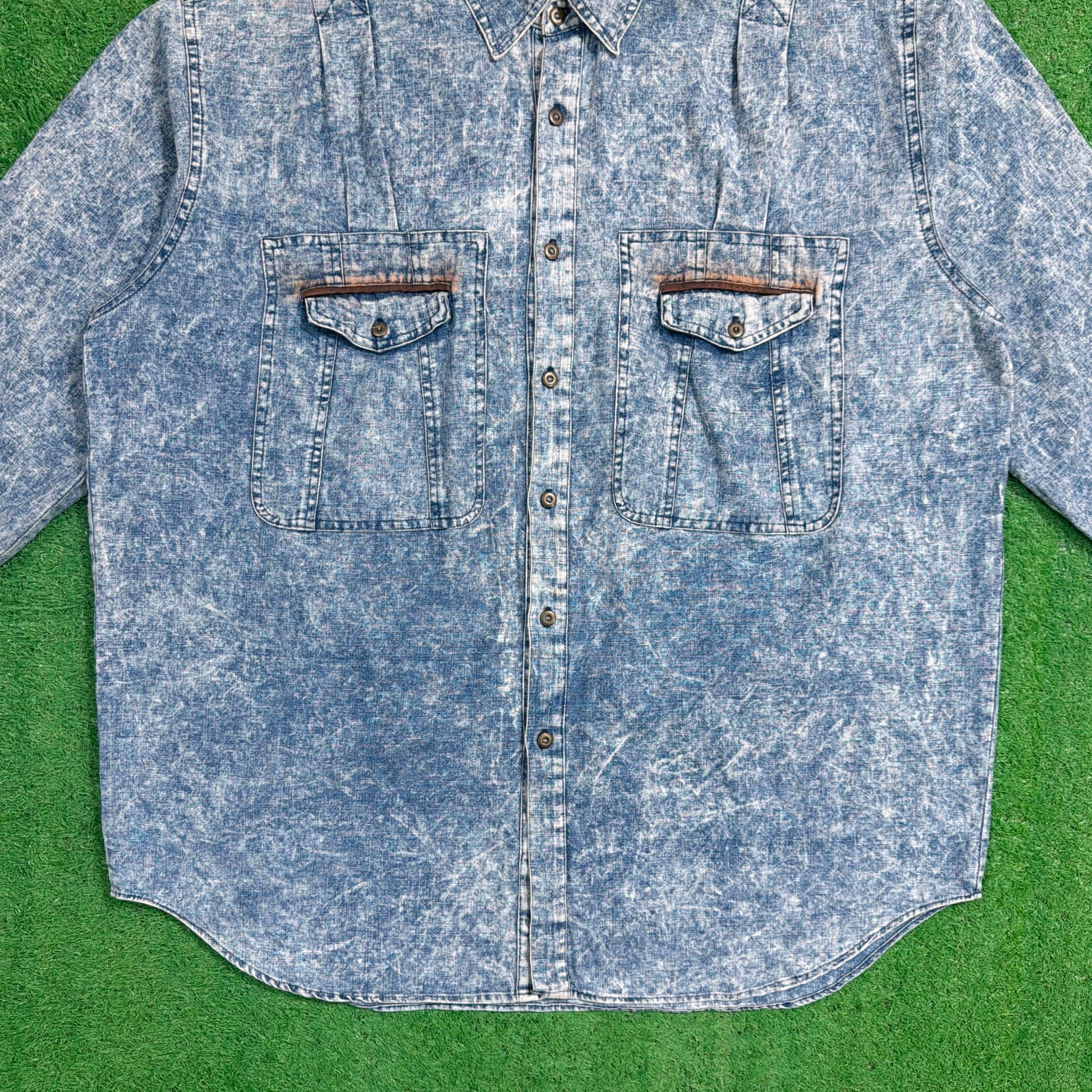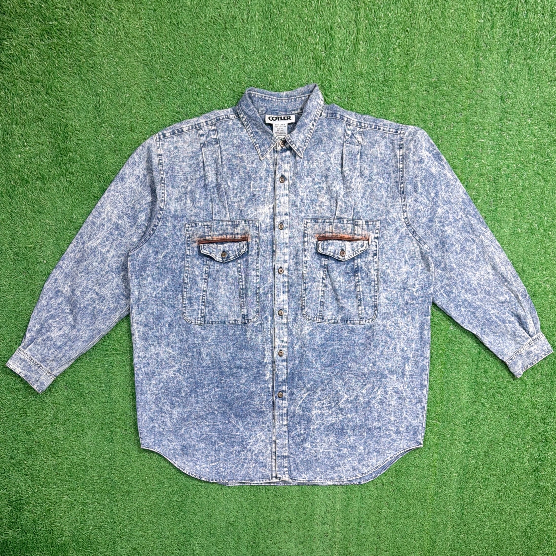 【Men's】 90s ケミカルウオッシュ コットン リネン デザイン シャツ / 90年代 古着 メンズ 1558